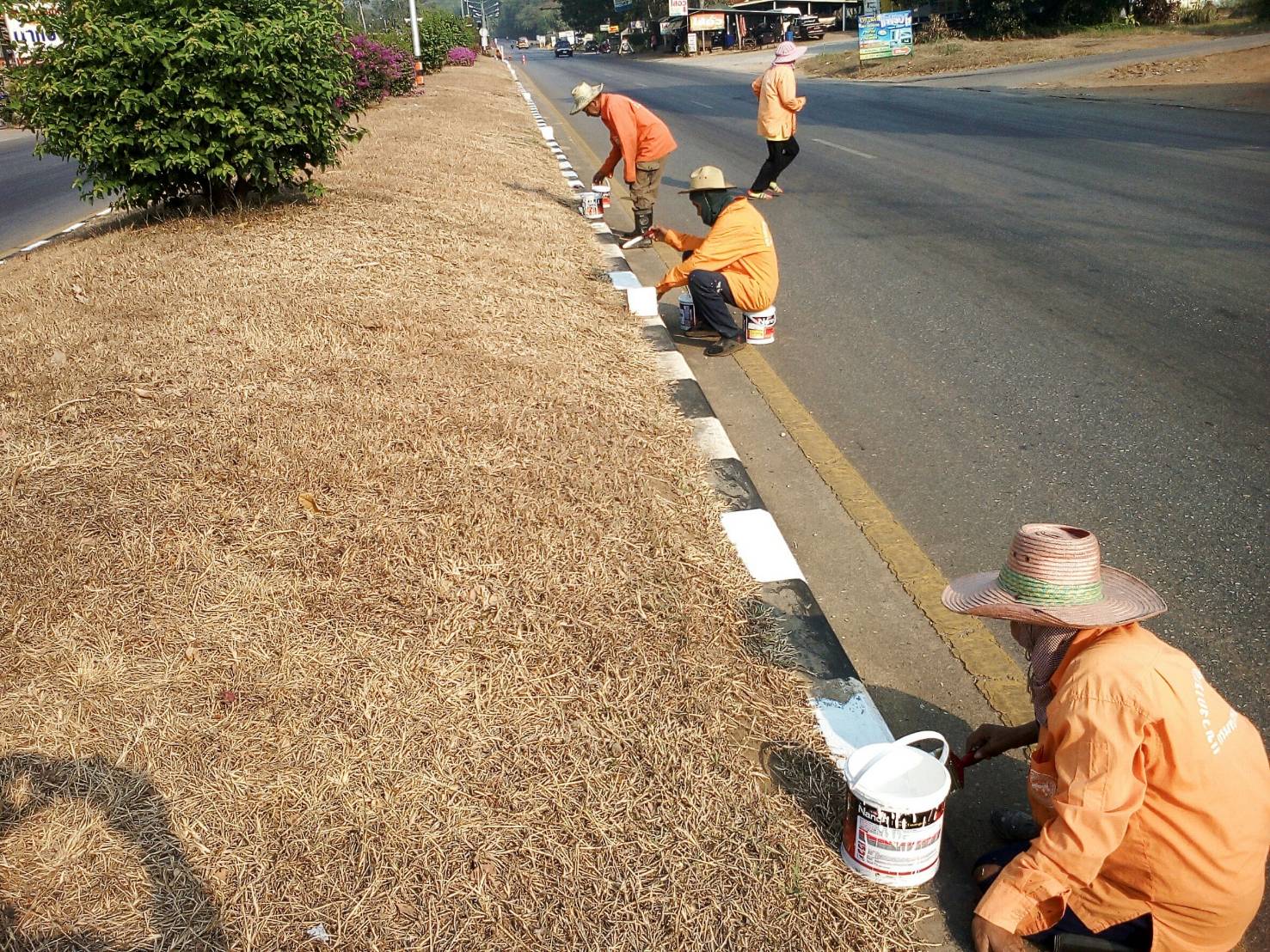 2.ดำเนินการทาสีขอบเกาะกลาง ทล.323 ตอนแยกปากกิเลน - น้ำตกไทรโยคใหญ่เริ่ม ช่วง กม.119+750-120+350 (ด้านขวา)