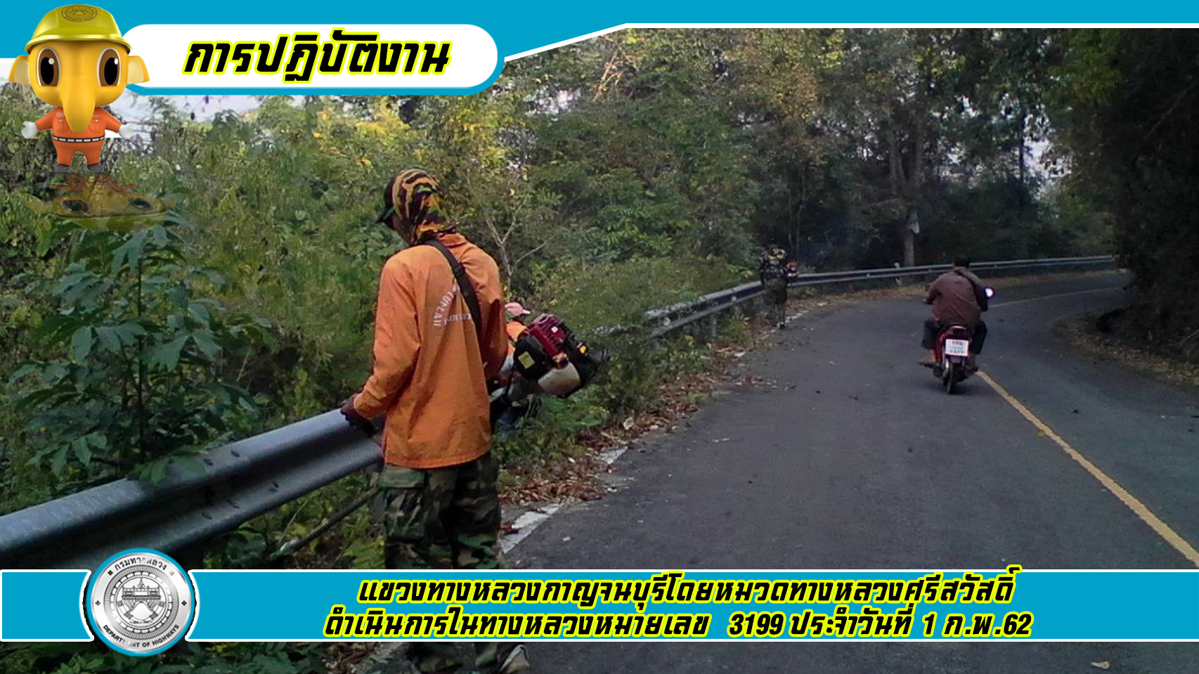แขวงทางหลวงกาญจนบุรีโดยหมวดทางหลวงศรีสวัสดิ์ดำเนินการในทางหลวงหมายเลข 3199 01/02/62