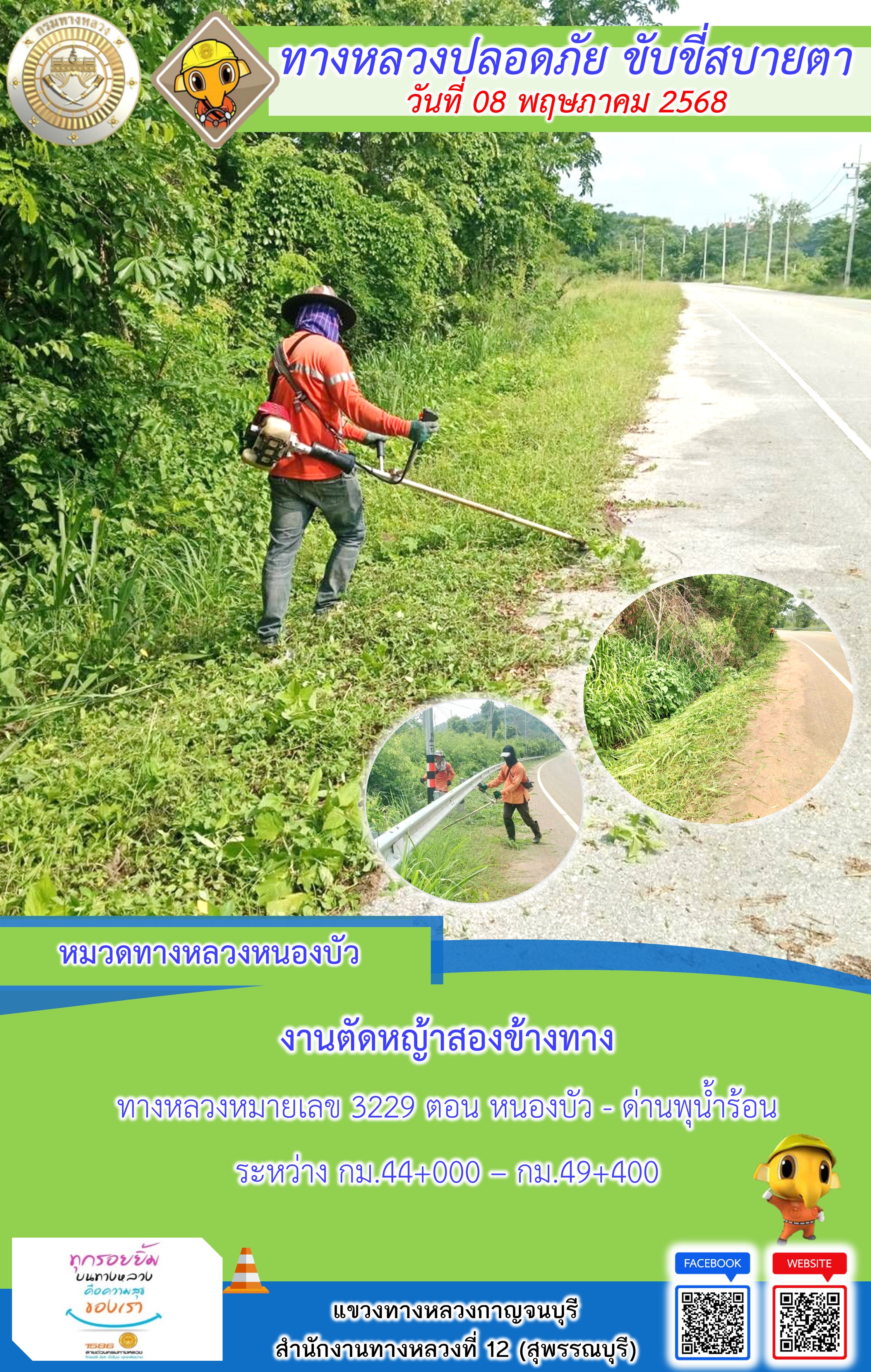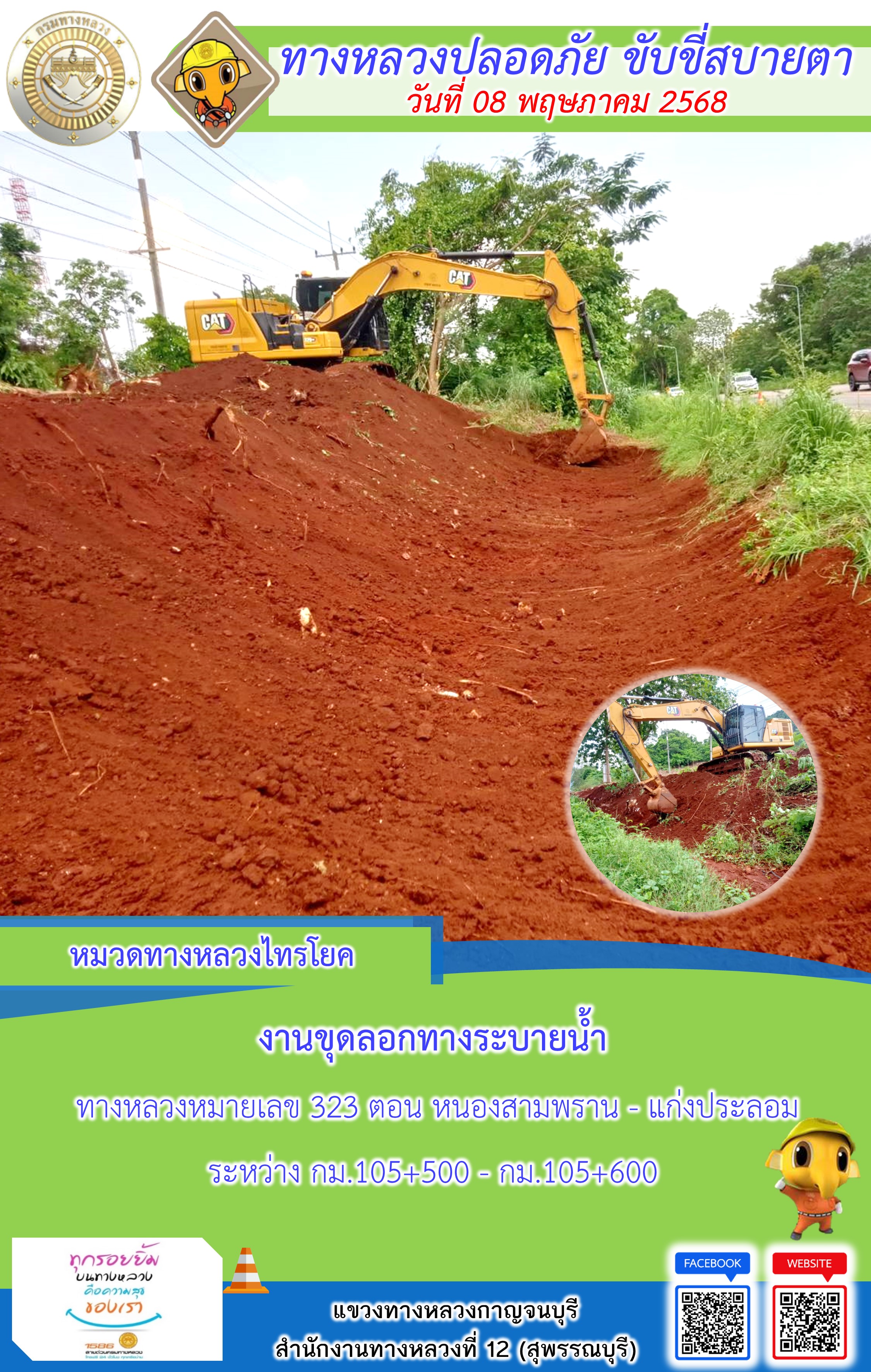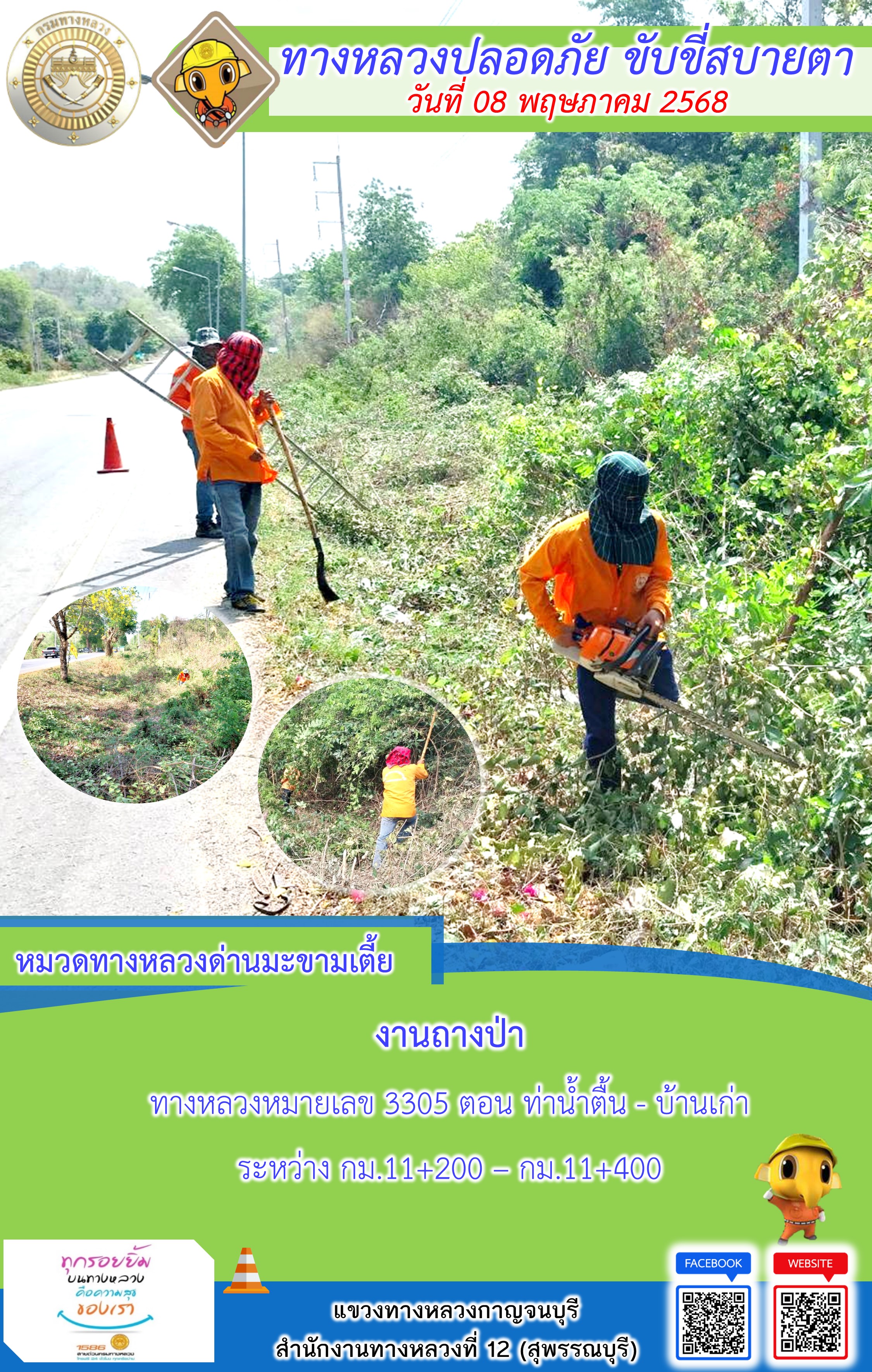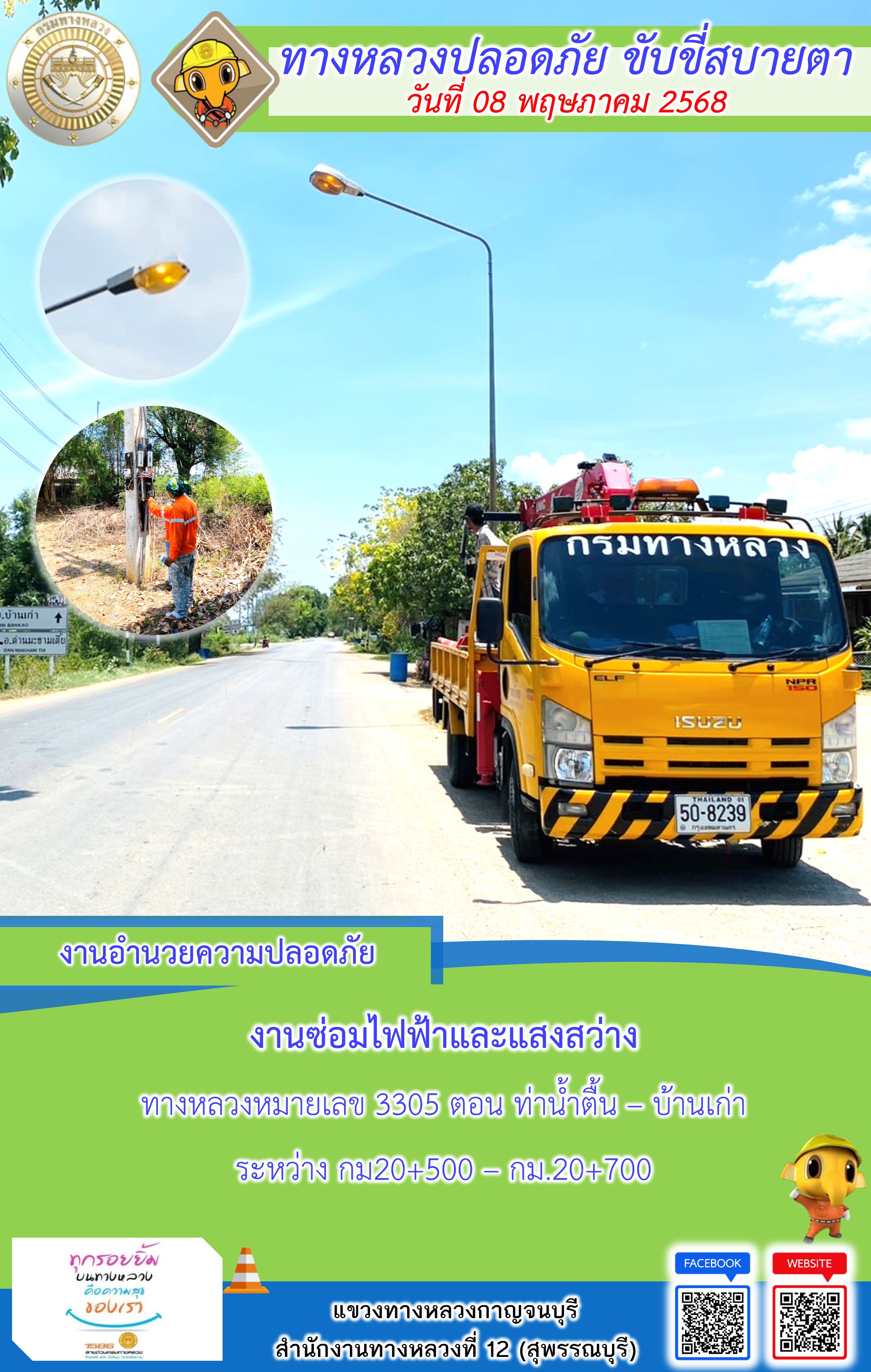 แขวงทางหลวงกาญจนบุรี โดยหมวดทางหลวงในสังกัด และงานอำนวยความปลอดภัยปฏิบัติงาน ประจำวันที่ 8 พ.ค. 68