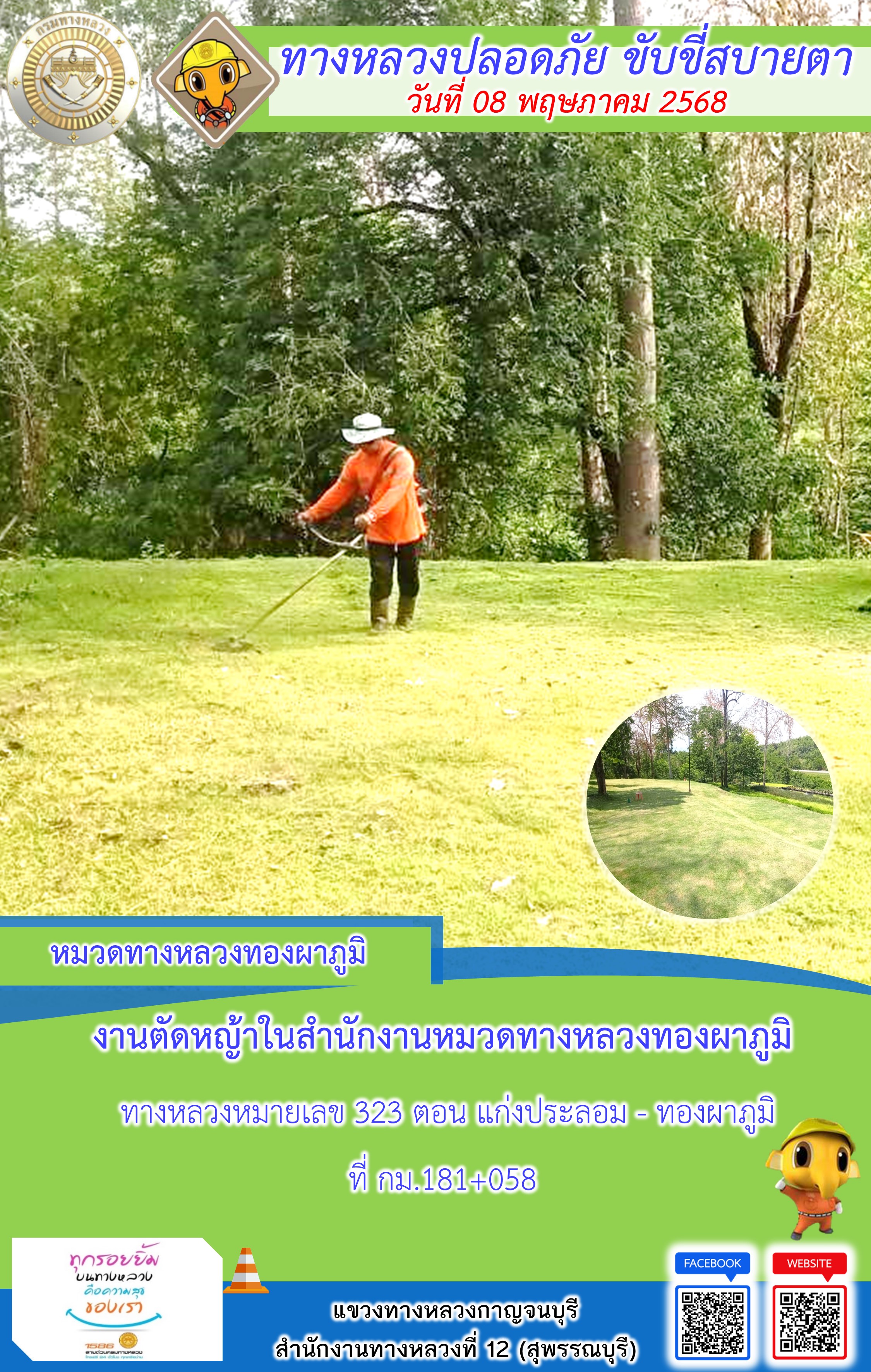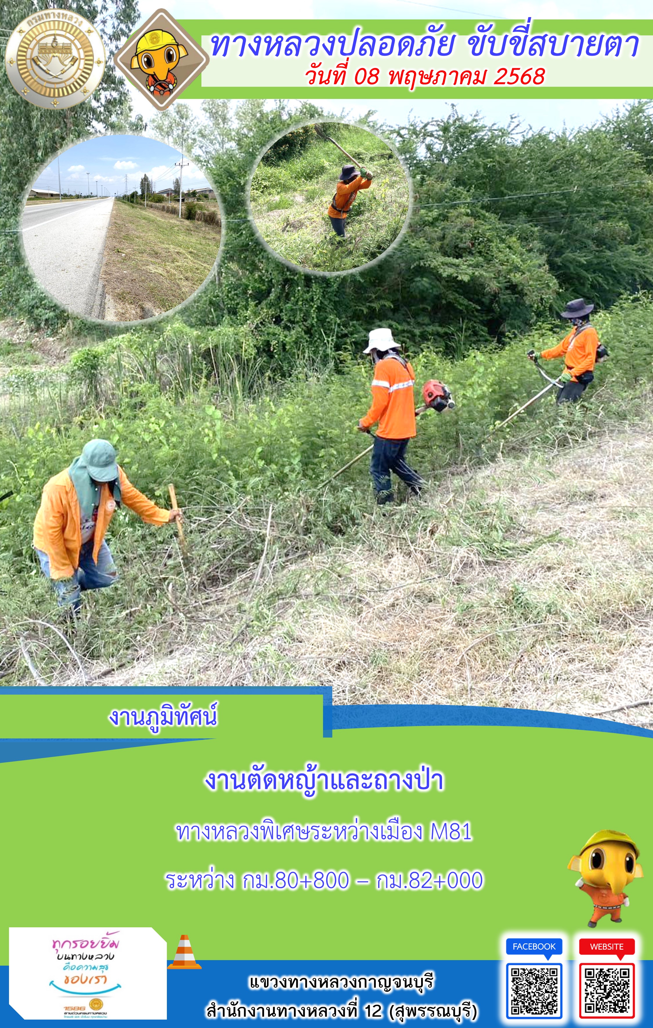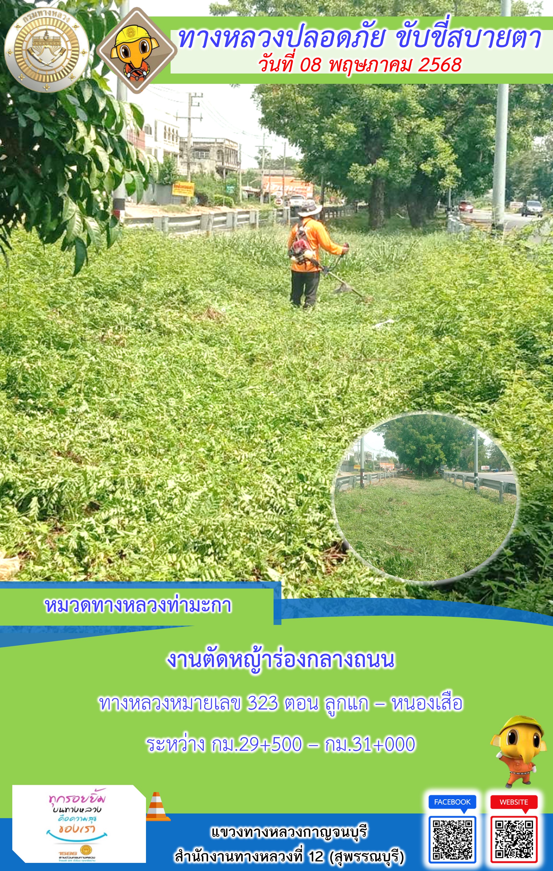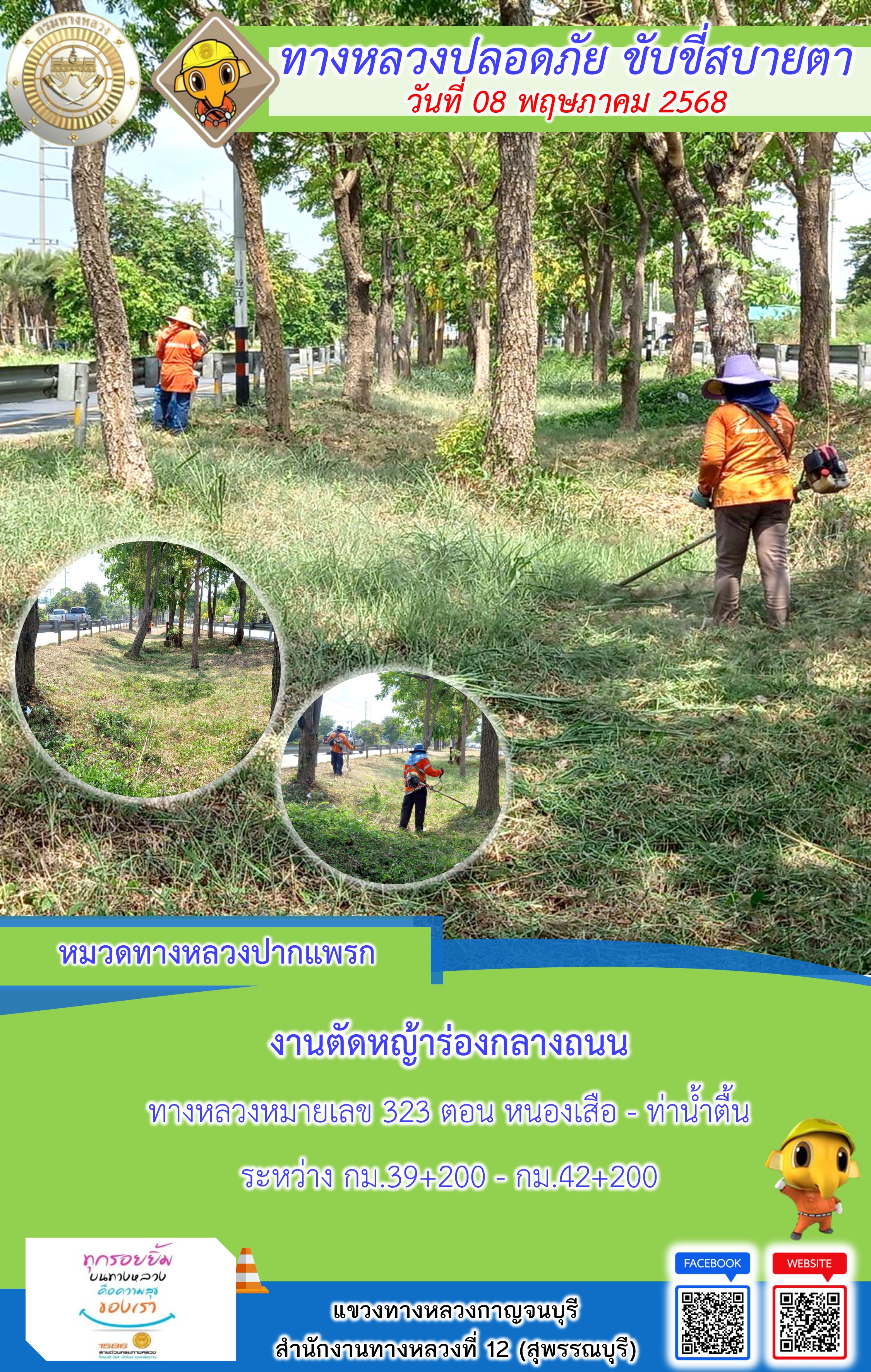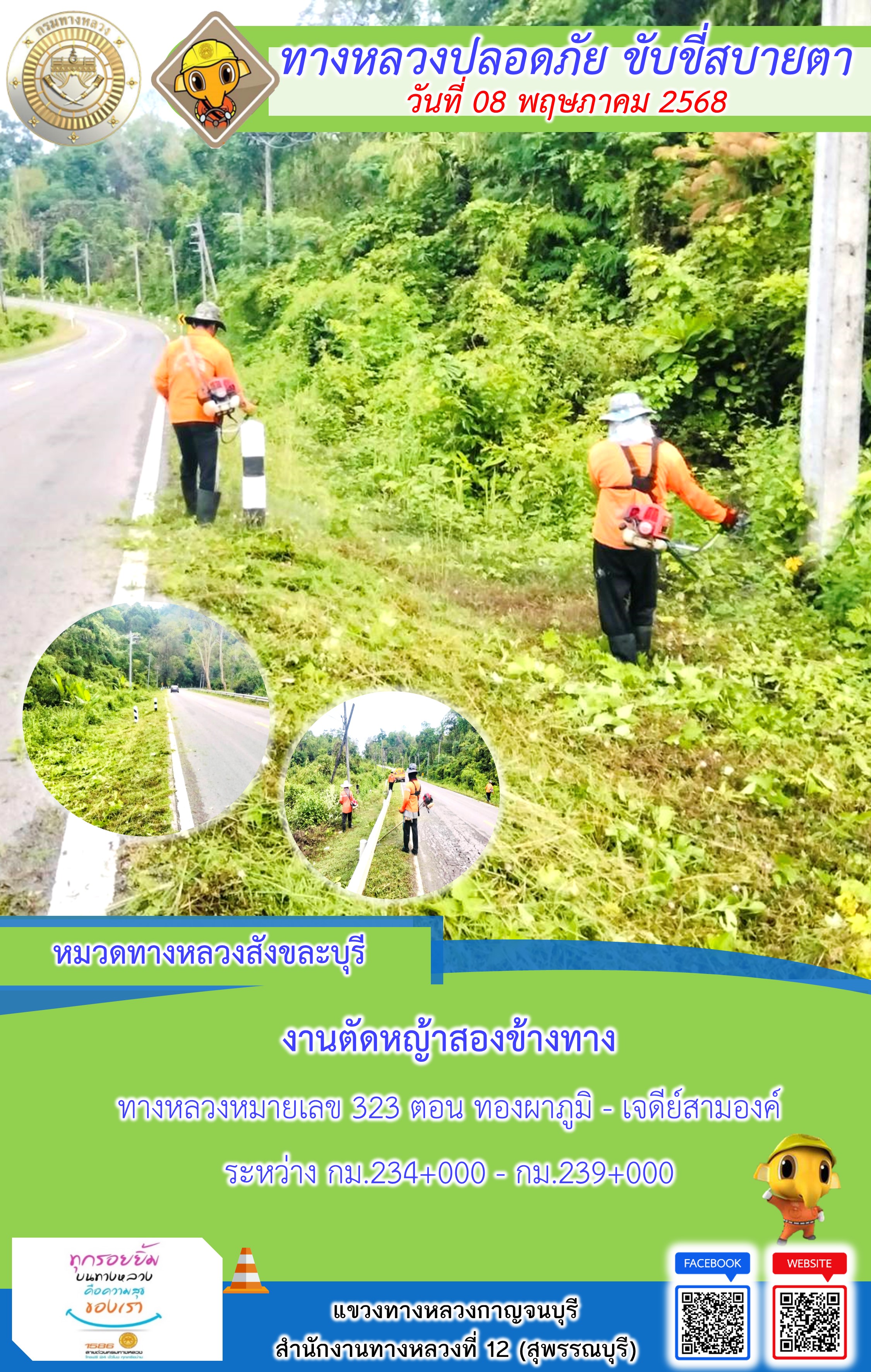 ข้อมูลภาพกิจกรรม : แขวงทางหลวงกาญจนบุรี โดยหมวดทางหลวงในสังกัด และงานอำนวยความปลอดภัยปฏิบัติงาน ประจำวันที่ 8 พ.ค. 68