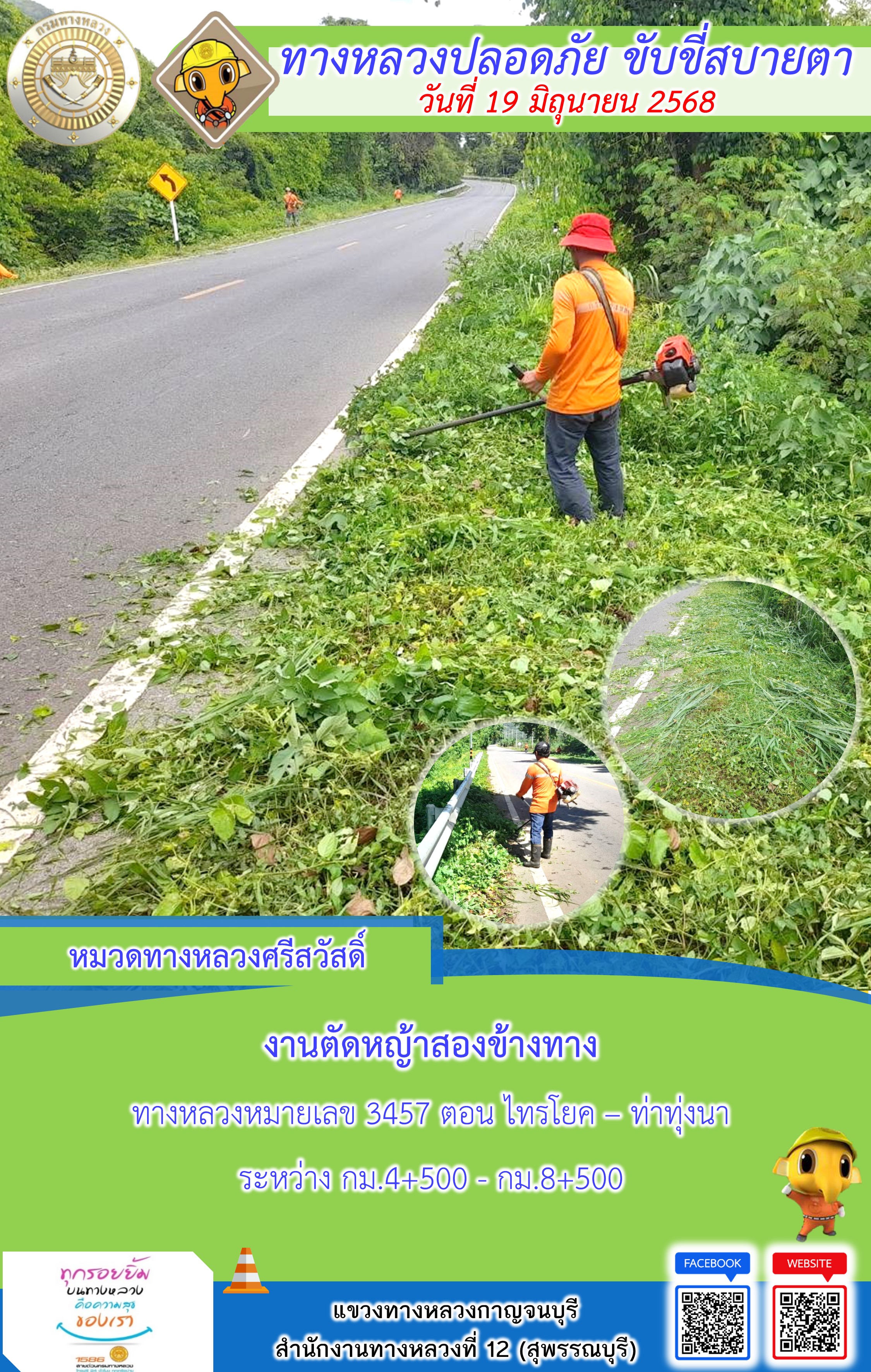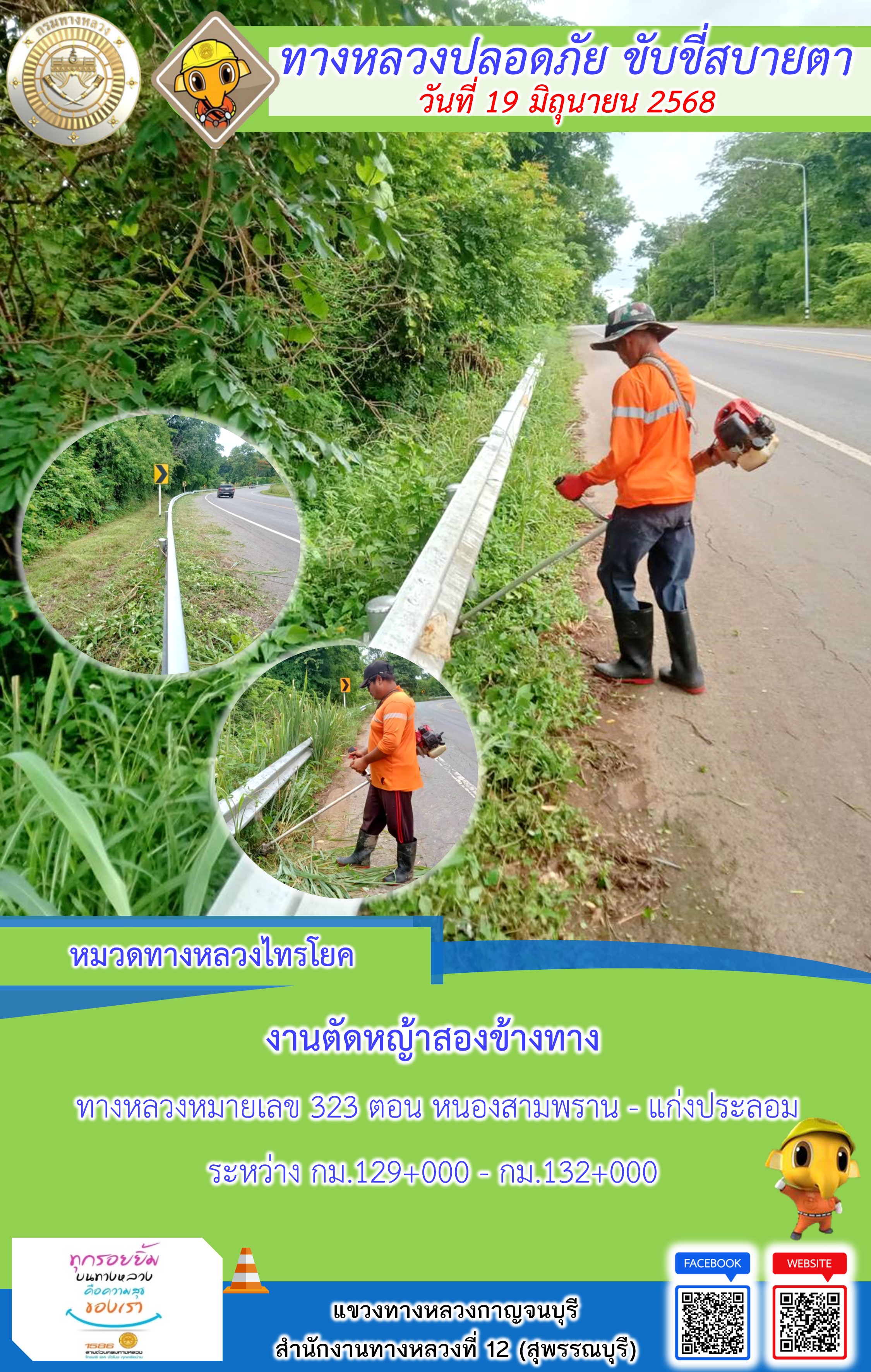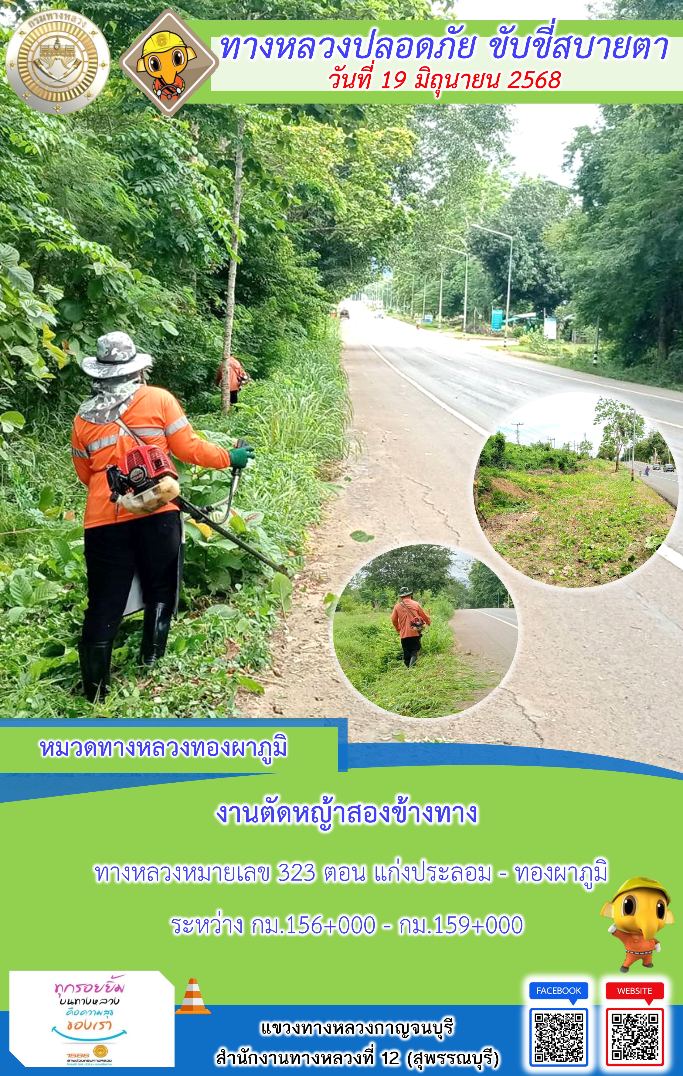 ข้อมูลภาพกิจกรรม : แขวงทางหลวงกาญจนบุรี โดยหมวดทางหลวงในสังกัด และงานอำนวยความปลอดภัยปฏิบัติงาน ประจำวันที่ 19 มิ.ย. 68
