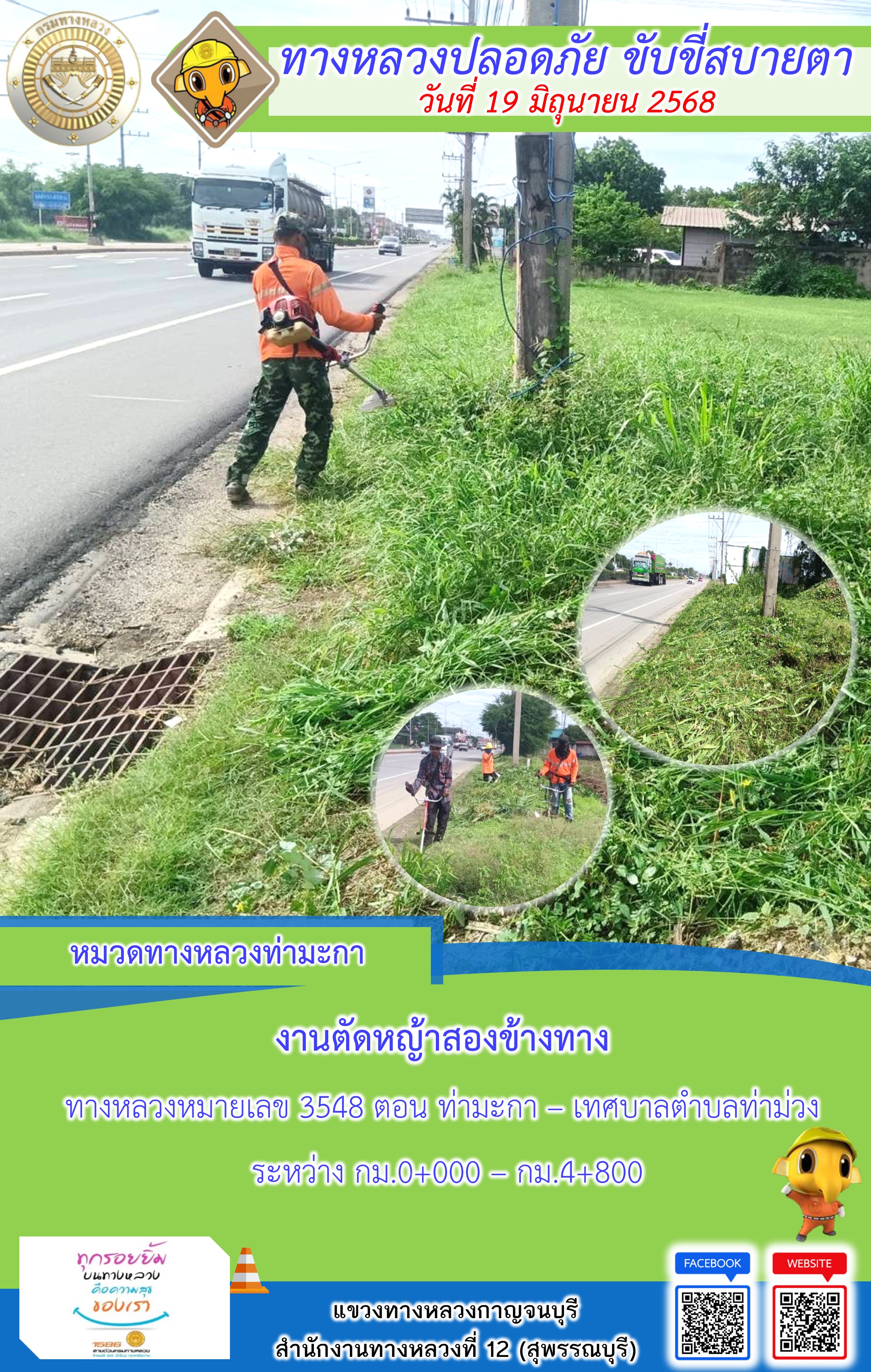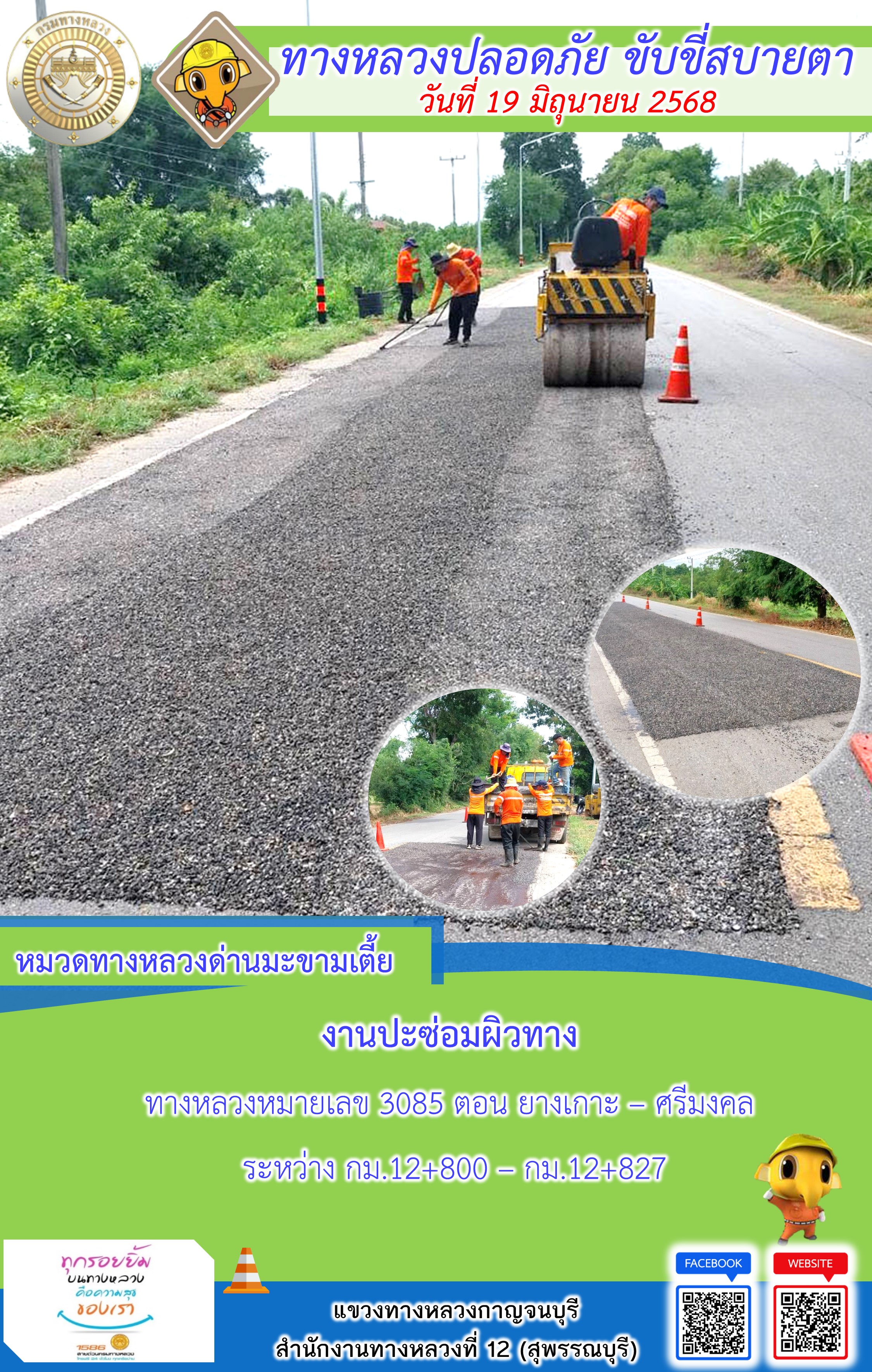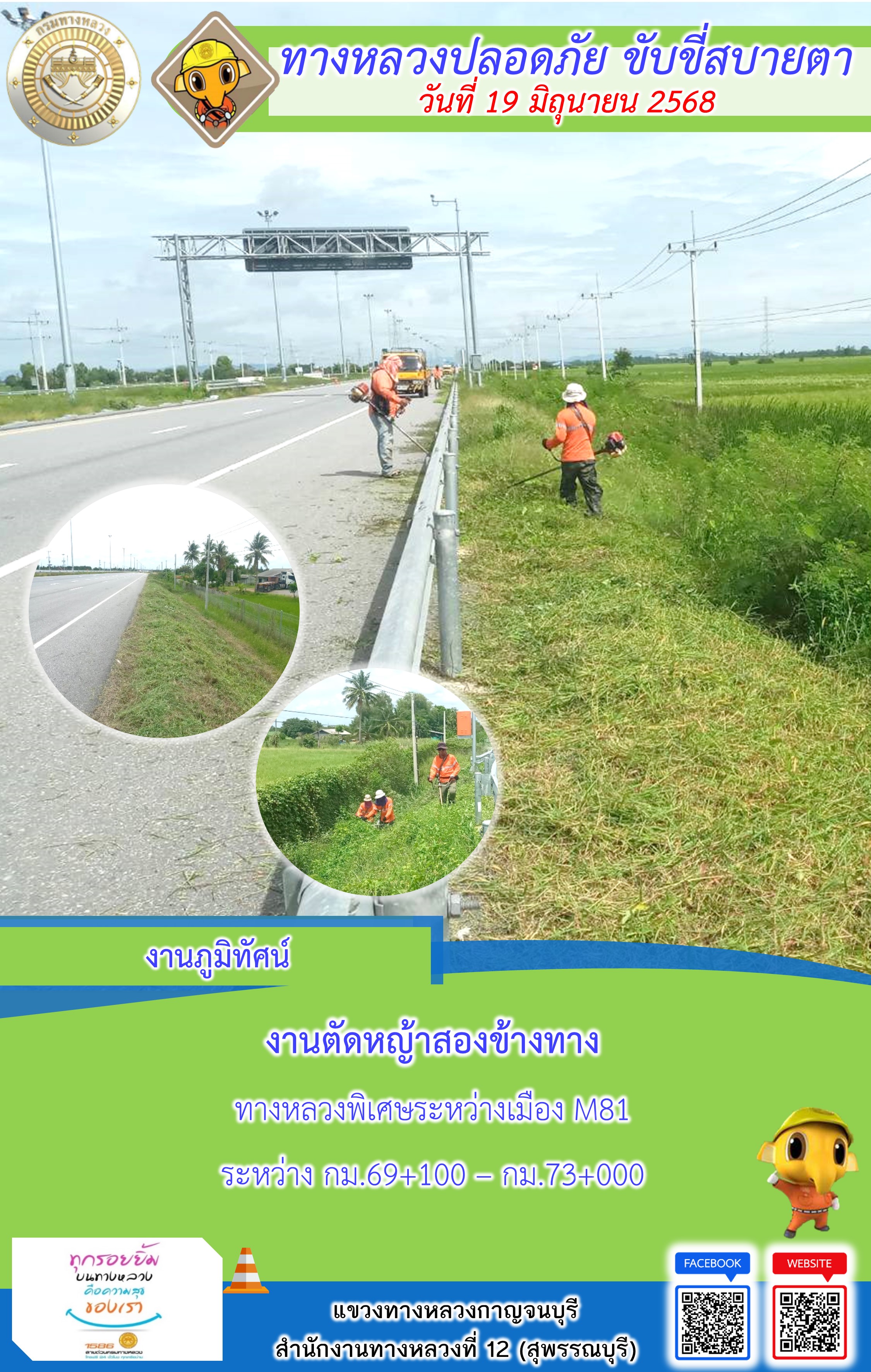 ข้อมูลภาพกิจกรรม : แขวงทางหลวงกาญจนบุรี โดยหมวดทางหลวงในสังกัด และงานอำนวยความปลอดภัยปฏิบัติงาน ประจำวันที่ 19 มิ.ย. 68
