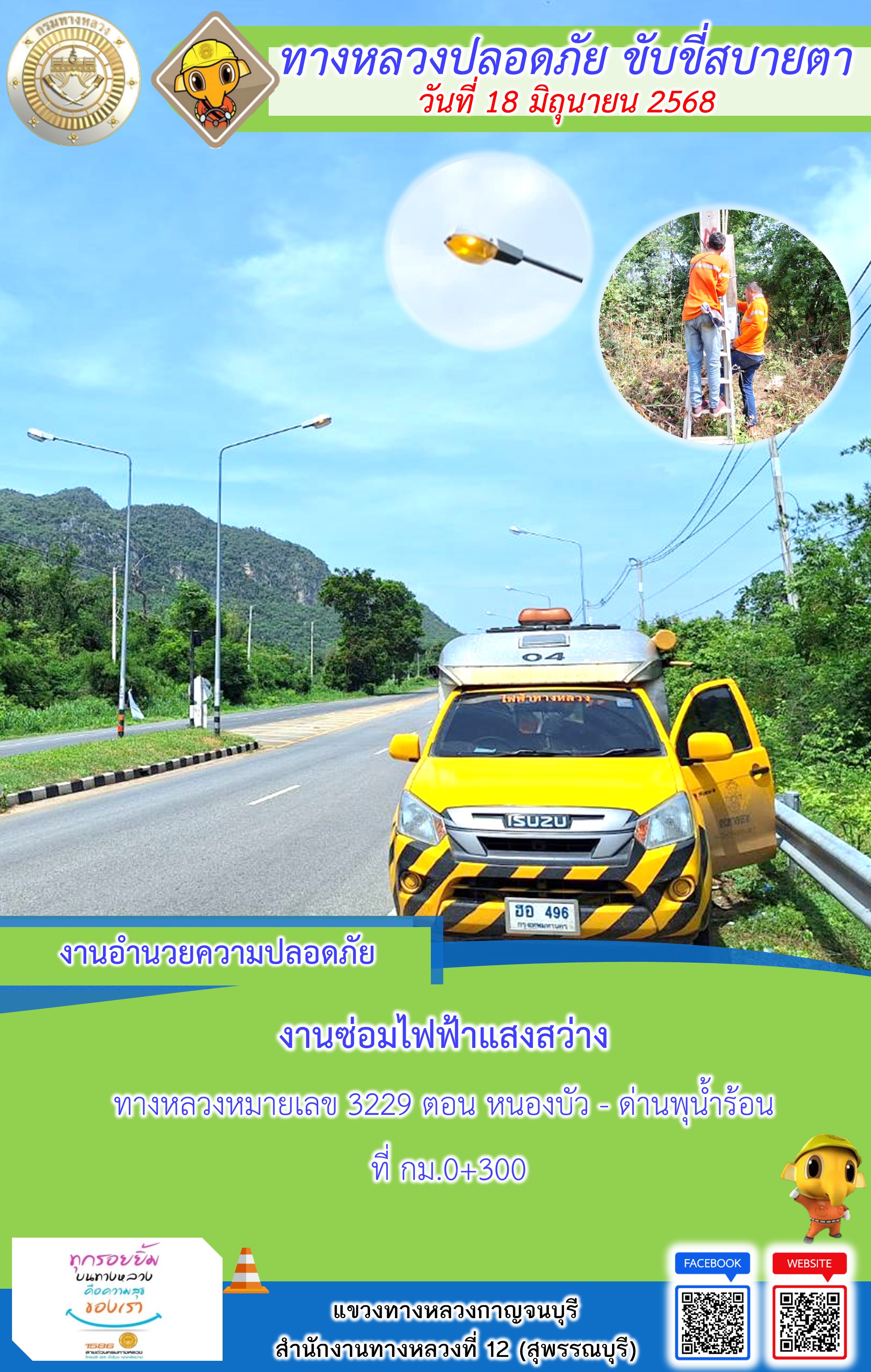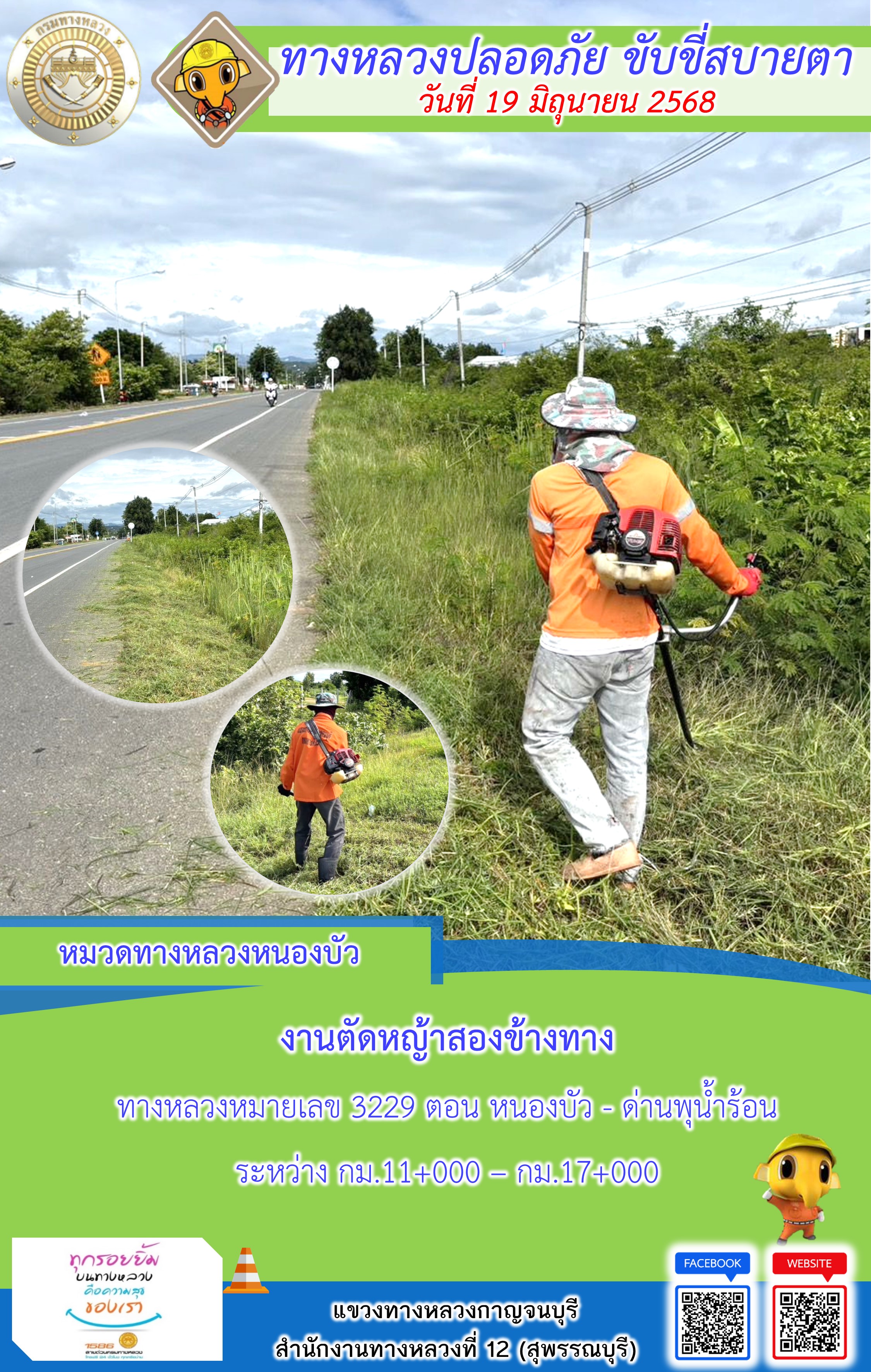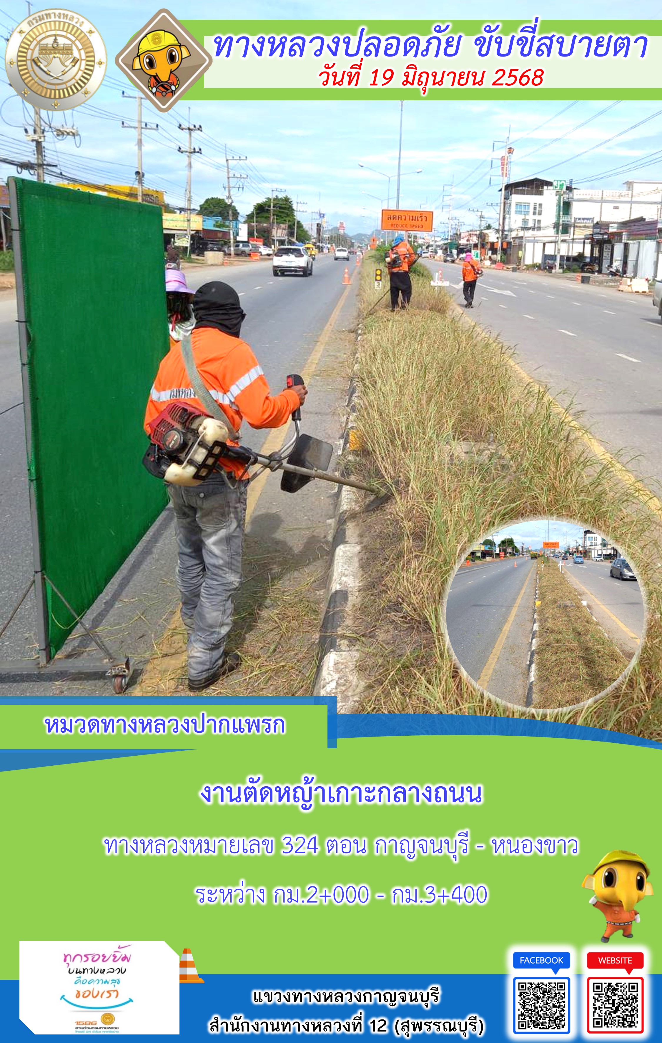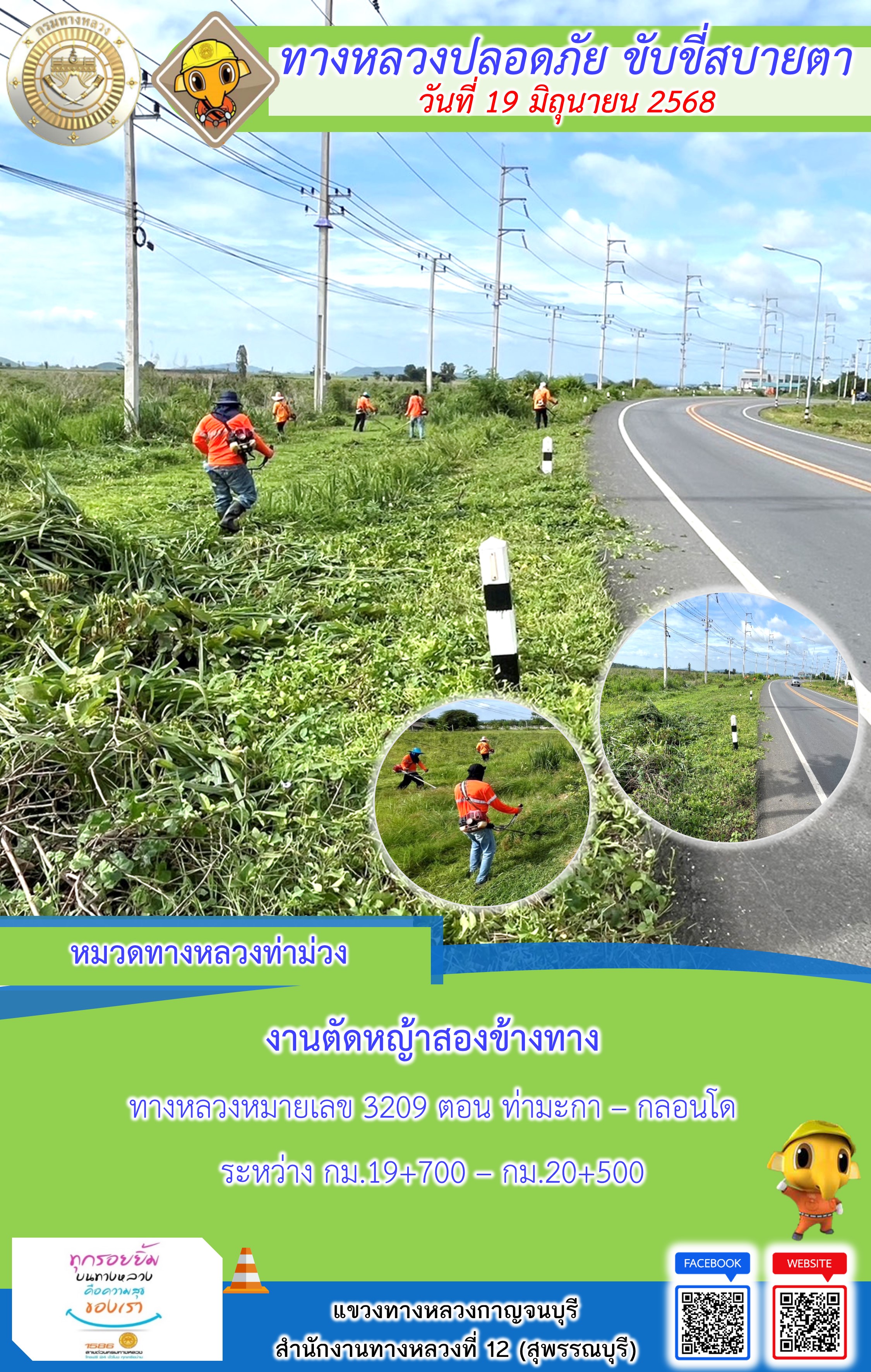 แขวงทางหลวงกาญจนบุรี โดยหมวดทางหลวงในสังกัด และงานอำนวยความปลอดภัยปฏิบัติงาน ประจำวันที่ 19 มิ.ย. 68