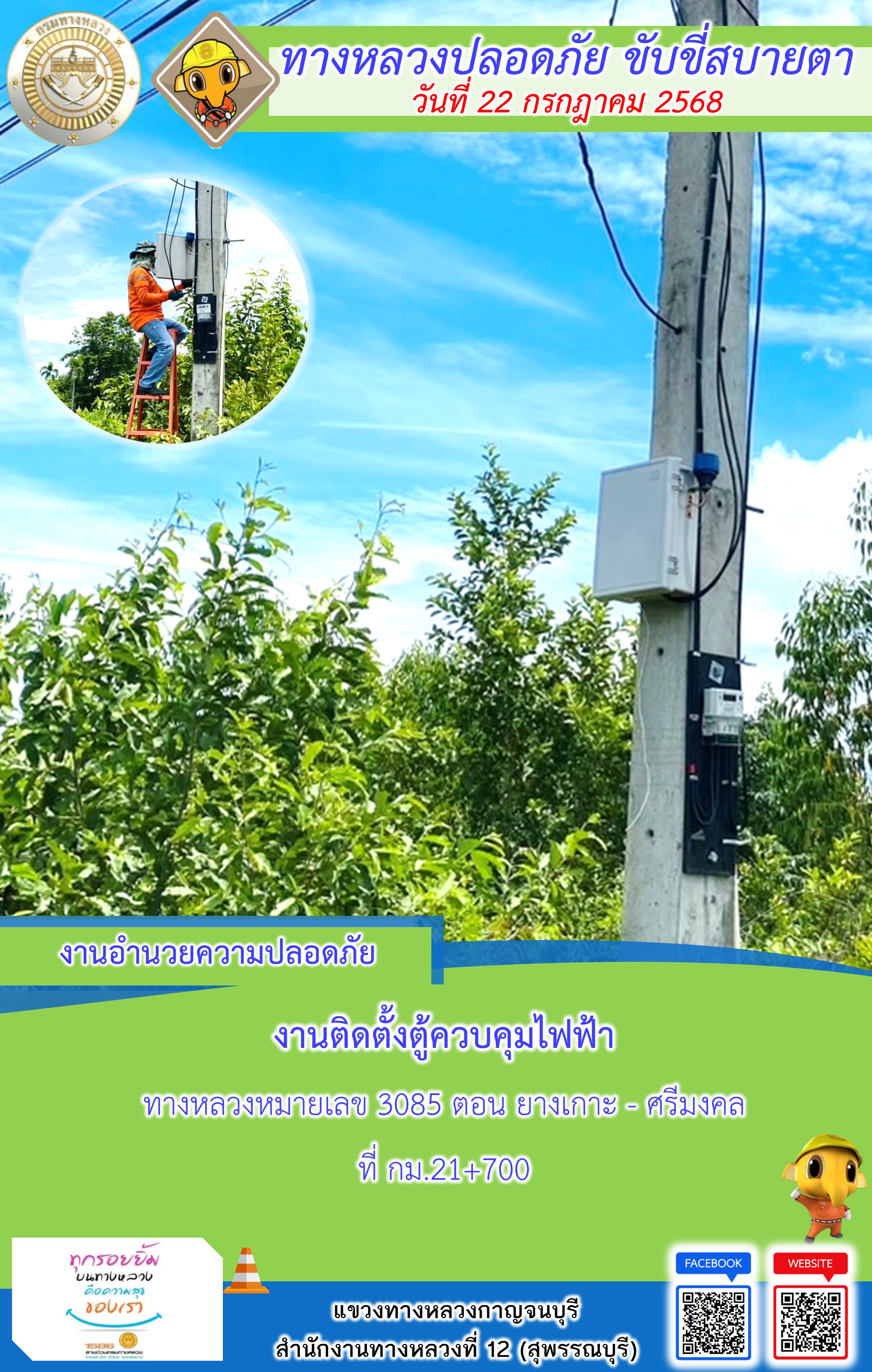 แขวงทางหลวงกาญจนบุรี โดยหมวดทางหลวงในสังกัด และงานอำนวยความปลอดภัยปฏิบัติงาน ประจำวันที่ 22 ก.ค. 68