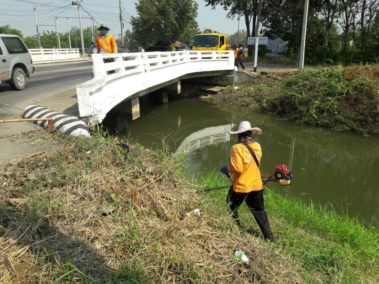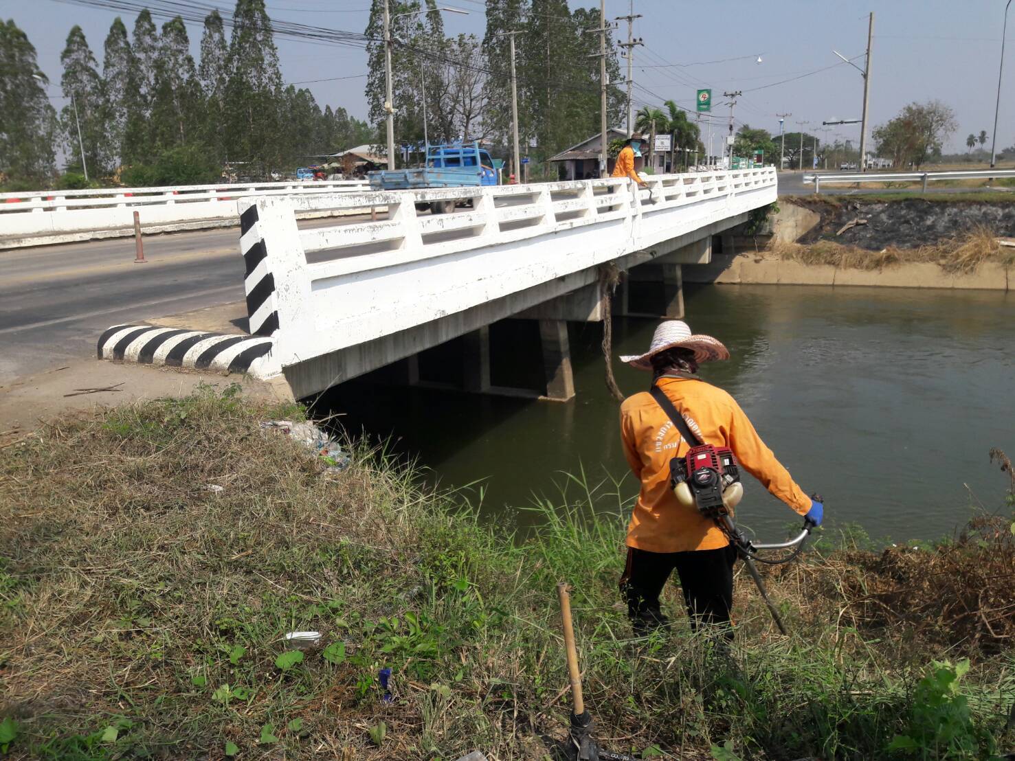 2.ดำเนินการทำความสะอาดสะพานเพื่อถ่ายรูปสำรวจประเมินความเสียหายสะพาน ในทางหลวงหมายเลข 3492