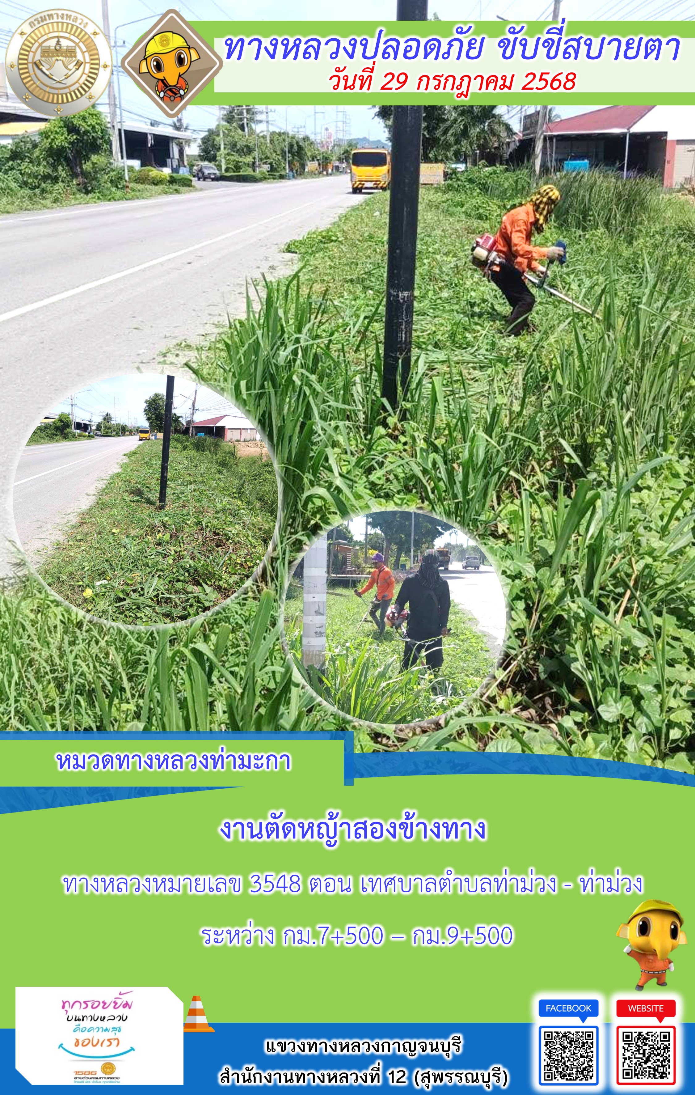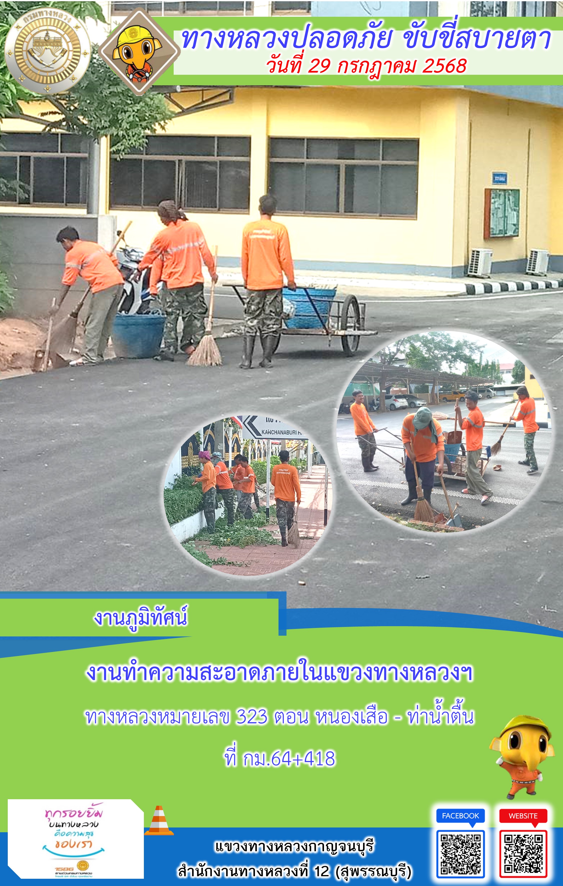 แขวงทางหลวงกาญจนบุรี โดยหมวดทางหลวงในสังกัด และงานอำนวยความปลอดภัยปฏิบัติงาน ประจำวันที่ 29 ก.ค. 68