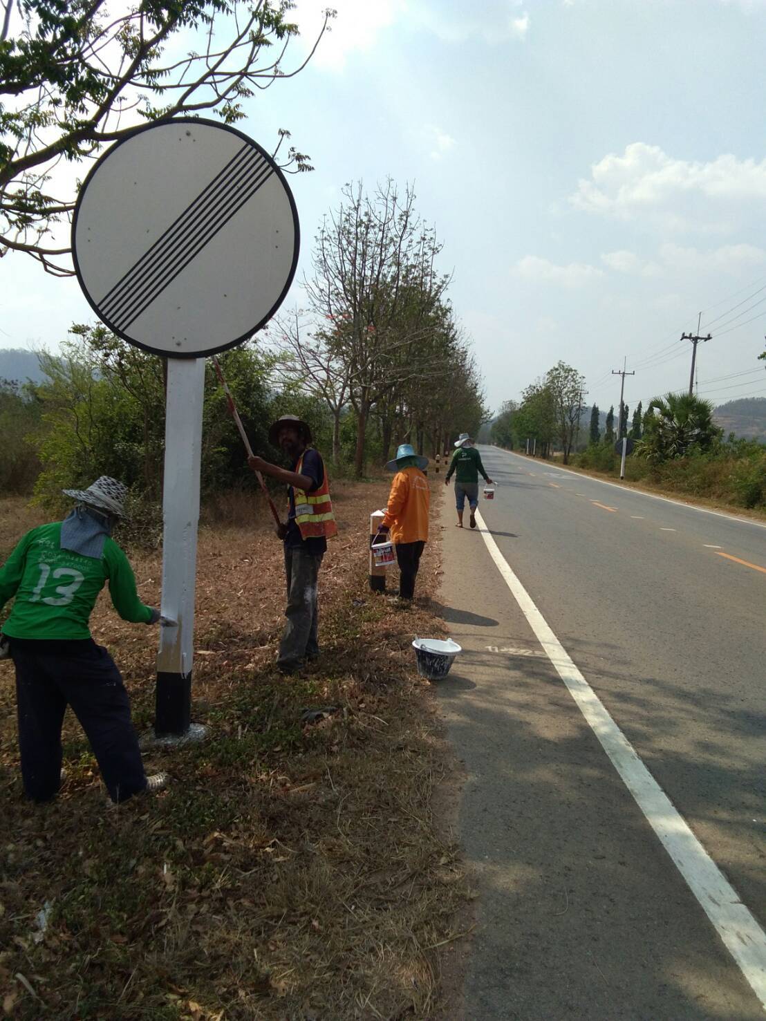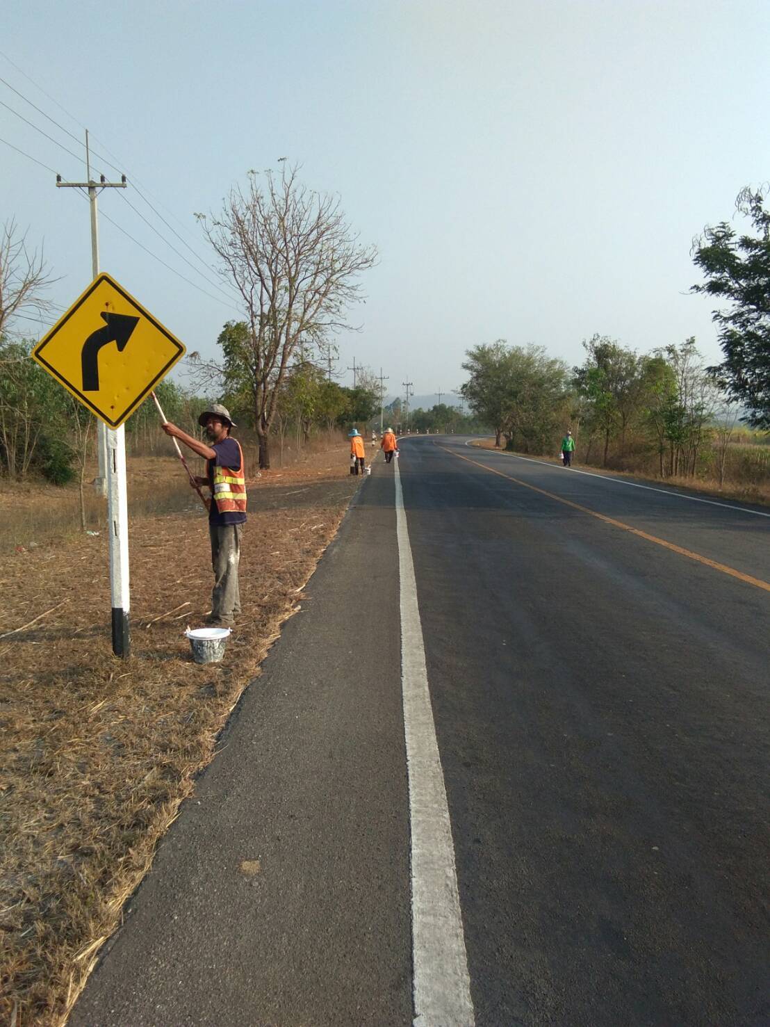 1.ดำเนินการทาสีสิ่งอำนวยความปลอดภัย ทล.3492 กม.11+000 - 16+800 (สีขาว)