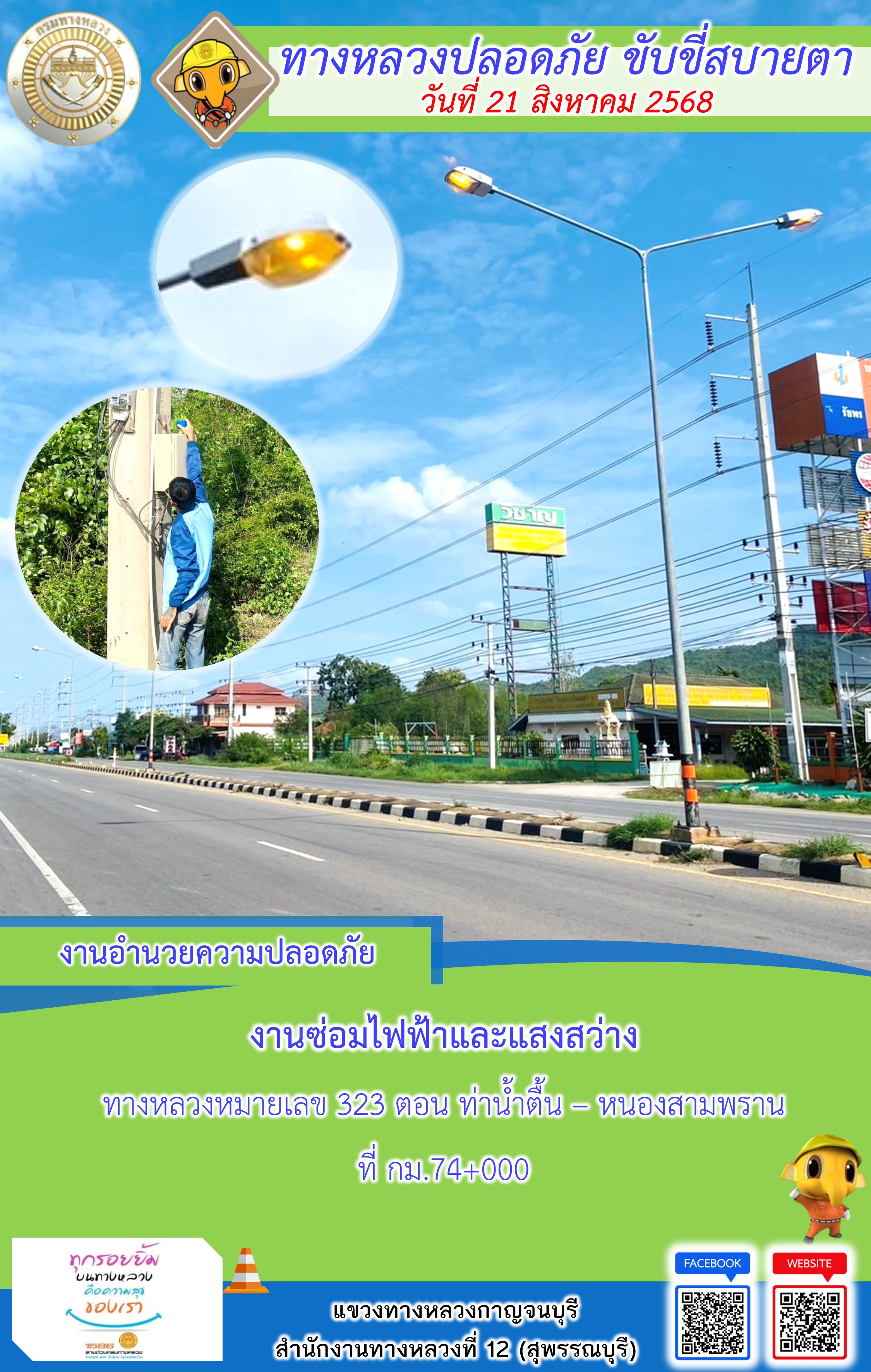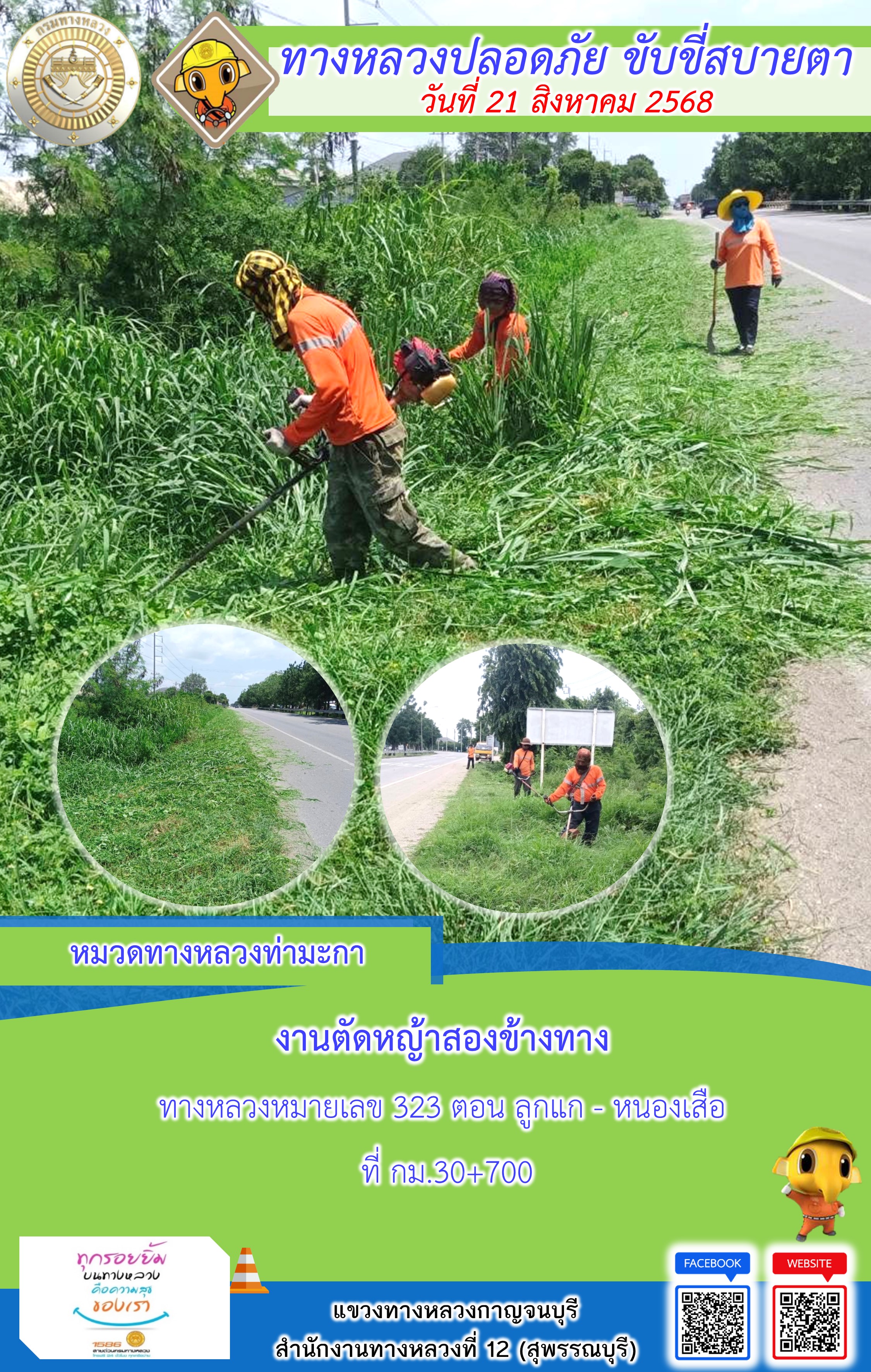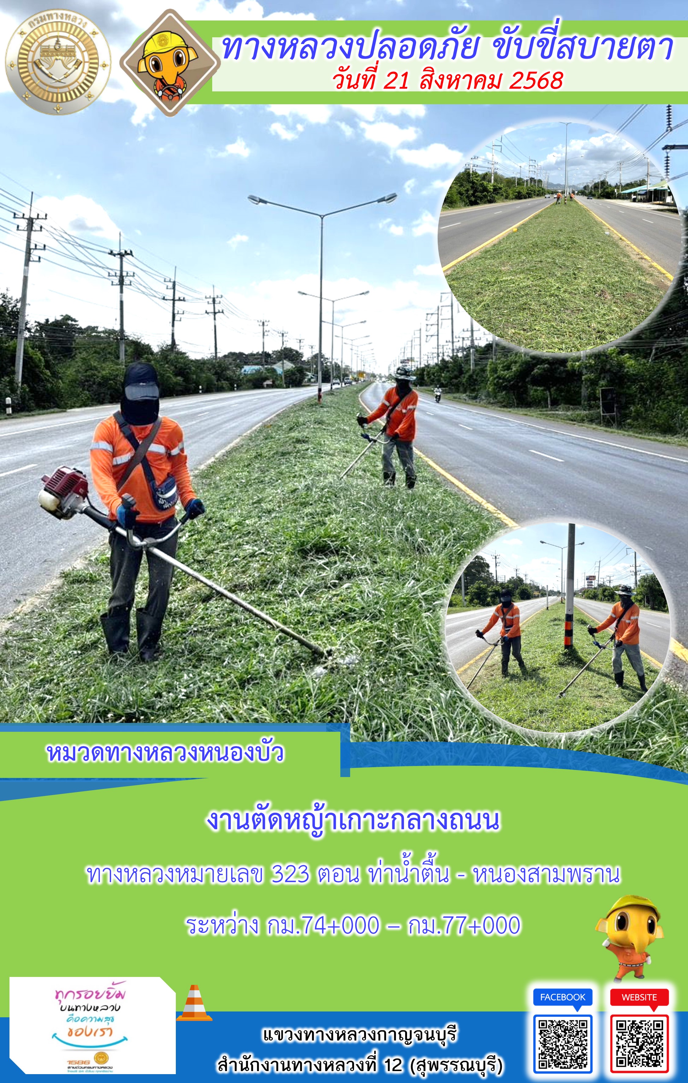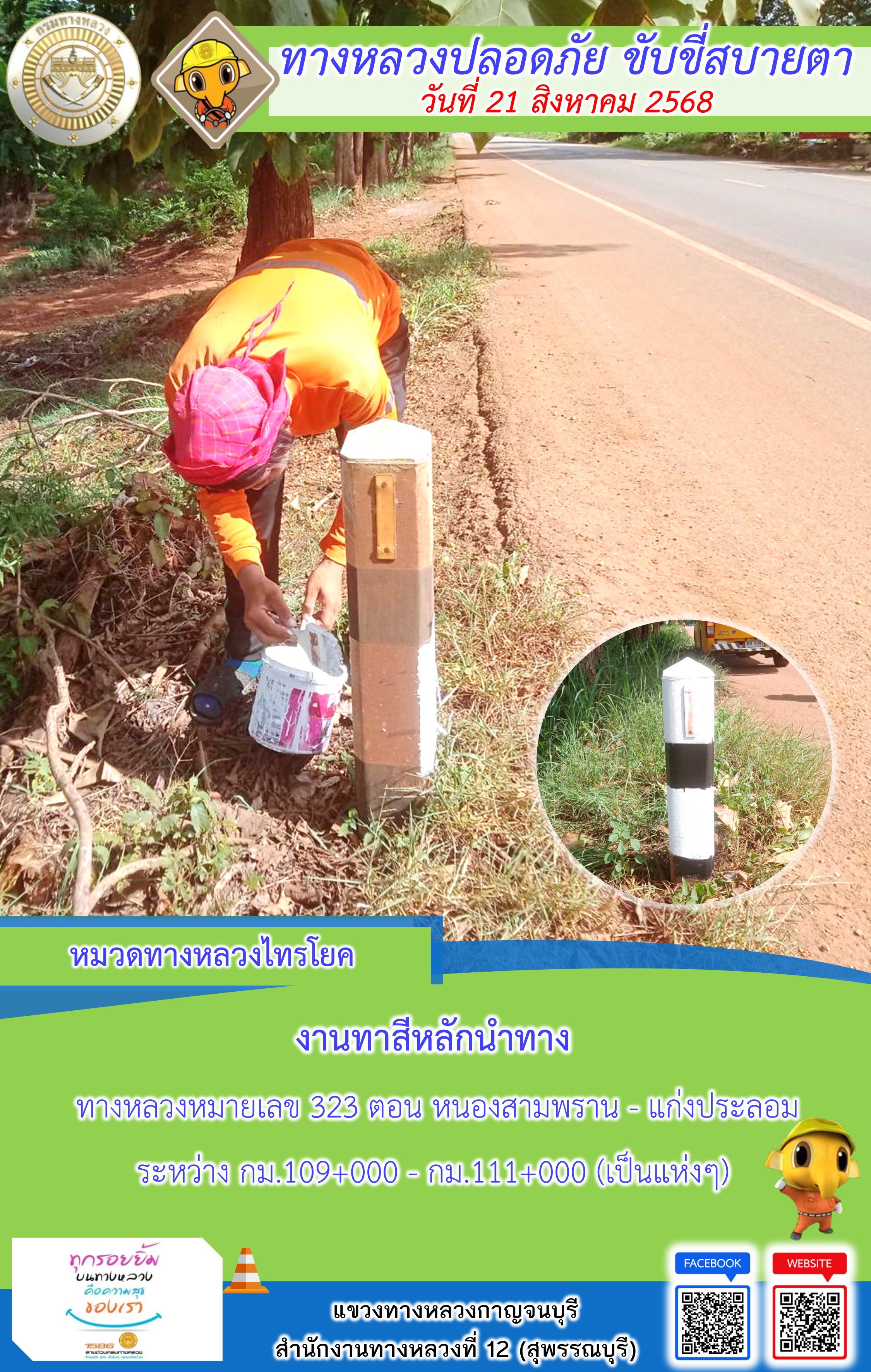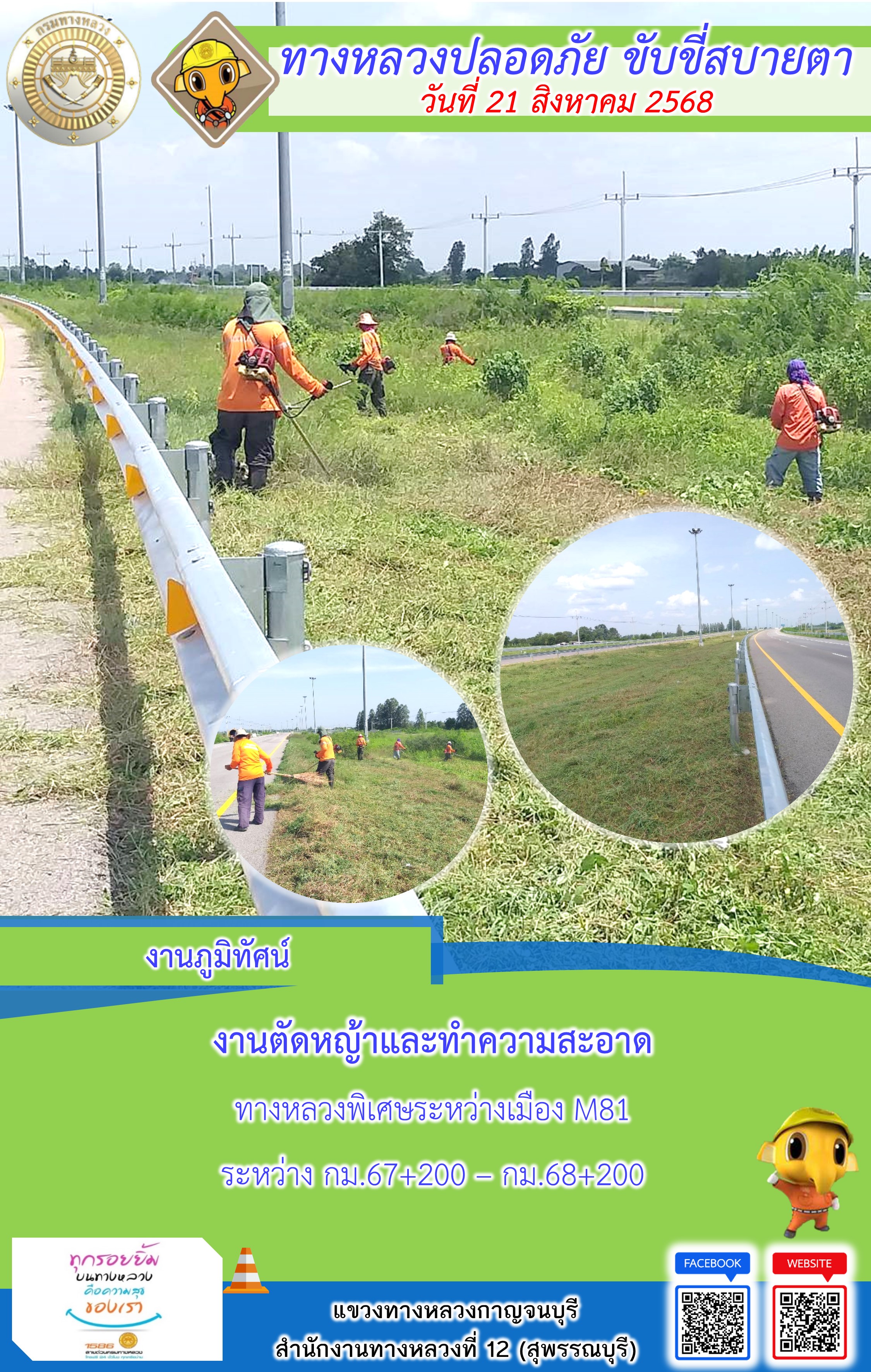 ข้อมูลภาพกิจกรรม : แขวงทางหลวงกาญจนบุรี โดยหมวดทางหลวงในสังกัด และงานอำนวยความปลอดภัยปฏิบัติงาน ประจำวันที่ 21 ส.ค. 68