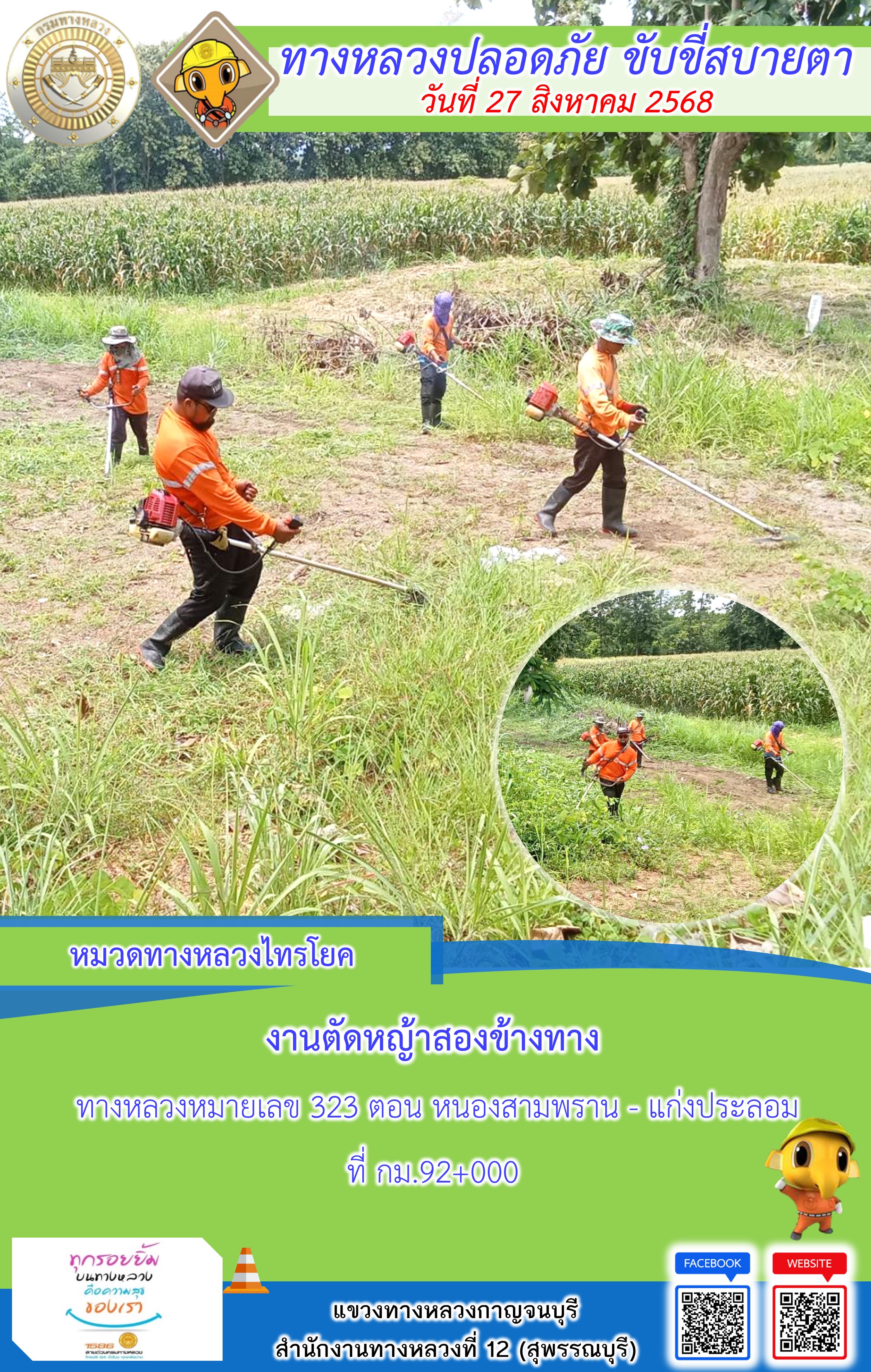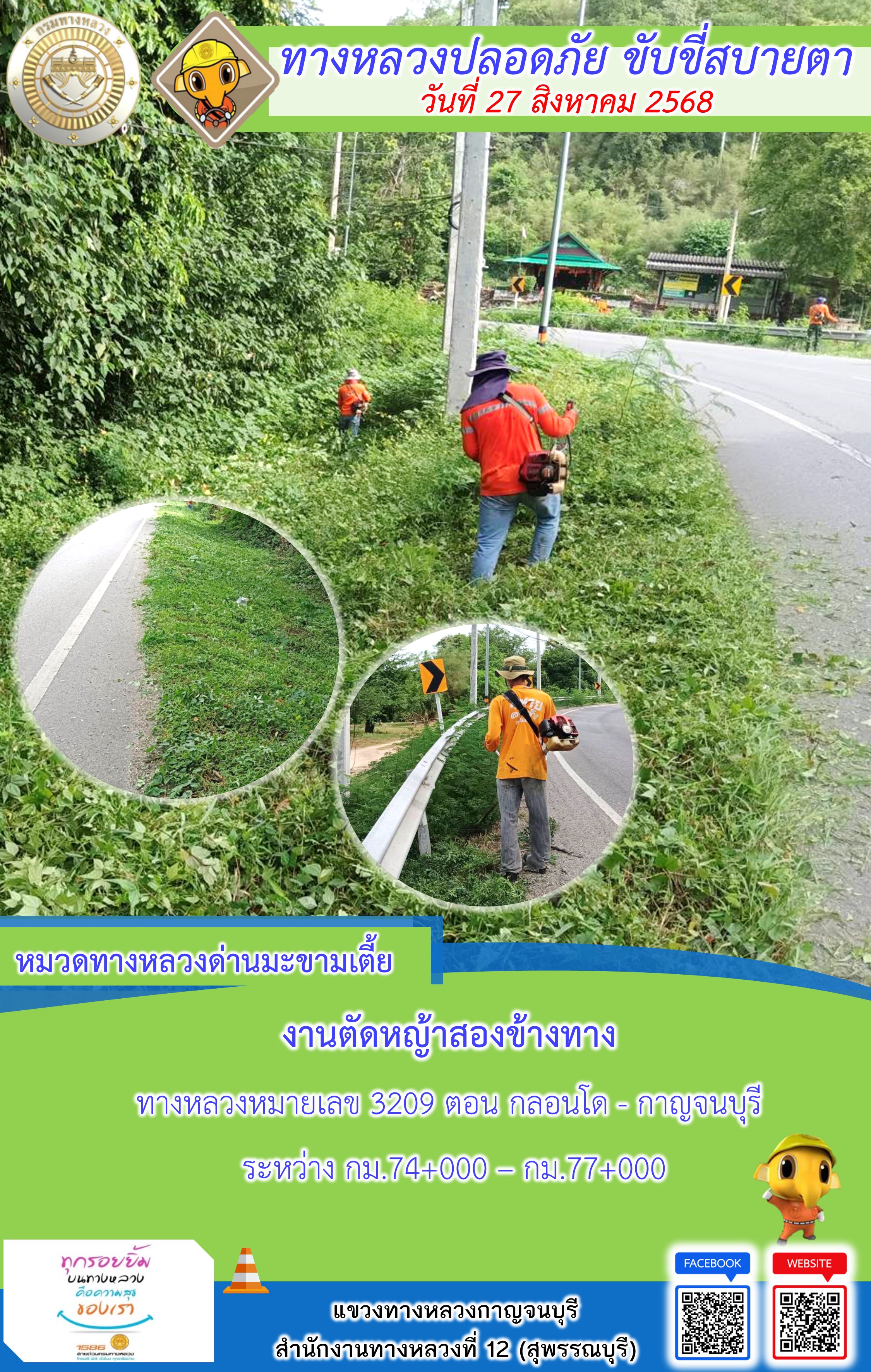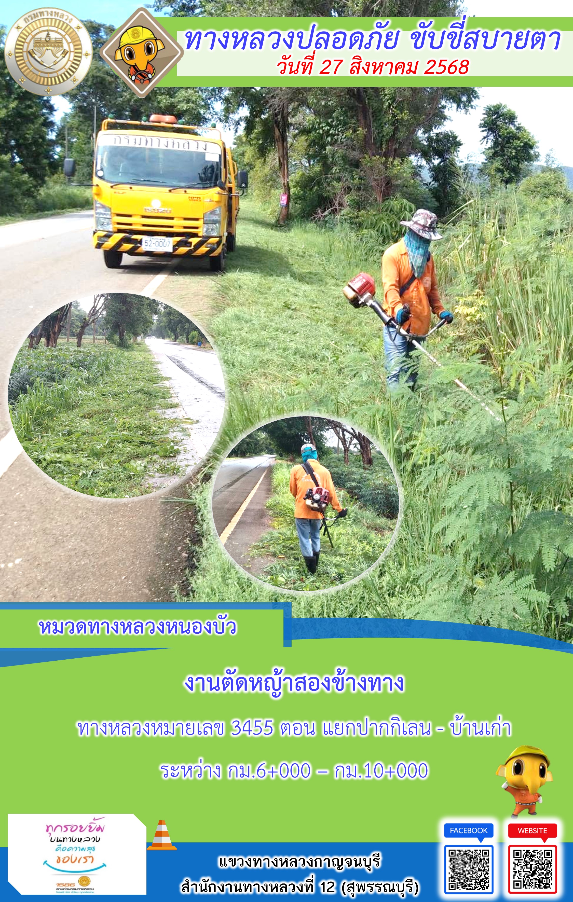 ข้อมูลภาพกิจกรรม : แขวงทางหลวงกาญจนบุรี โดยหมวดทางหลวงในสังกัด และงานอำนวยความปลอดภัยปฏิบัติงาน ประจำวันที่ 27 ส.ค. 68