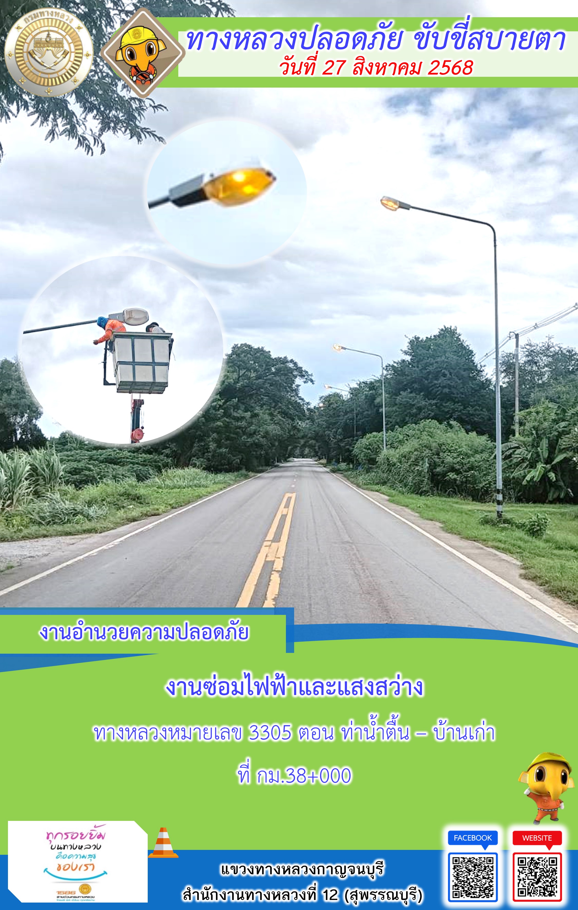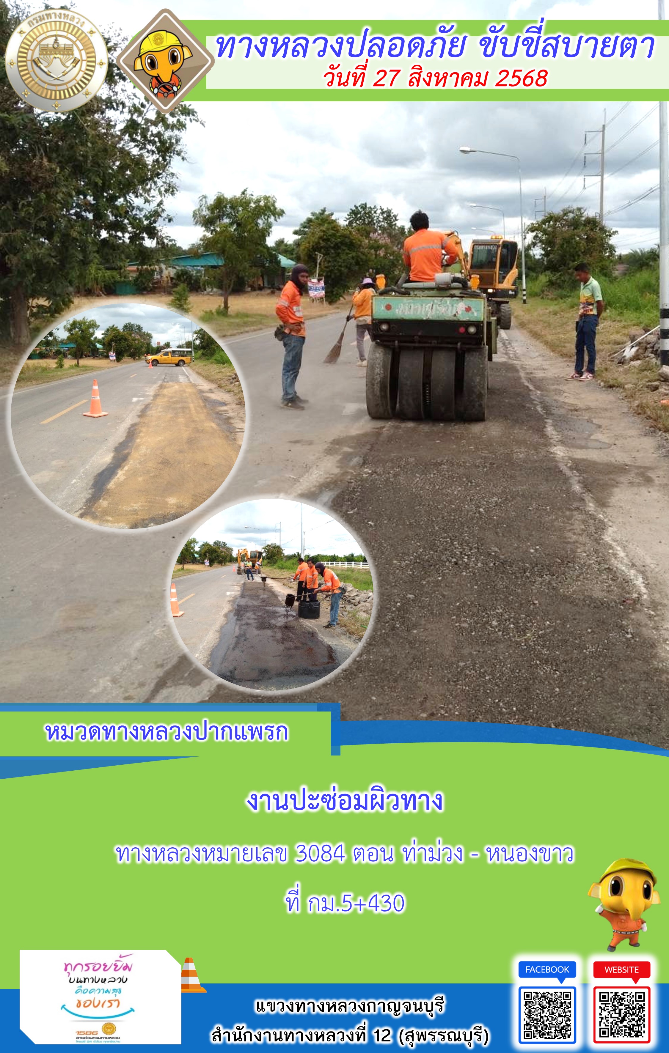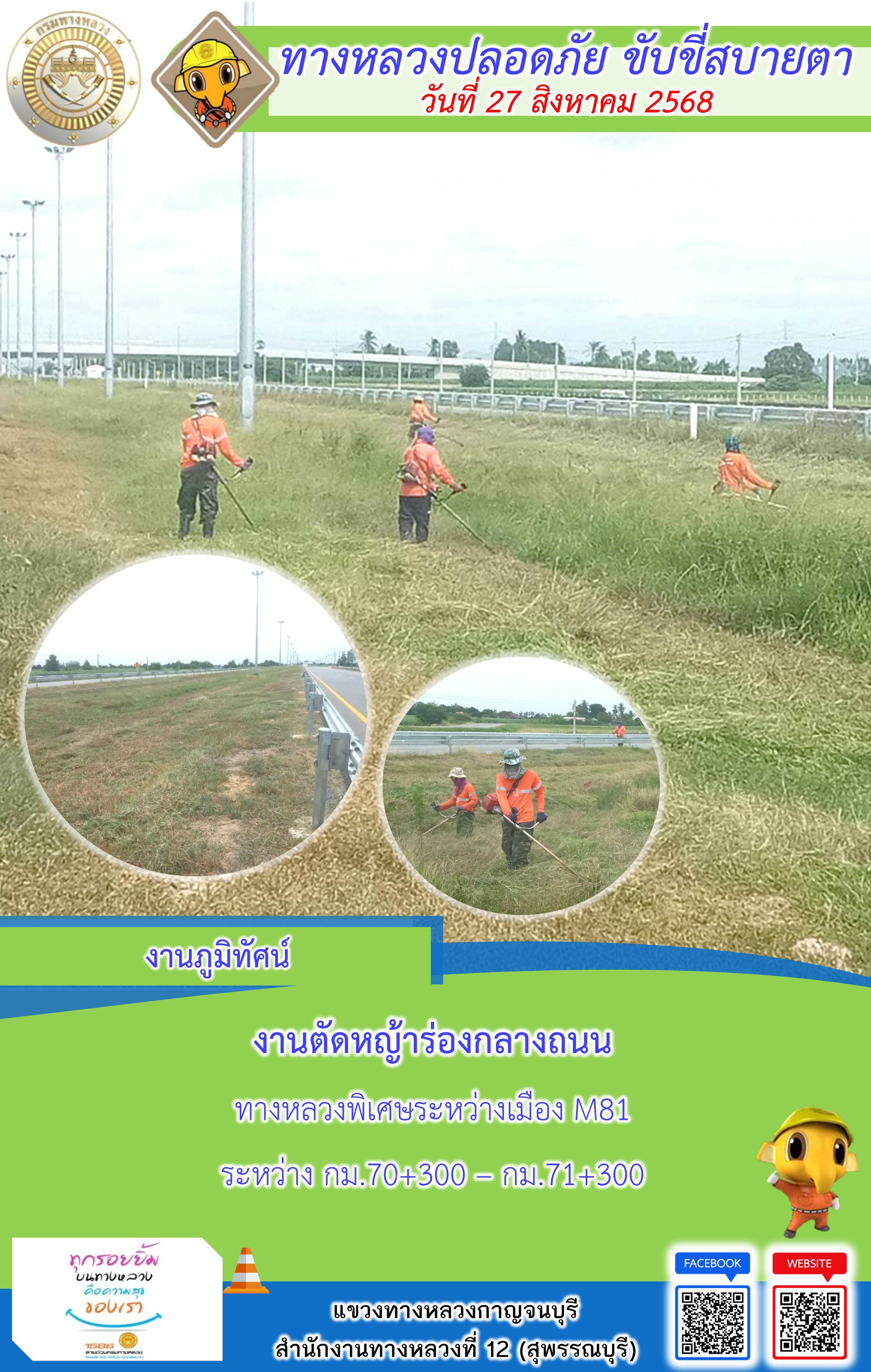 แขวงทางหลวงกาญจนบุรี โดยหมวดทางหลวงในสังกัด และงานอำนวยความปลอดภัยปฏิบัติงาน ประจำวันที่ 27 ส.ค. 68