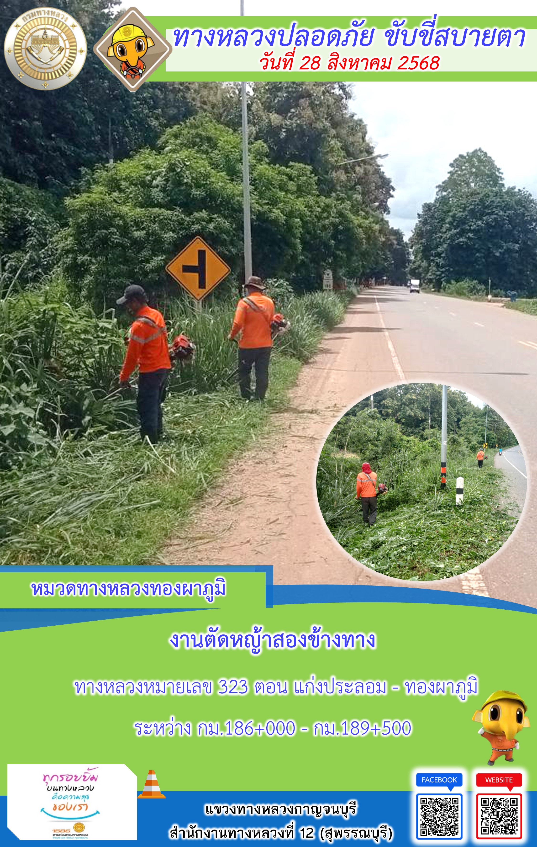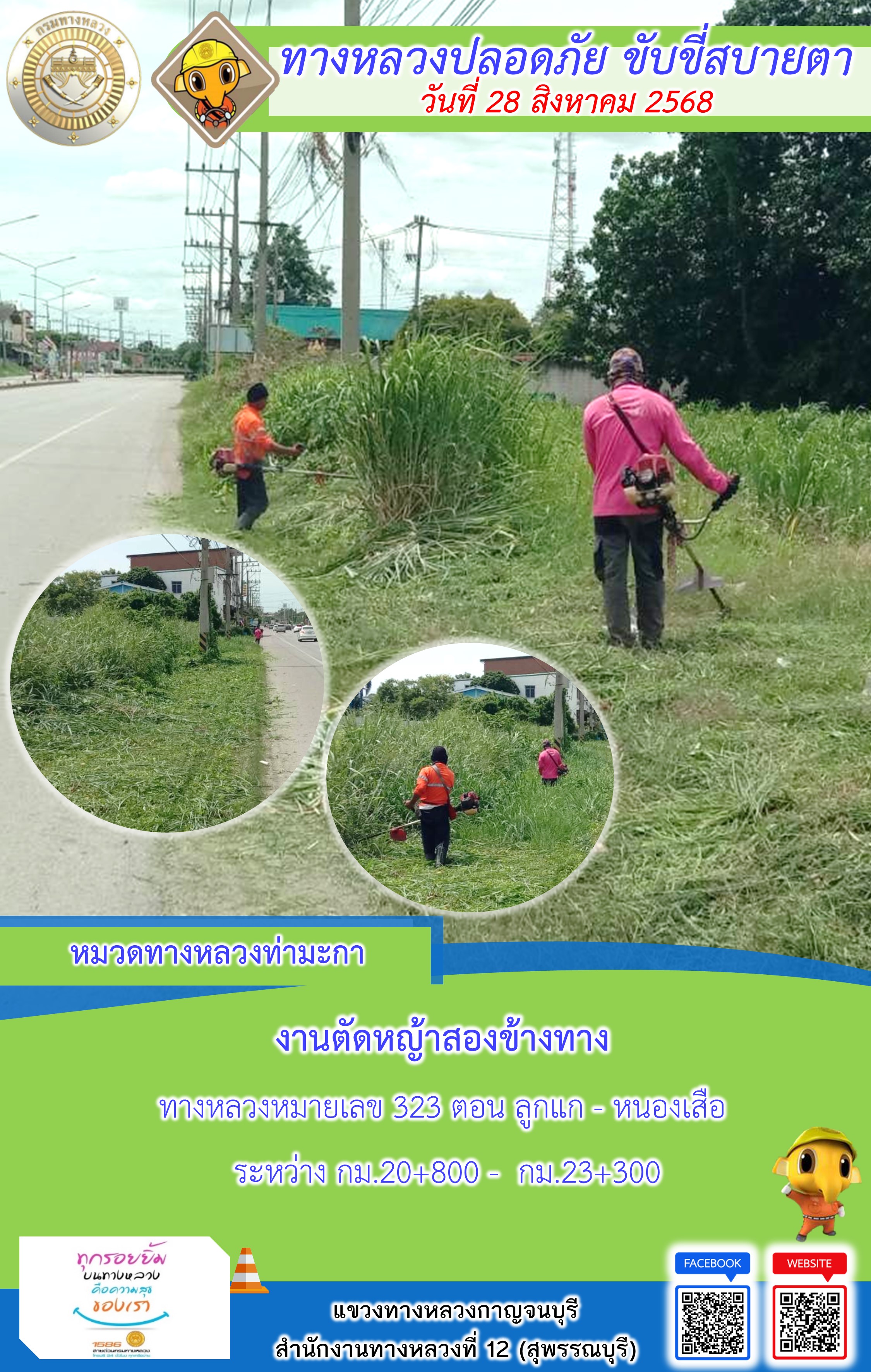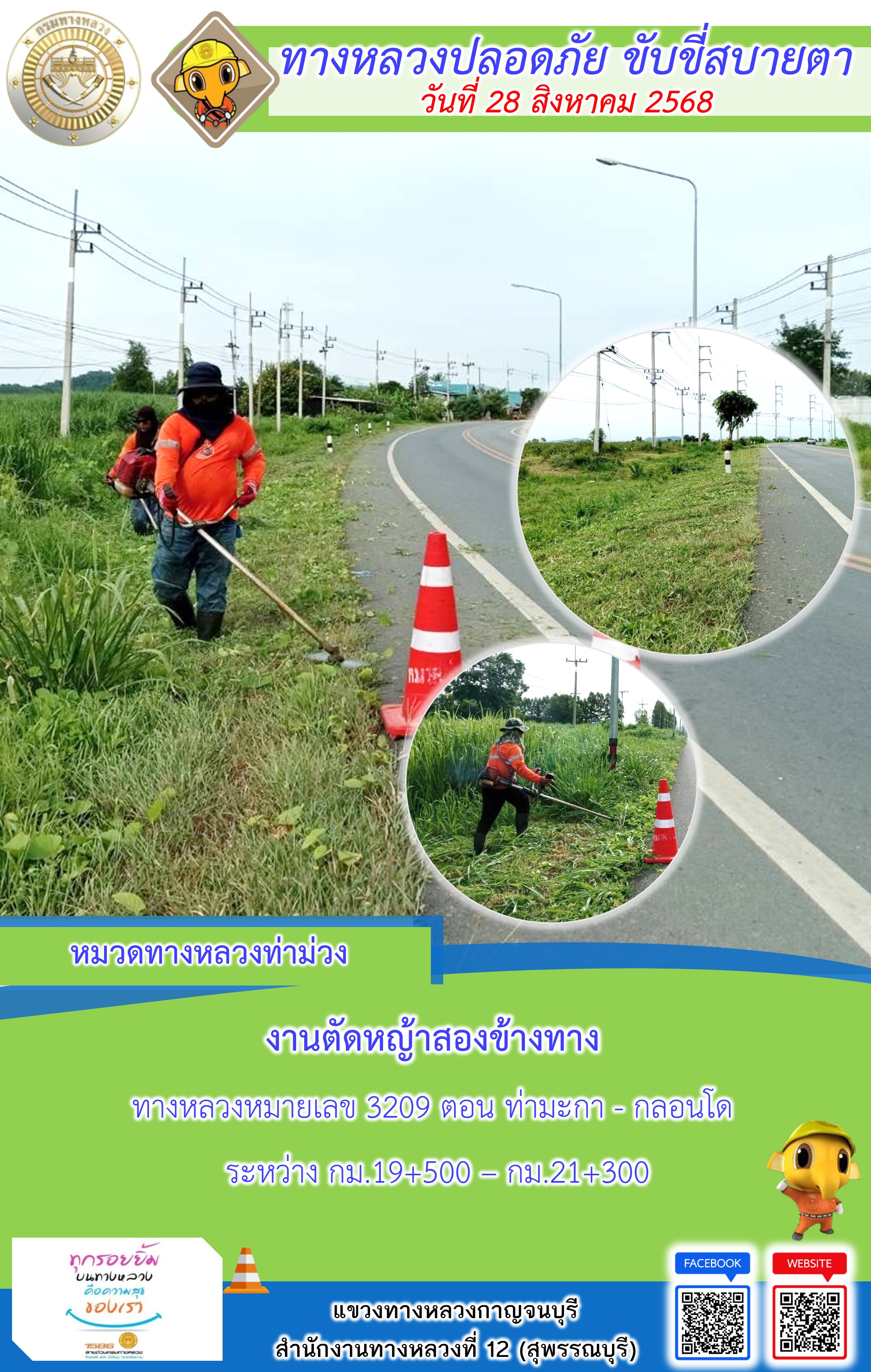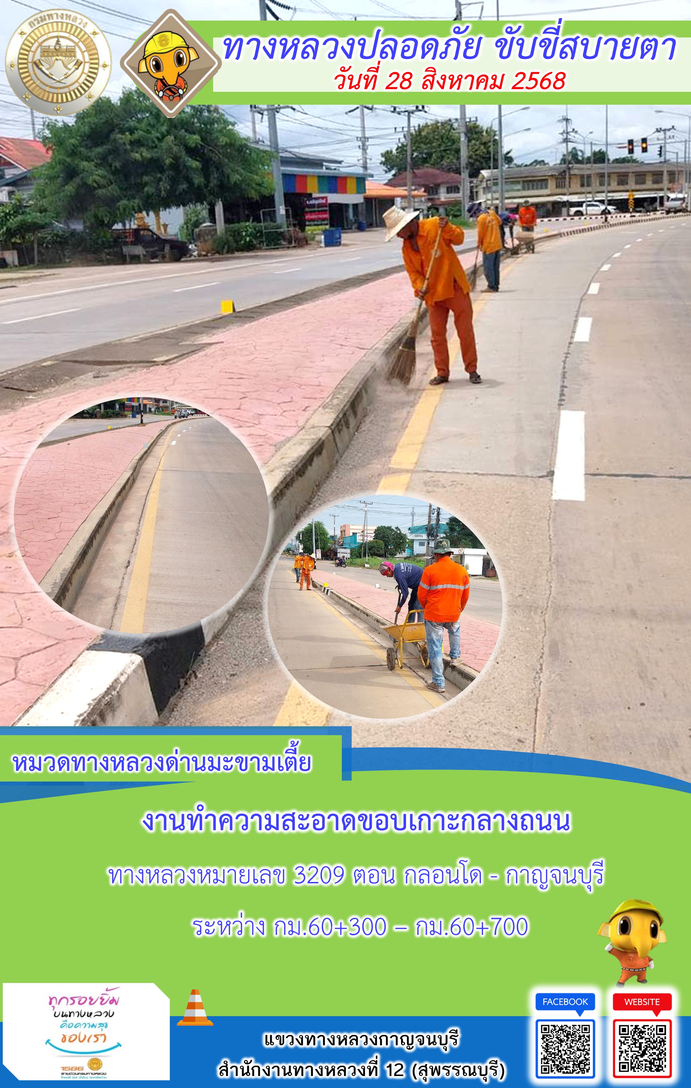 ข้อมูลภาพกิจกรรม : แขวงทางหลวงกาญจนบุรี โดยหมวดทางหลวงในสังกัด และงานอำนวยความปลอดภัยปฏิบัติงาน ประจำวันที่ 28 ส.ค. 68