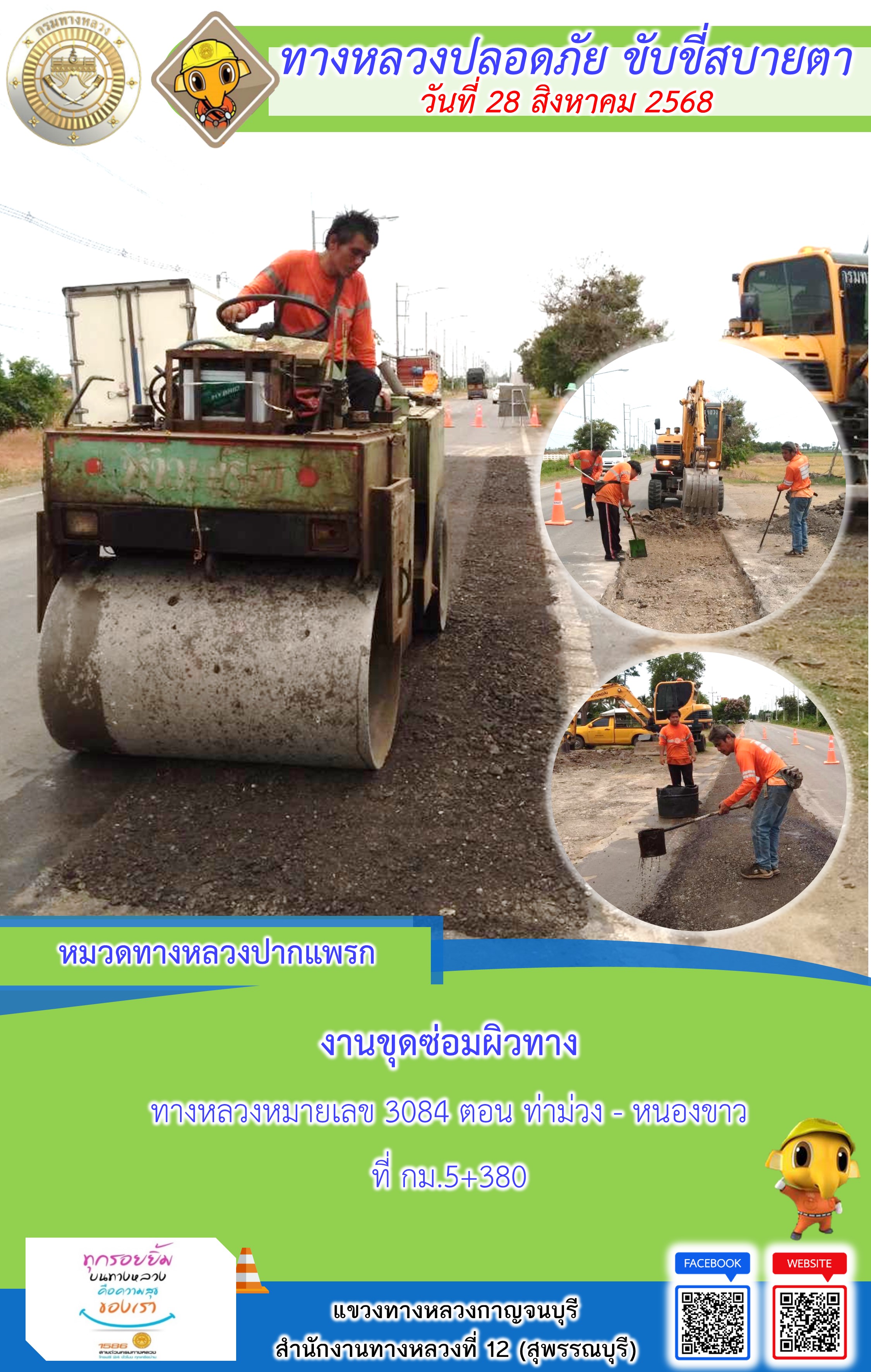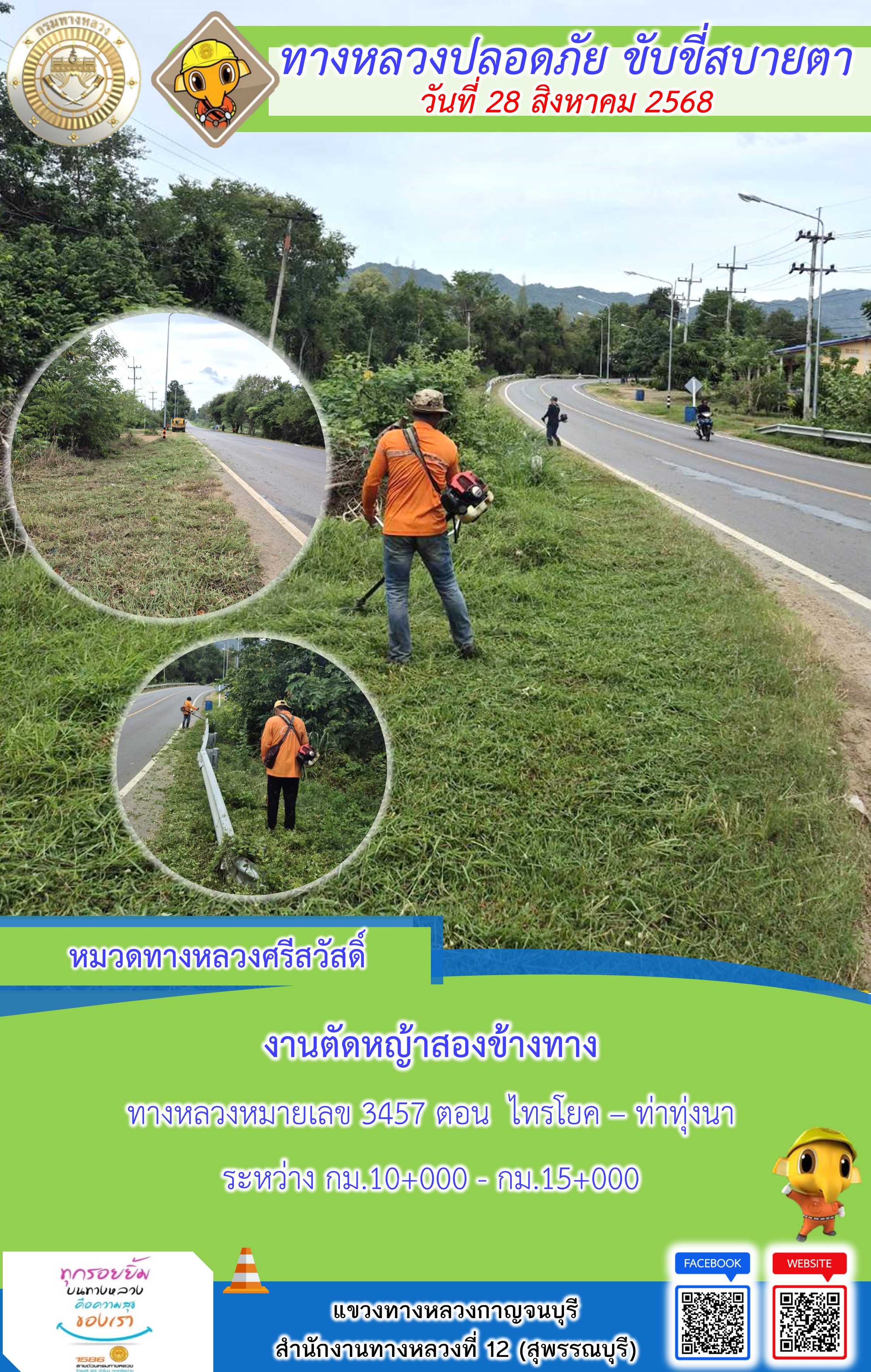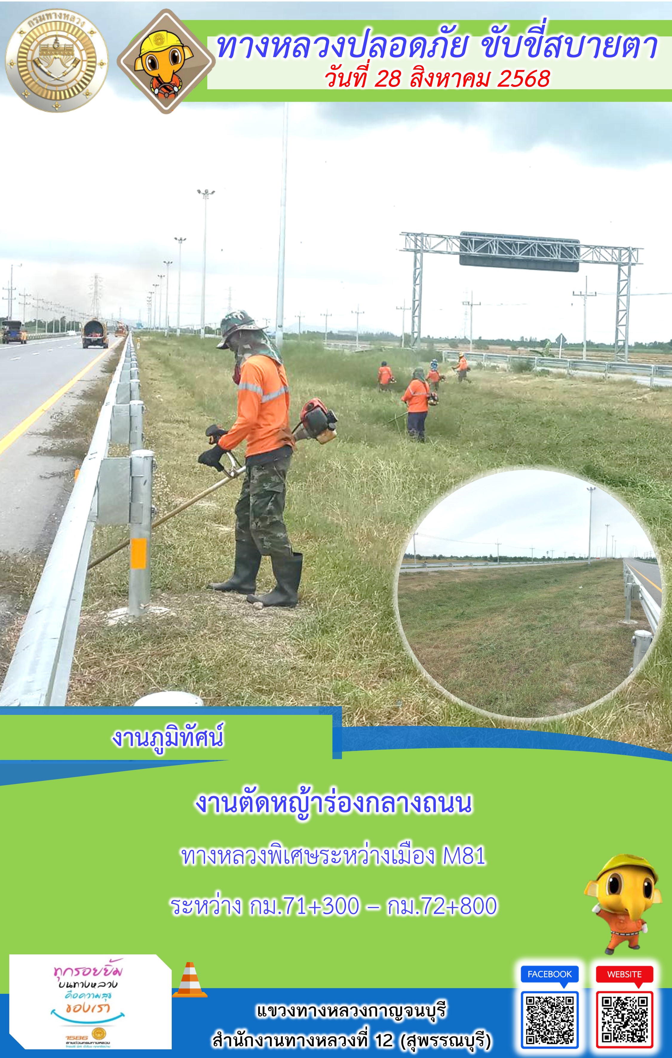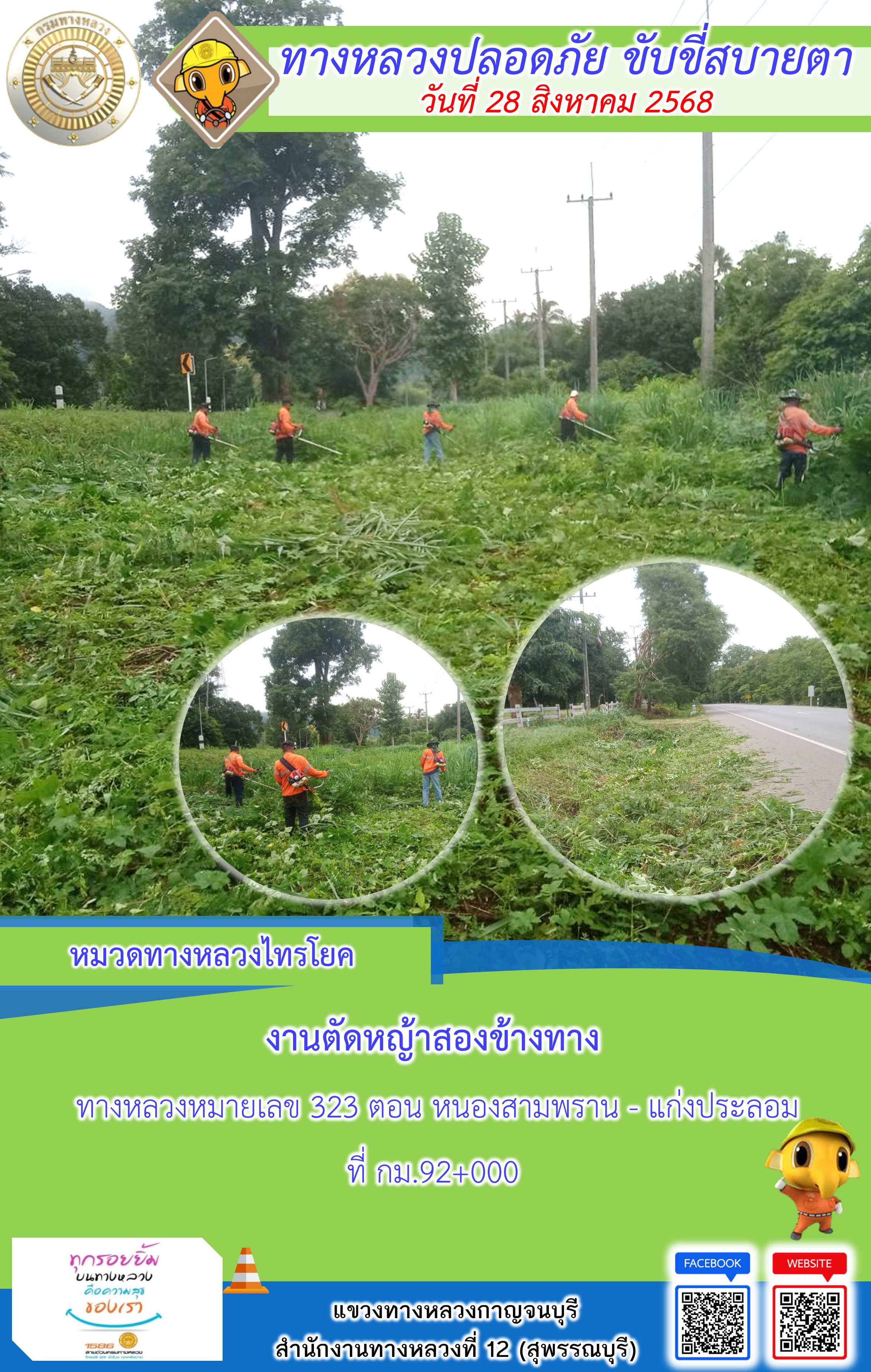 ข้อมูลภาพกิจกรรม : แขวงทางหลวงกาญจนบุรี โดยหมวดทางหลวงในสังกัด และงานอำนวยความปลอดภัยปฏิบัติงาน ประจำวันที่ 28 ส.ค. 68