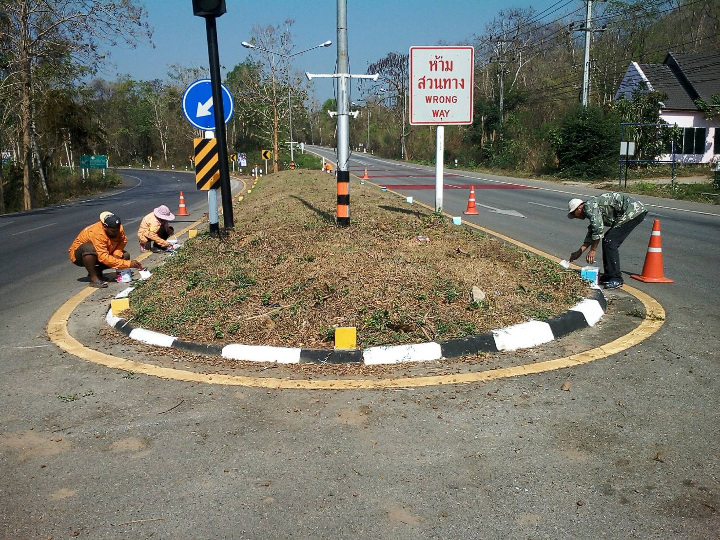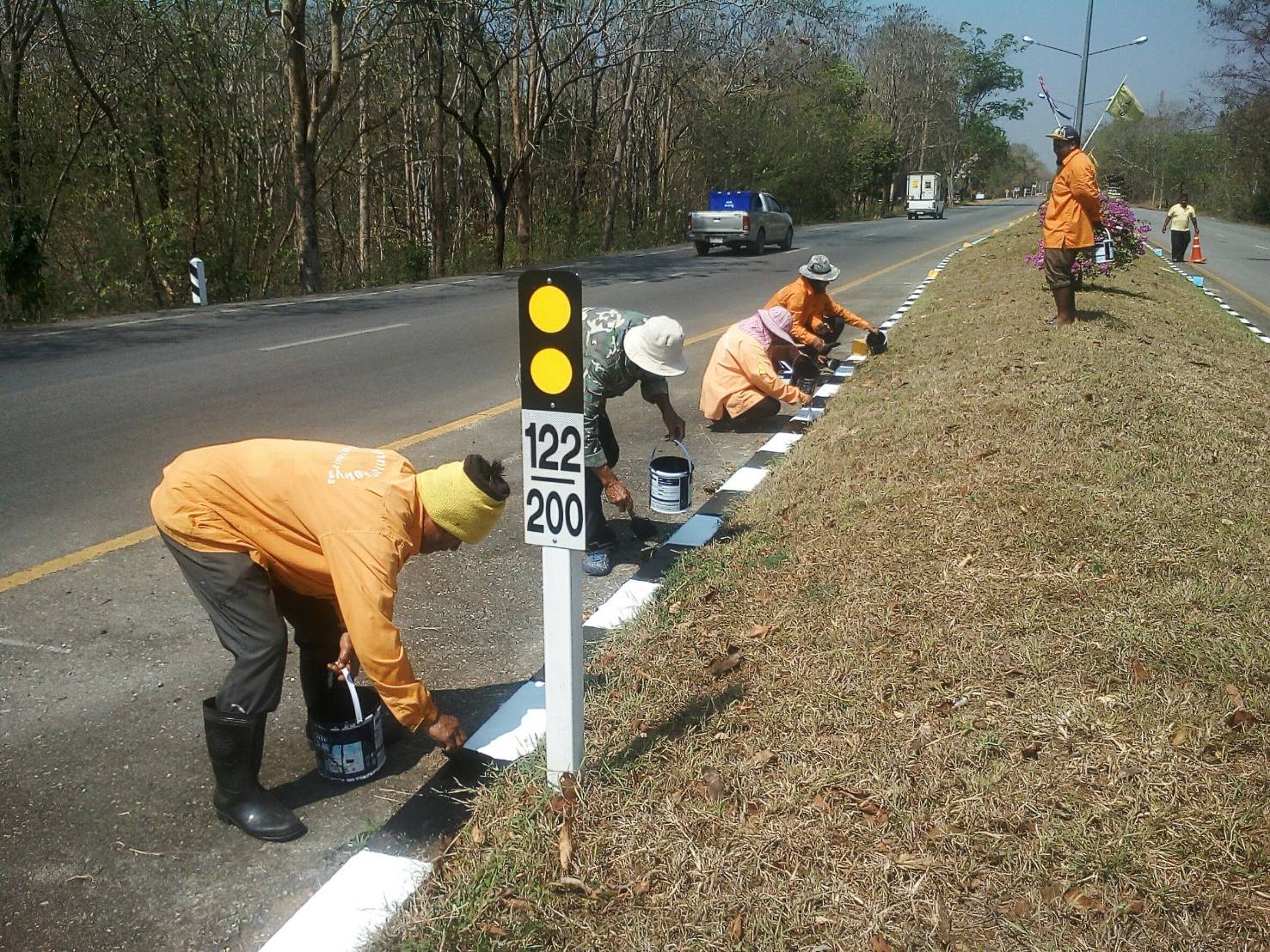 1.ดำเนินการทาสีขอบเกาะกลาง ทล.323 ตอนแยกปากกิเลน - น้ำตกไทรโยคใหญ่ เริ่ม ช่วง กม.121+000 - 122+350