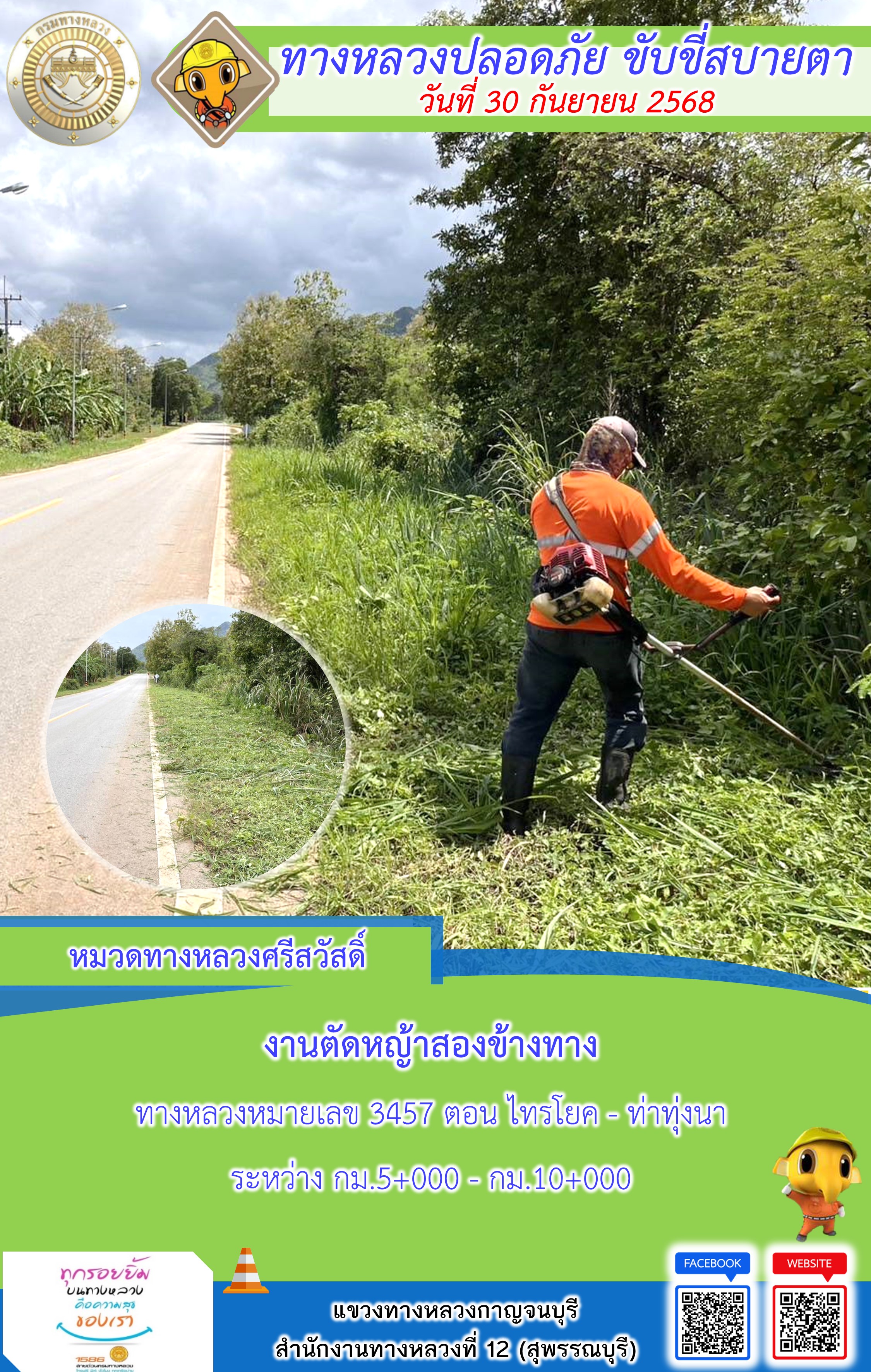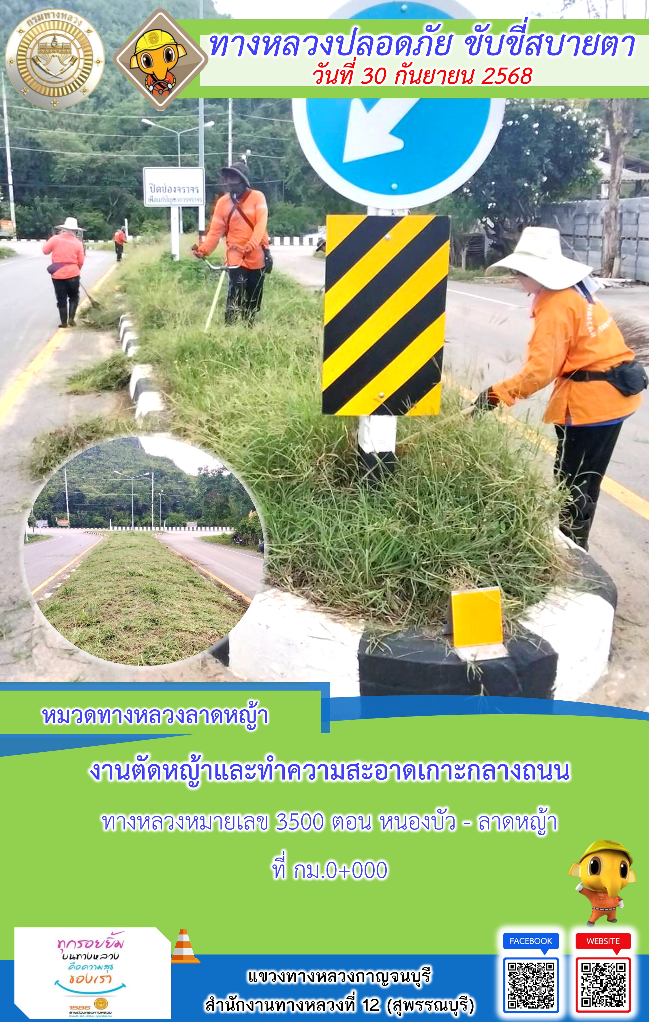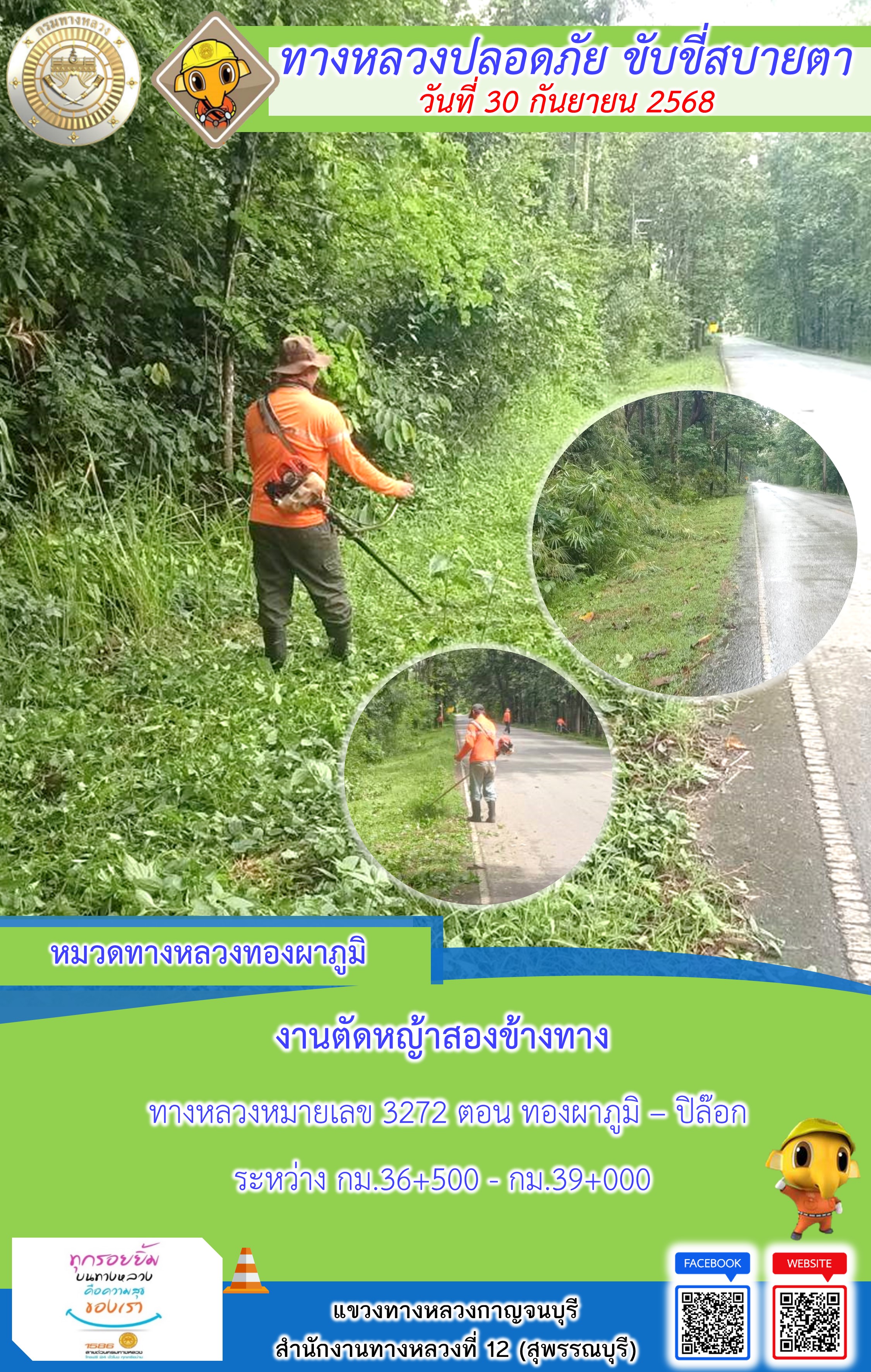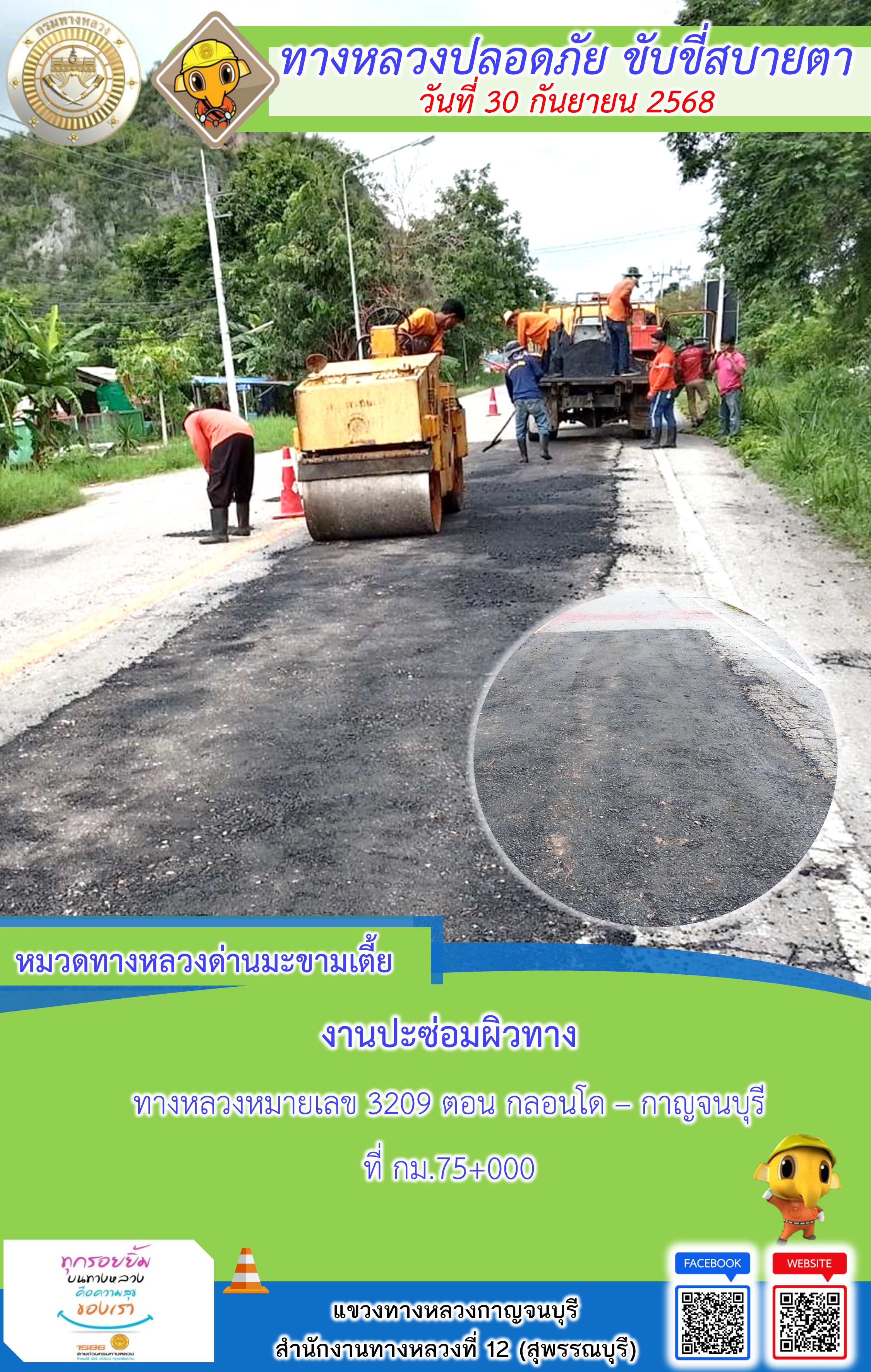 แขวงทางหลวงกาญจนบุรี โดยหมวดทางหลวงในสังกัด และงานอำนวยความปลอดภัยปฏิบัติงาน ประจำวันที่ 30 ก.ย. 68