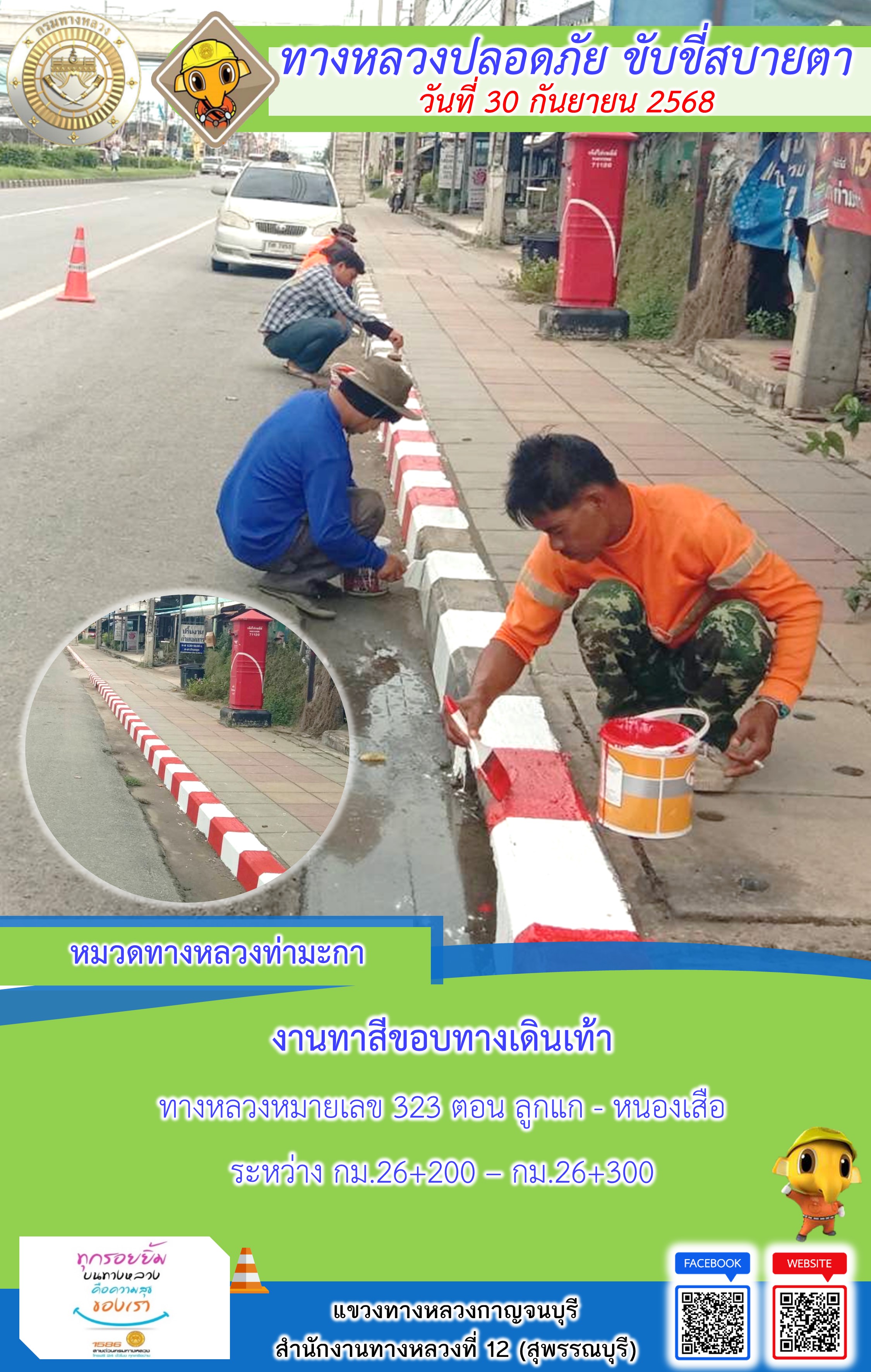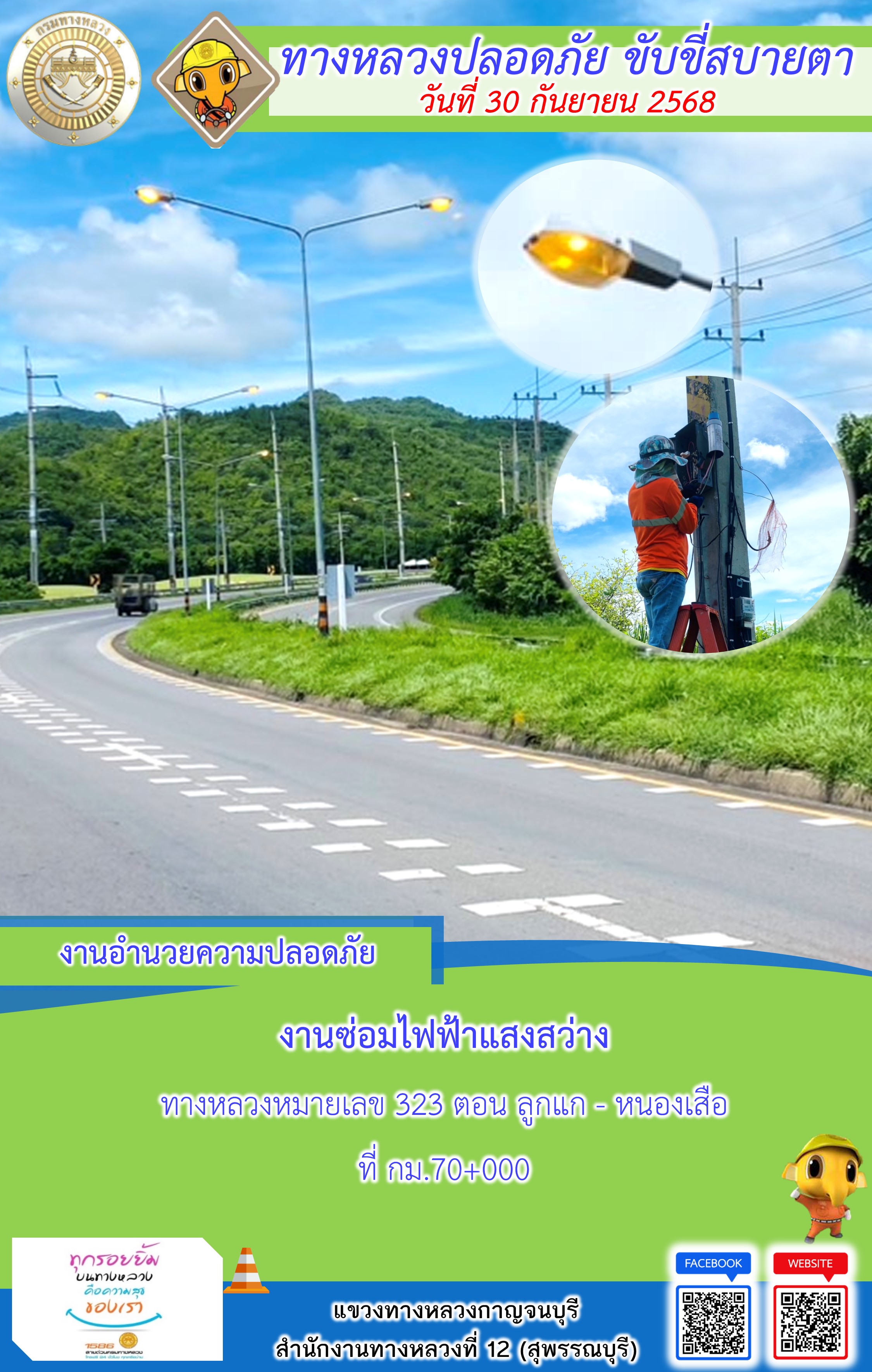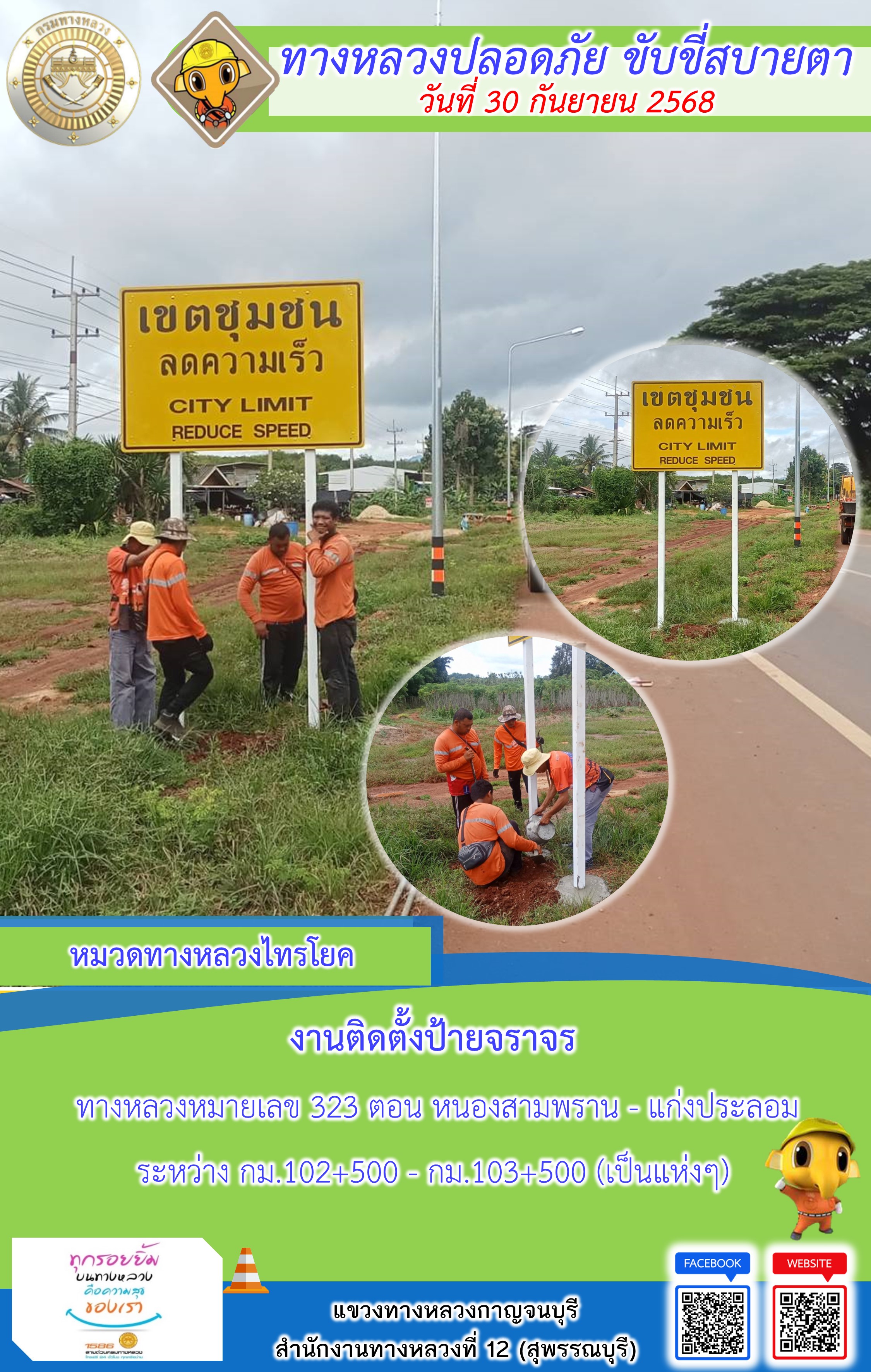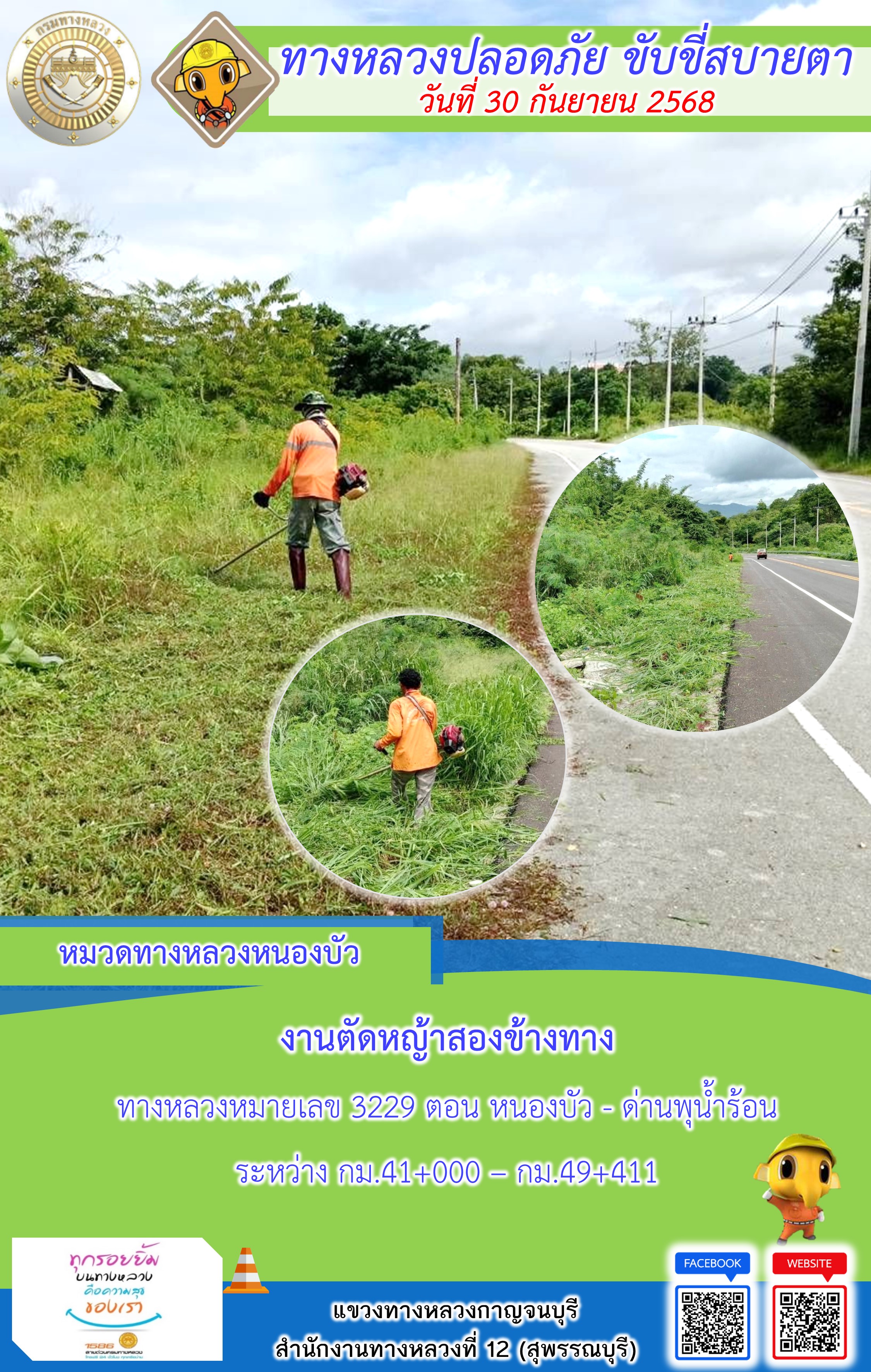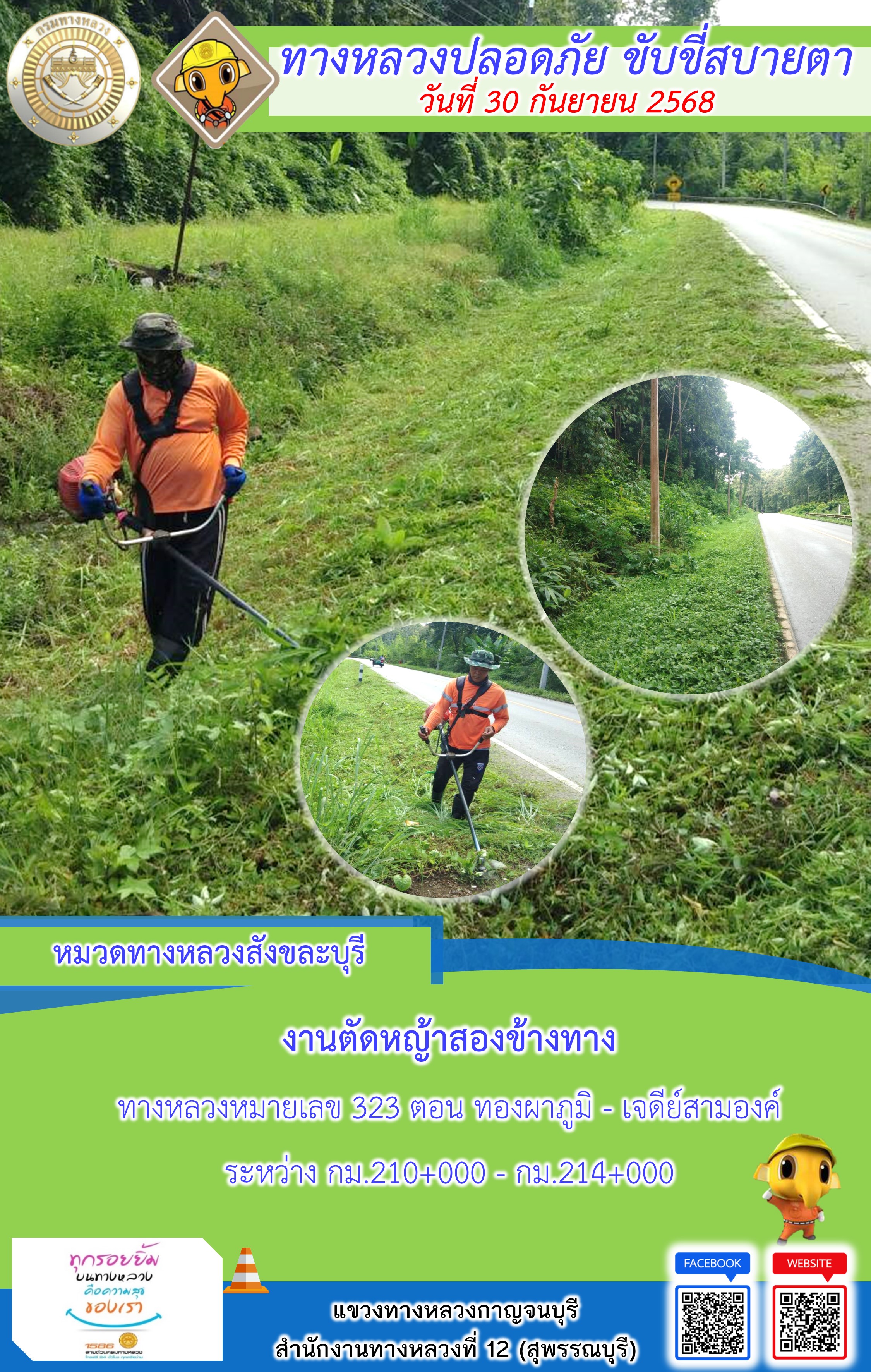 แขวงทางหลวงกาญจนบุรี โดยหมวดทางหลวงในสังกัด และงานอำนวยความปลอดภัยปฏิบัติงาน ประจำวันที่ 30 ก.ย. 68