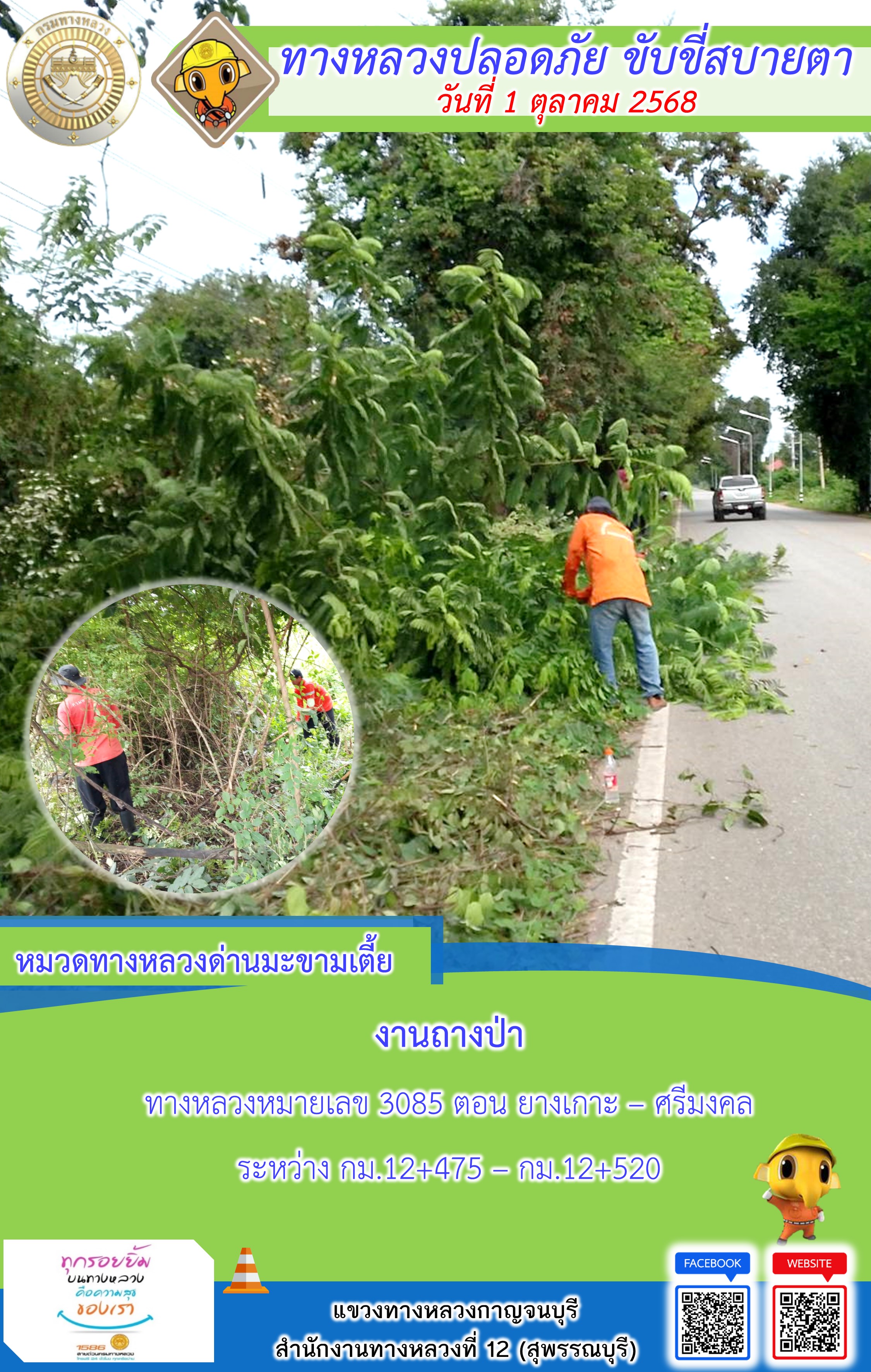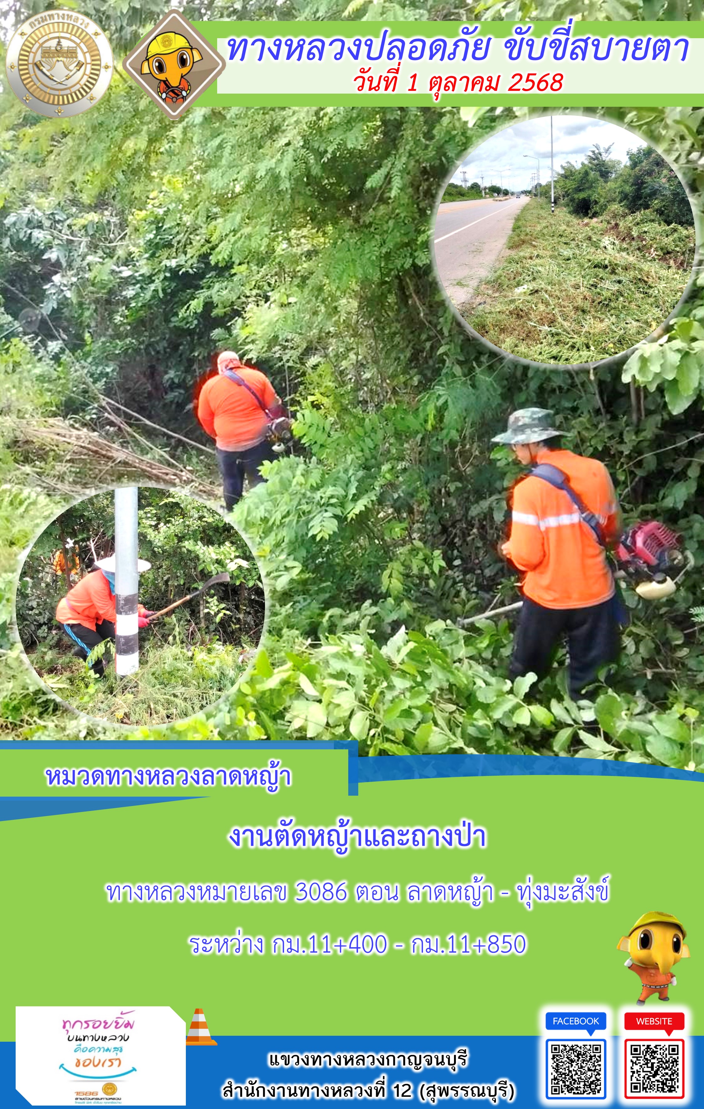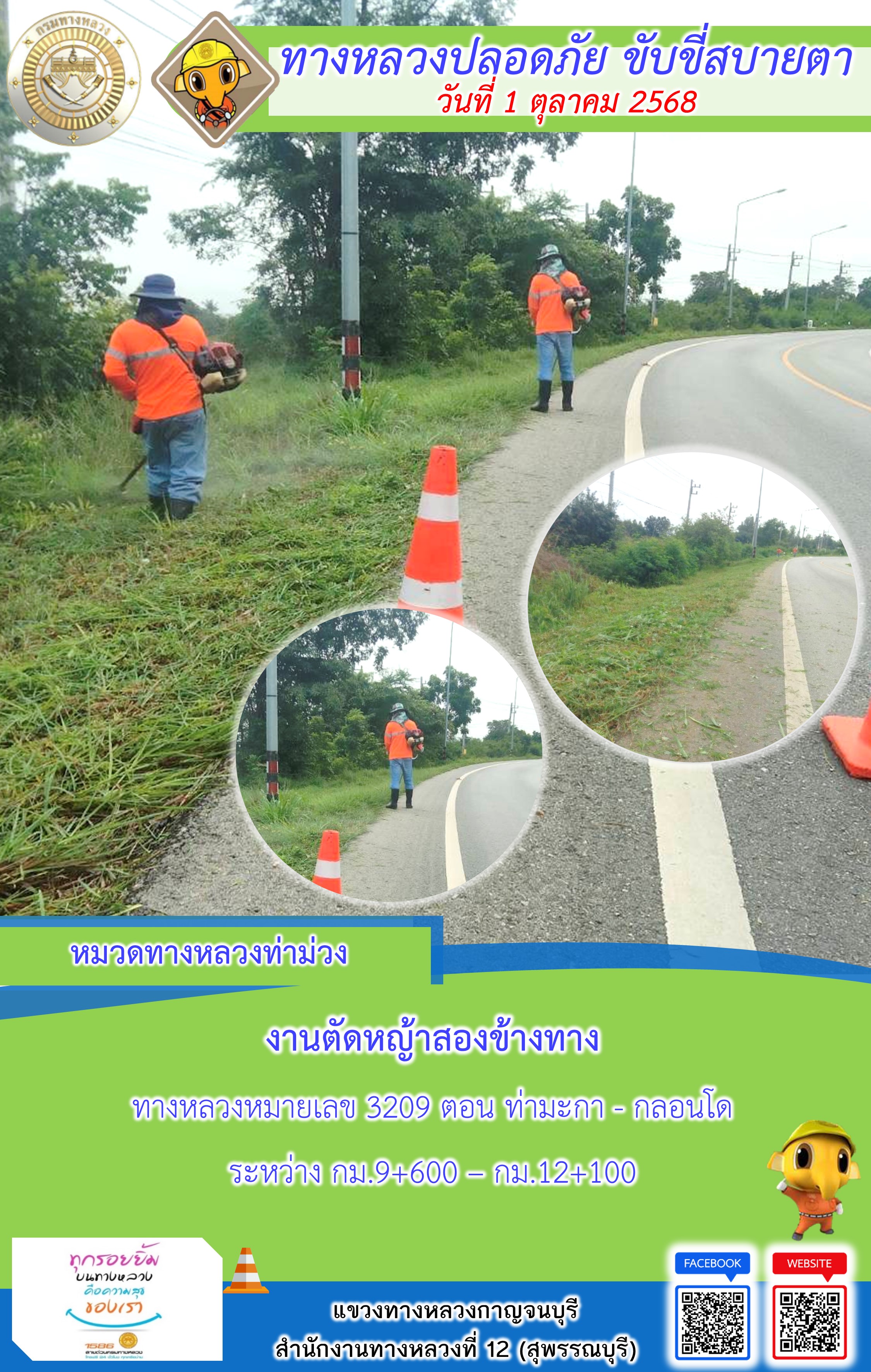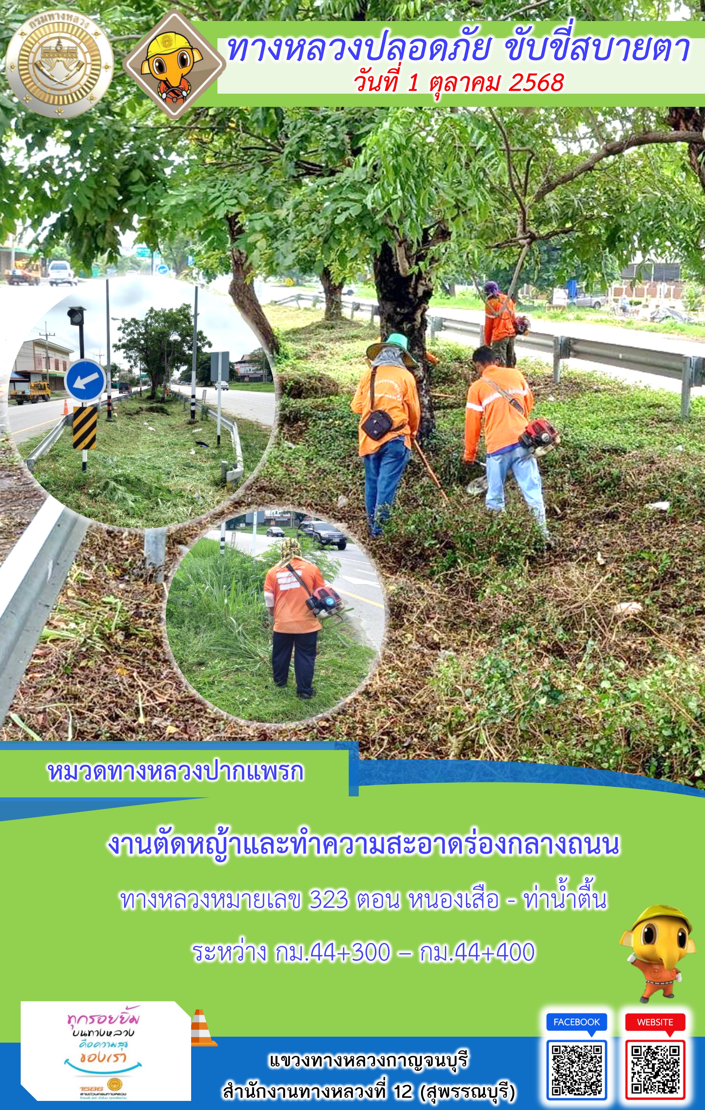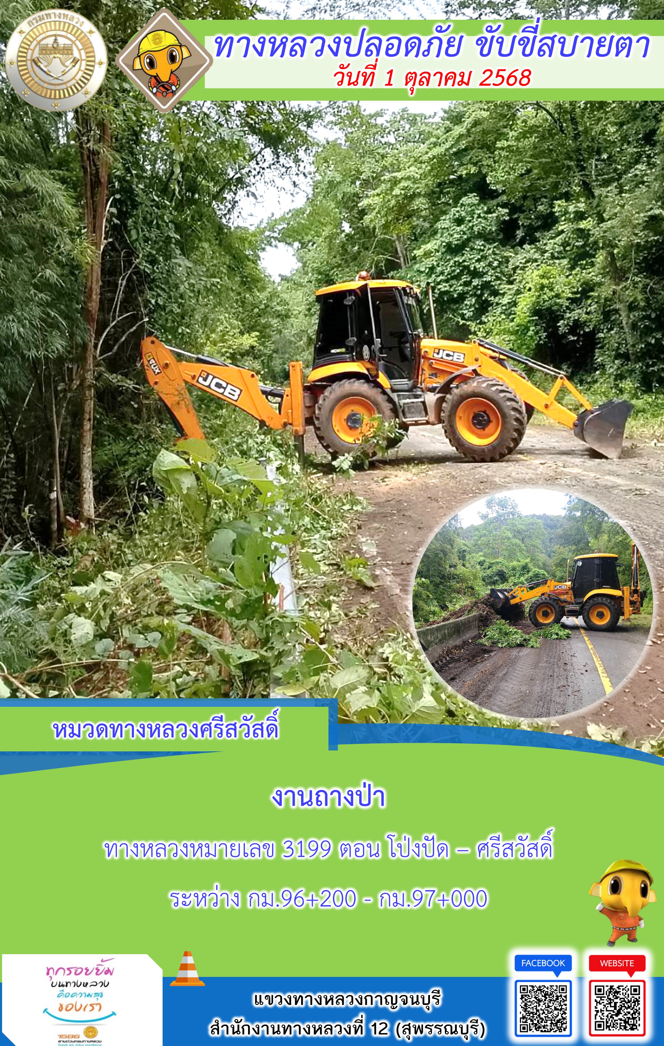 แขวงทางหลวงกาญจนบุรี โดยหมวดทางหลวงในสังกัด และงานอำนวยความปลอดภัยปฏิบัติงาน ประจำวันที่ 1 ต.ต. 68