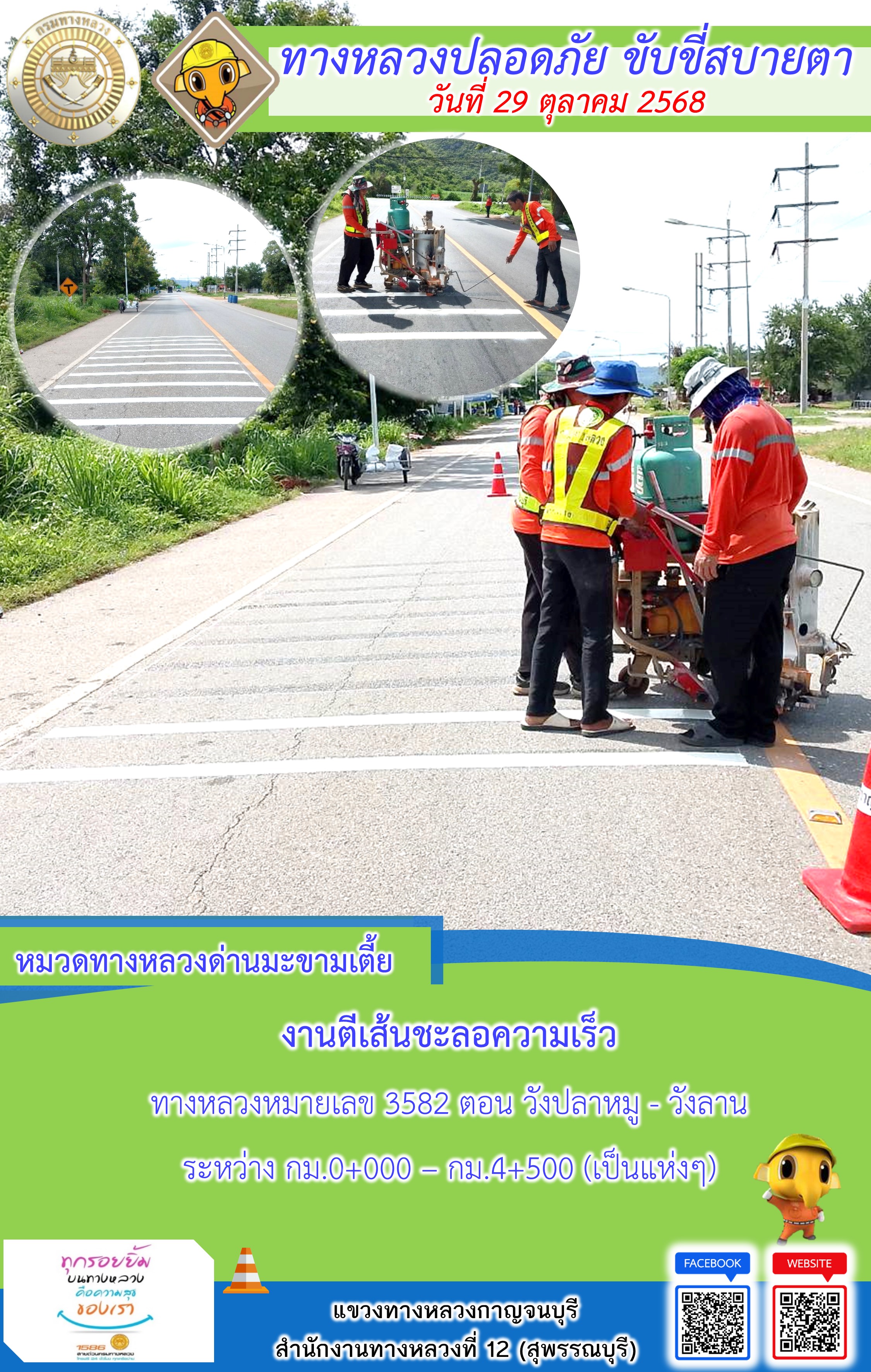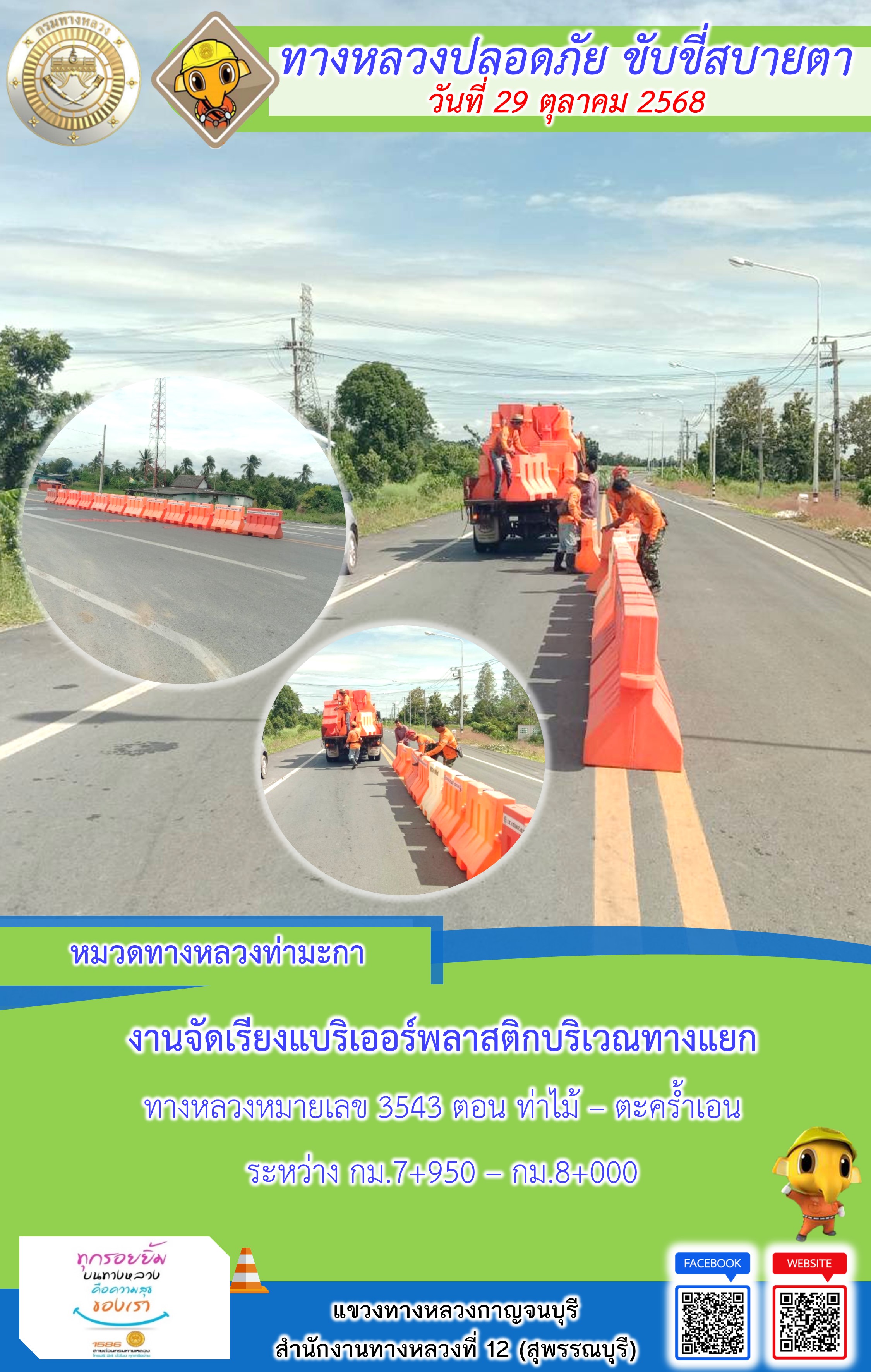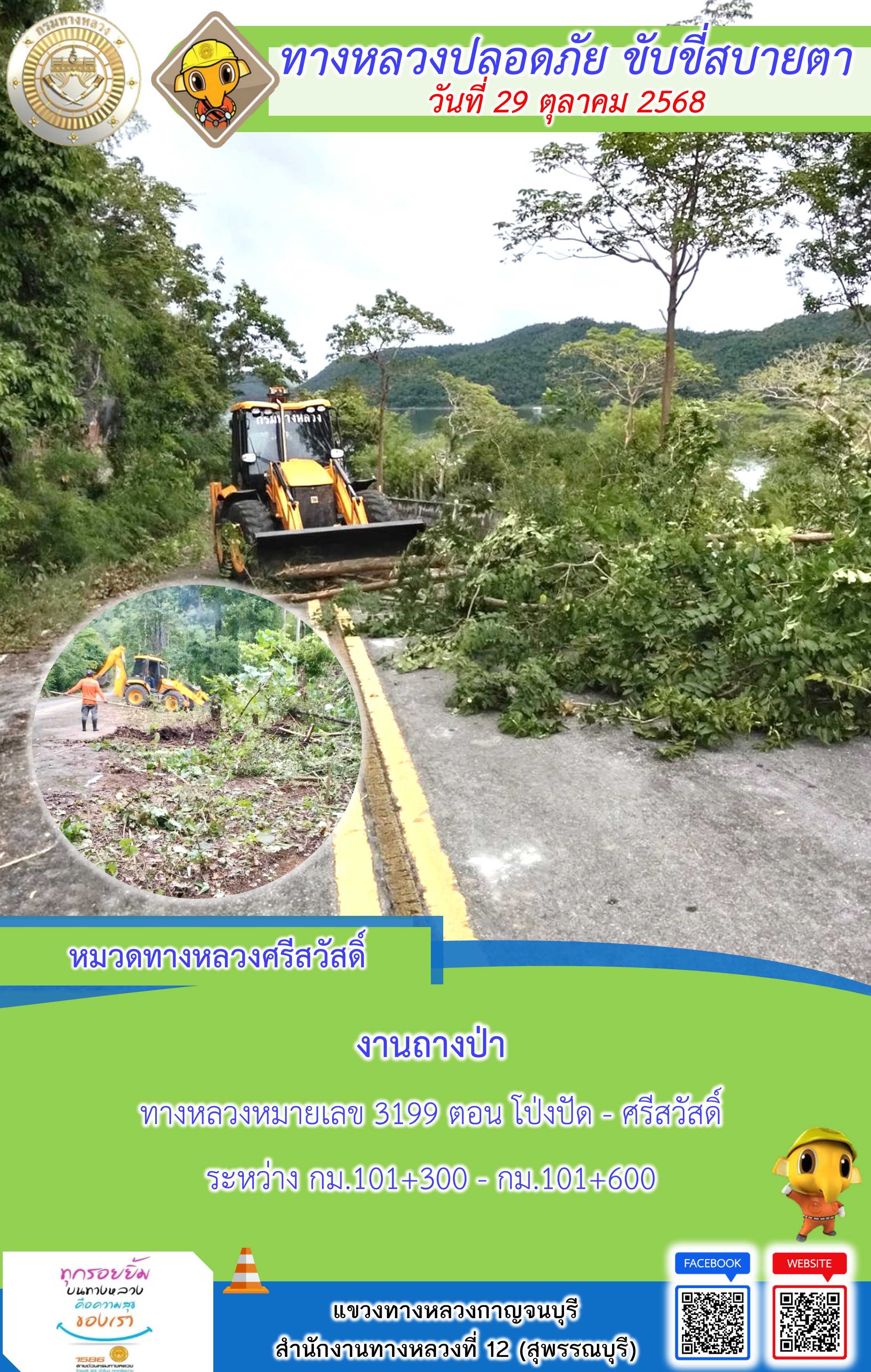 แขวงทางหลวงกาญจนบุรี โดยหมวดทางหลวงในสังกัด และงานอำนวยความปลอดภัยปฏิบัติงาน ประจำวันที่ 29 ต.ต. 68