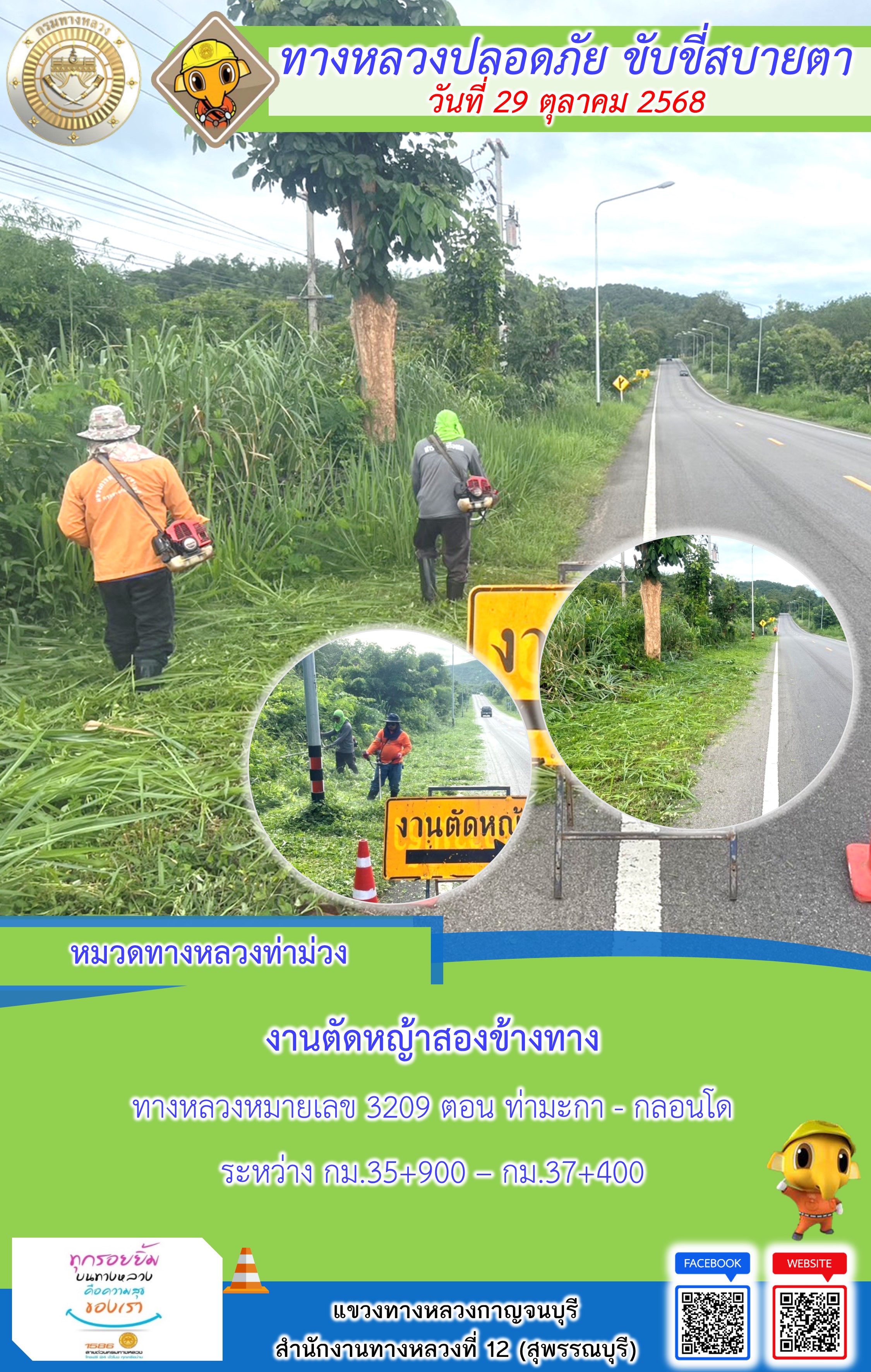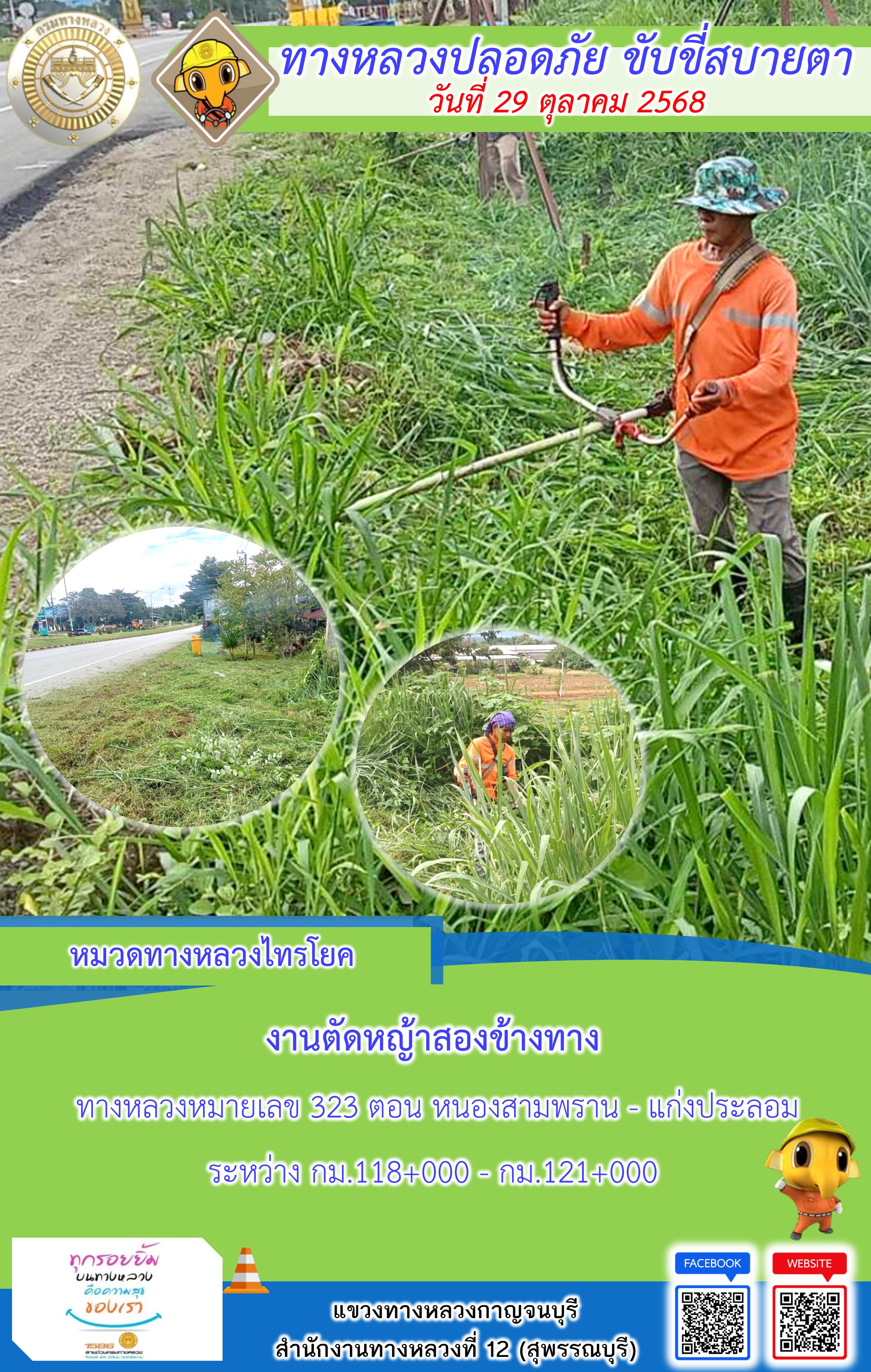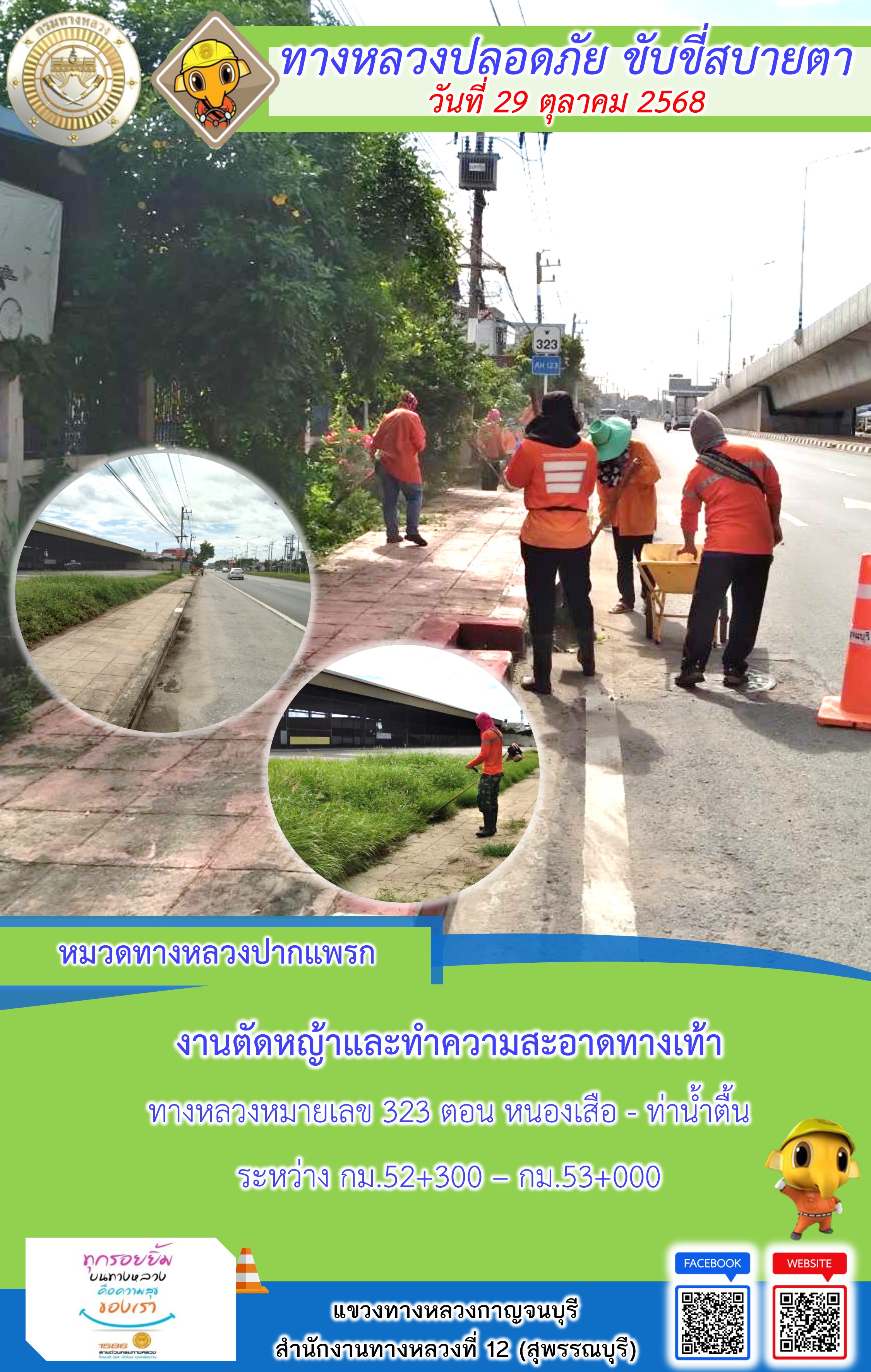 ข้อมูลภาพกิจกรรม : แขวงทางหลวงกาญจนบุรี โดยหมวดทางหลวงในสังกัด และงานอำนวยความปลอดภัยปฏิบัติงาน ประจำวันที่ 29 ต.ต. 68