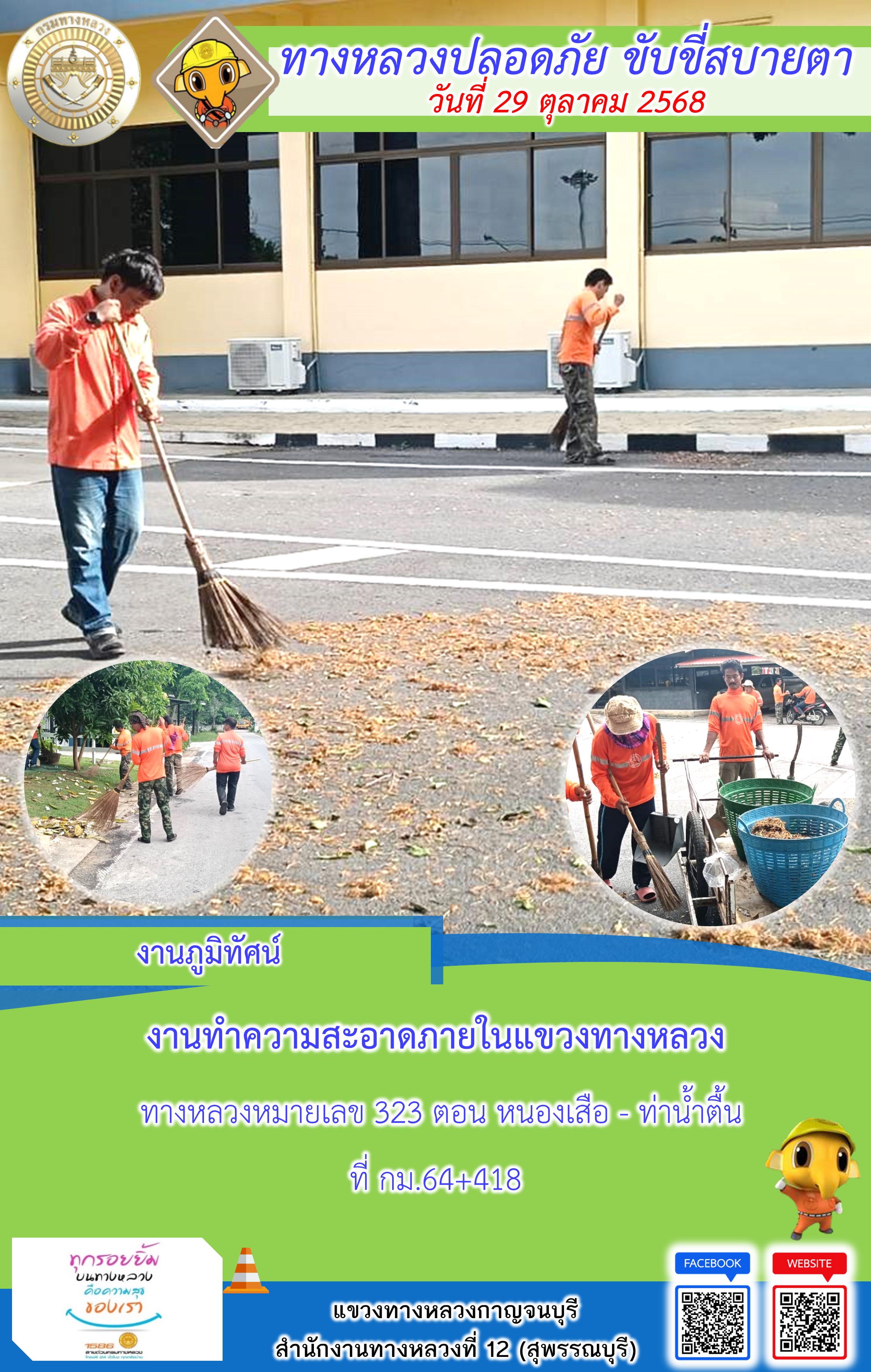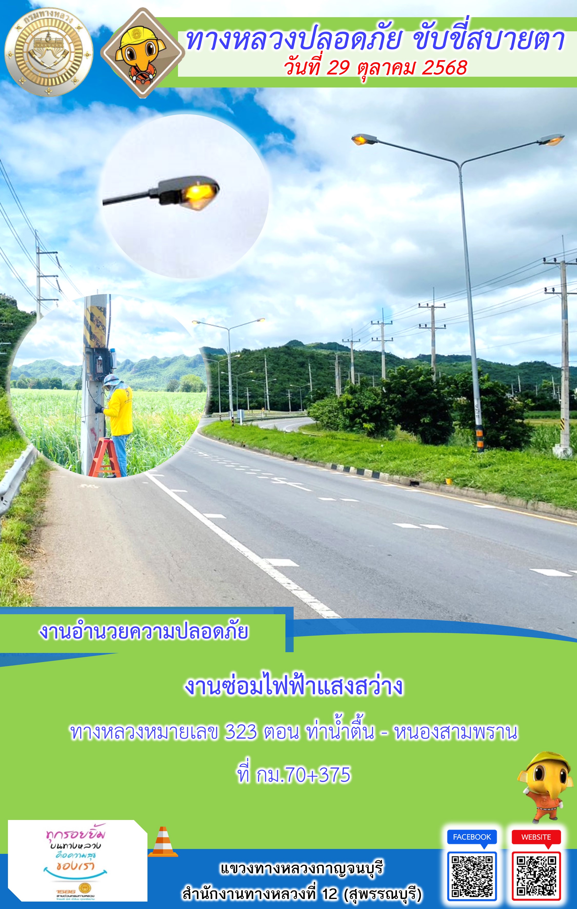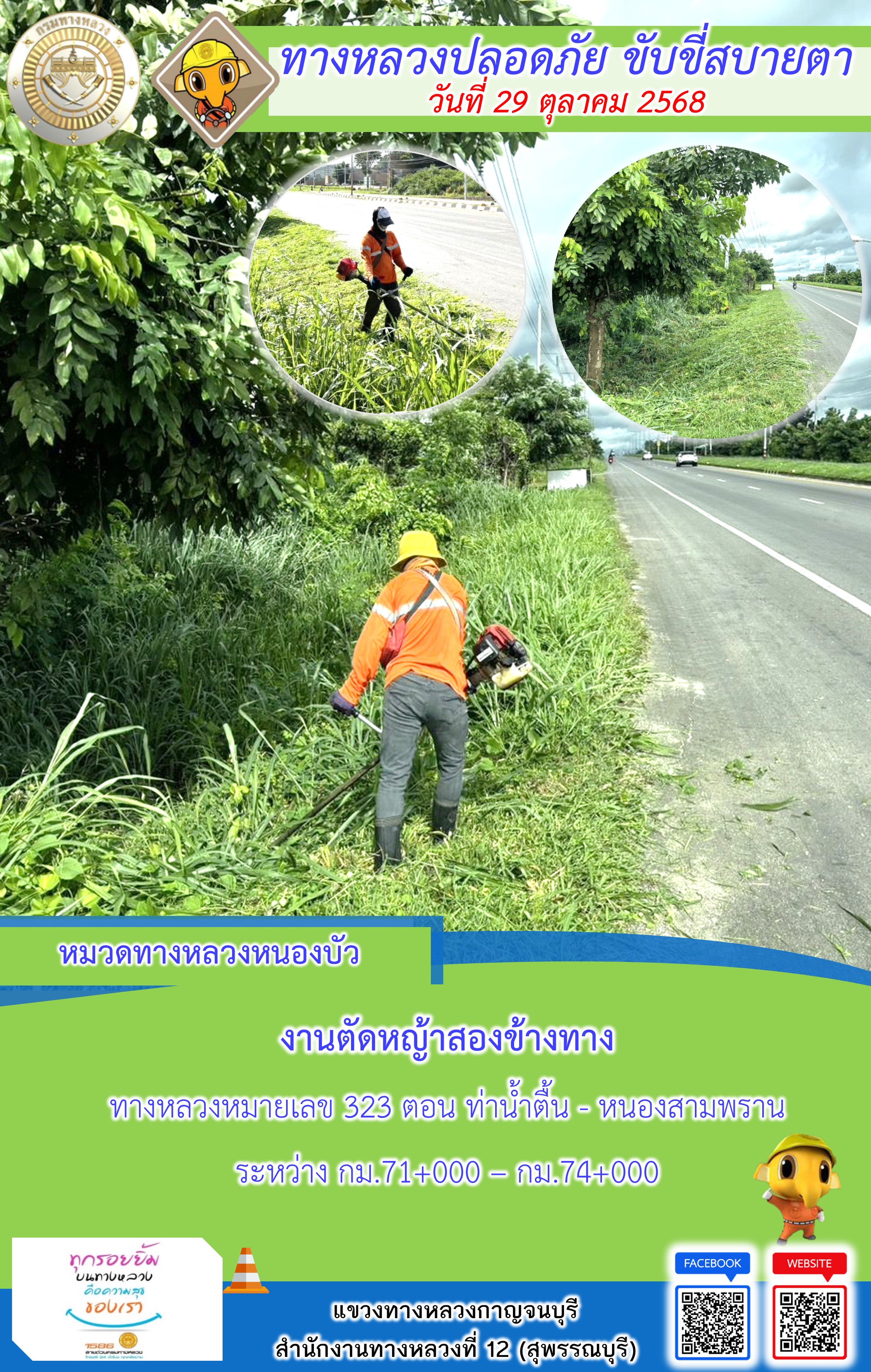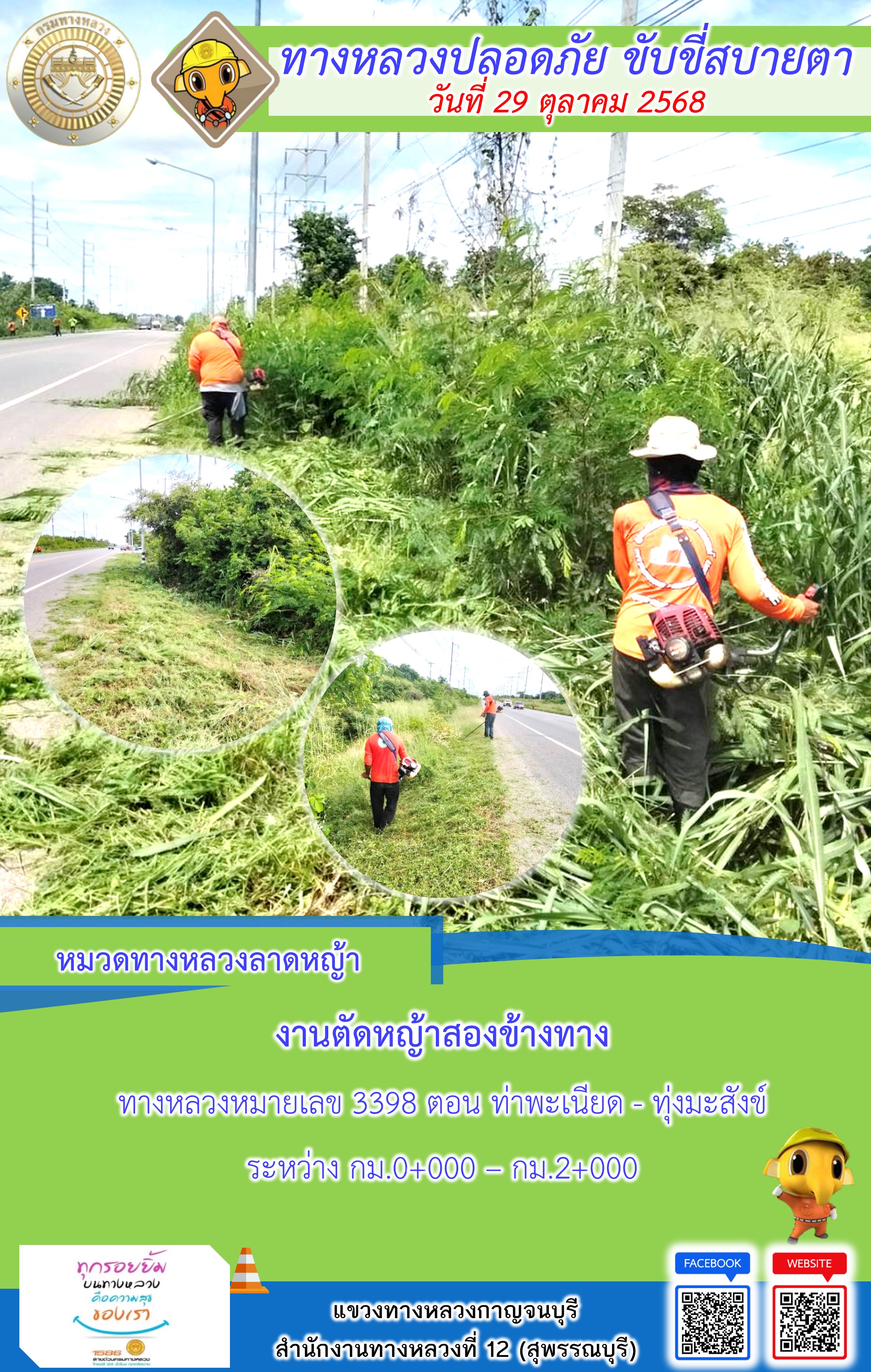 ข้อมูลภาพกิจกรรม : แขวงทางหลวงกาญจนบุรี โดยหมวดทางหลวงในสังกัด และงานอำนวยความปลอดภัยปฏิบัติงาน ประจำวันที่ 29 ต.ต. 68