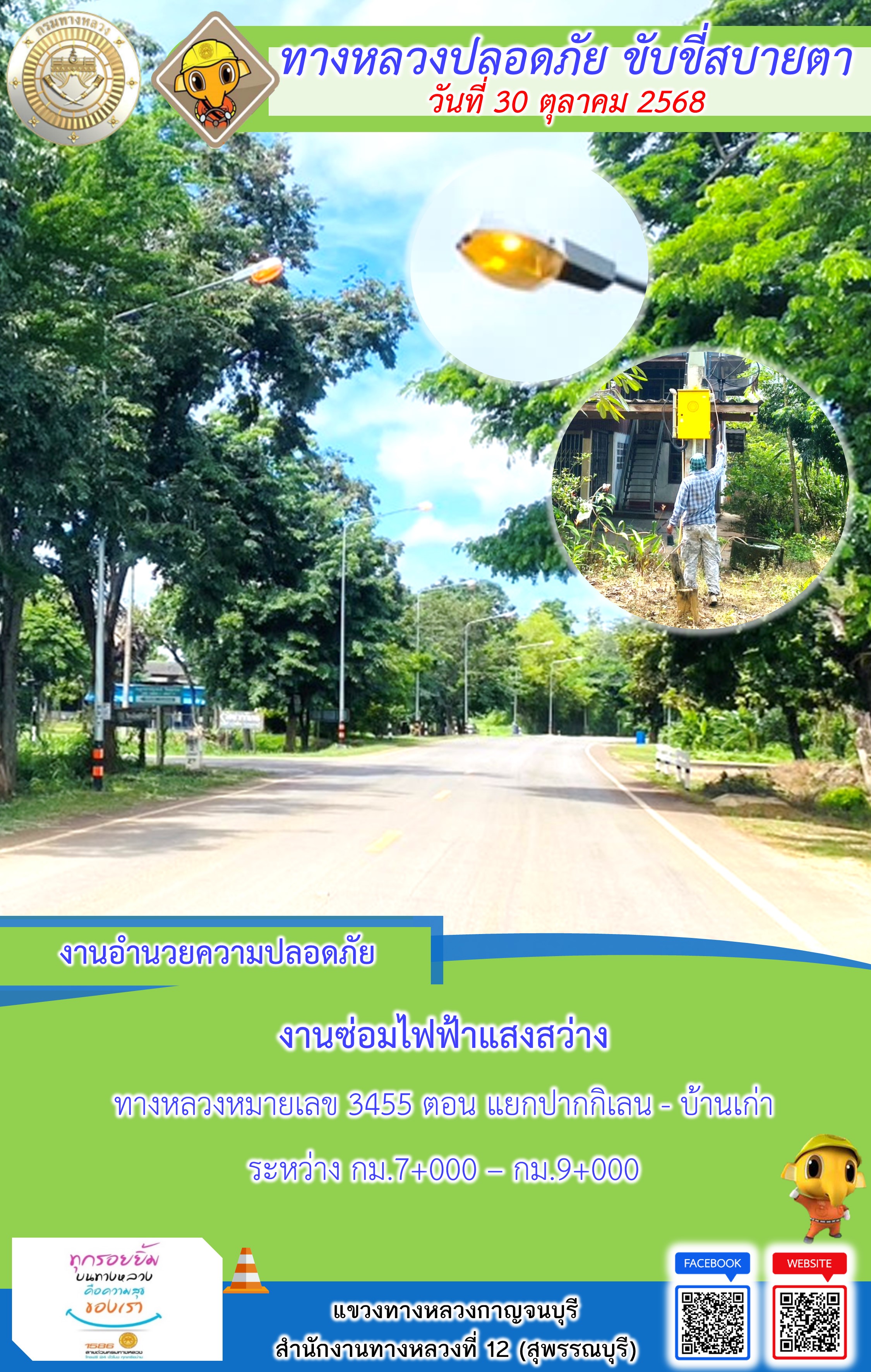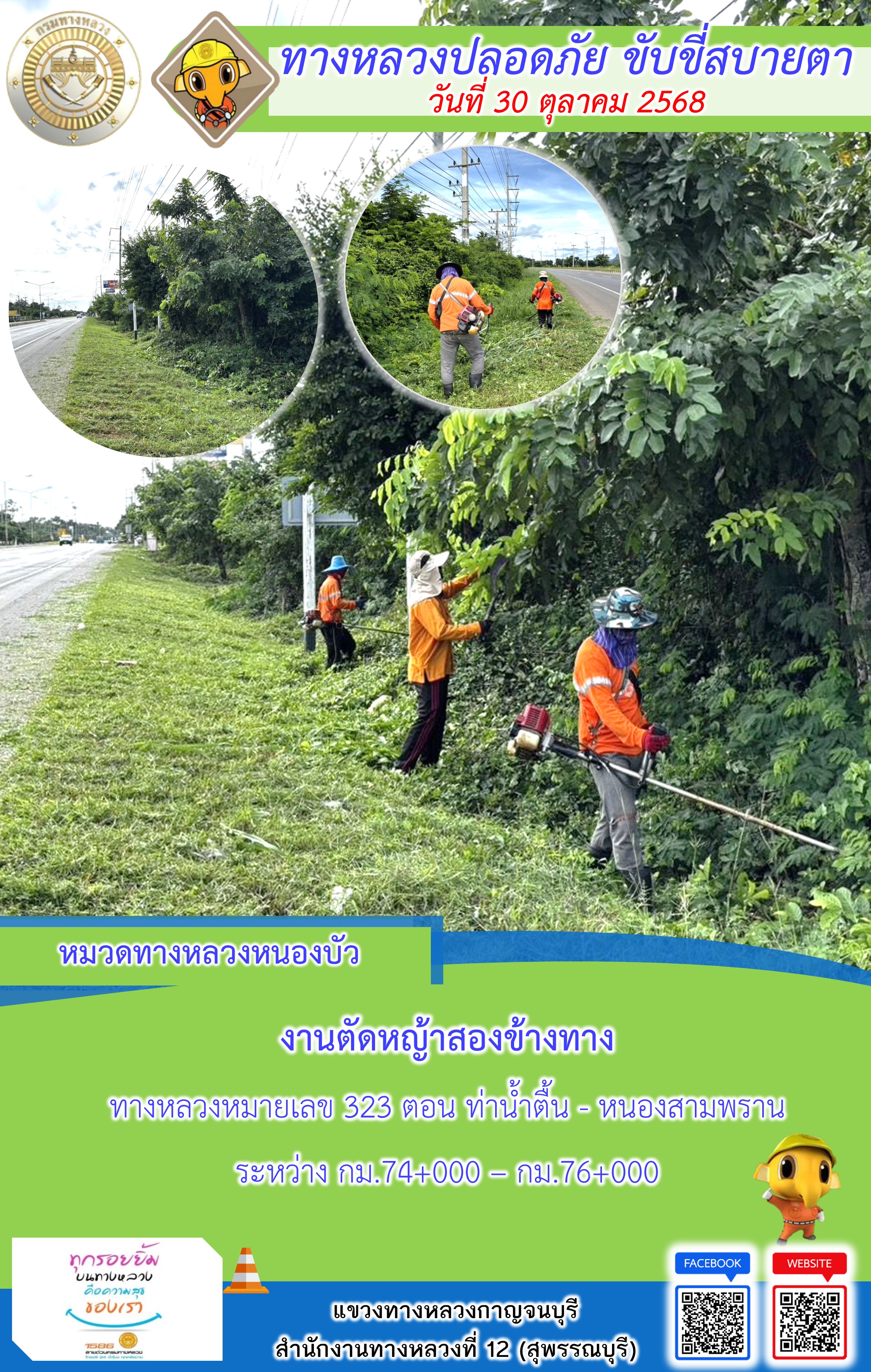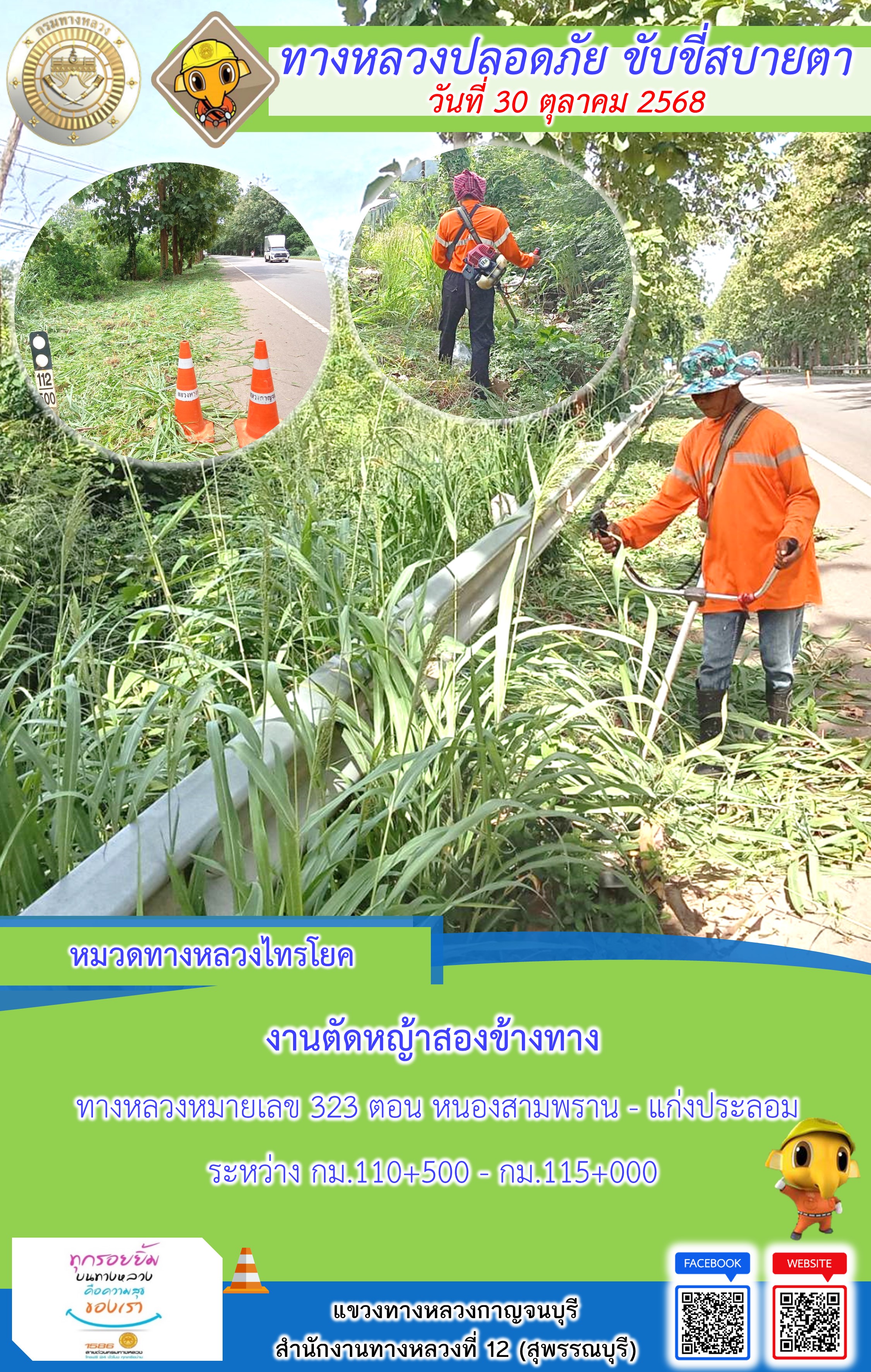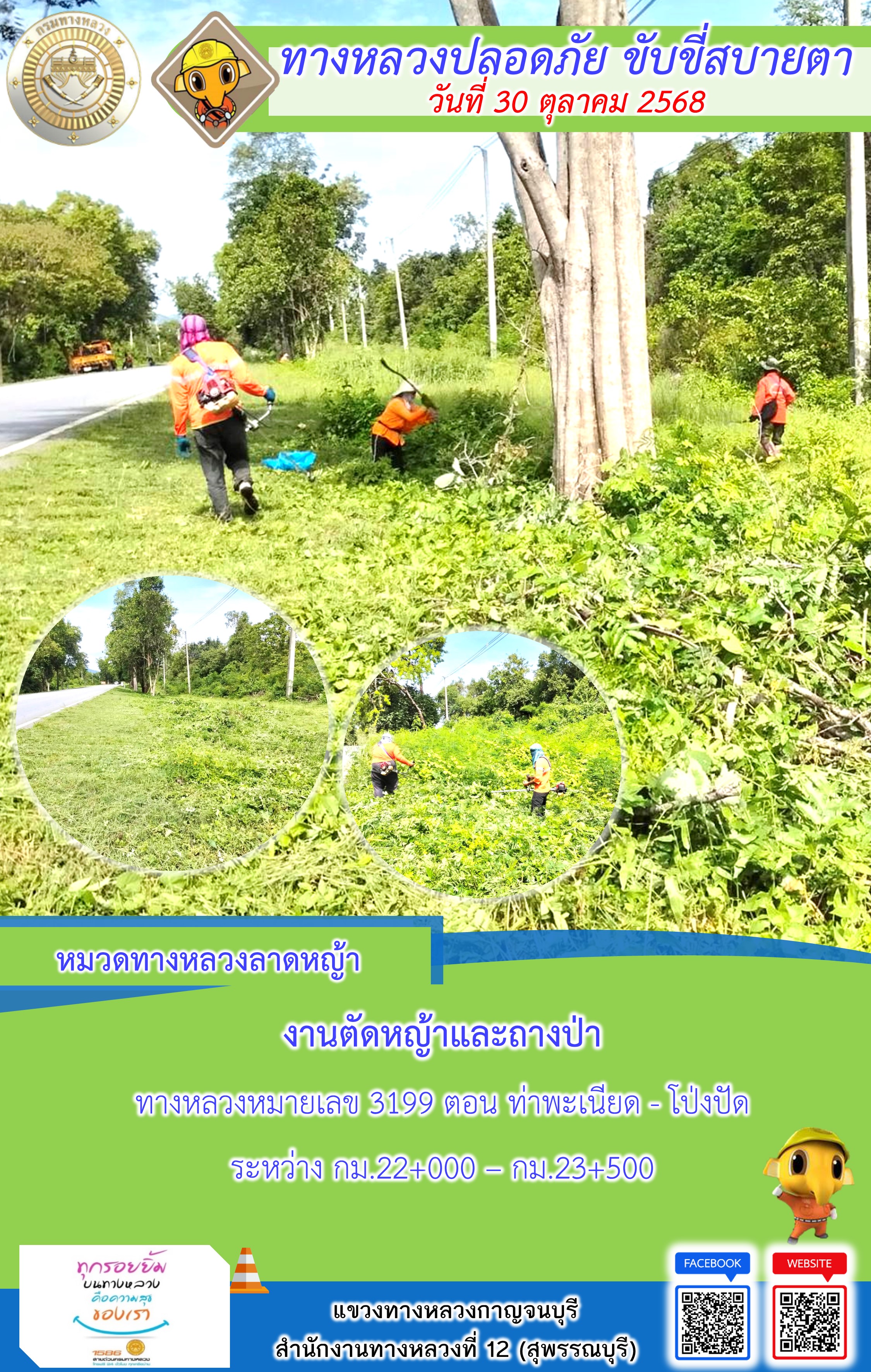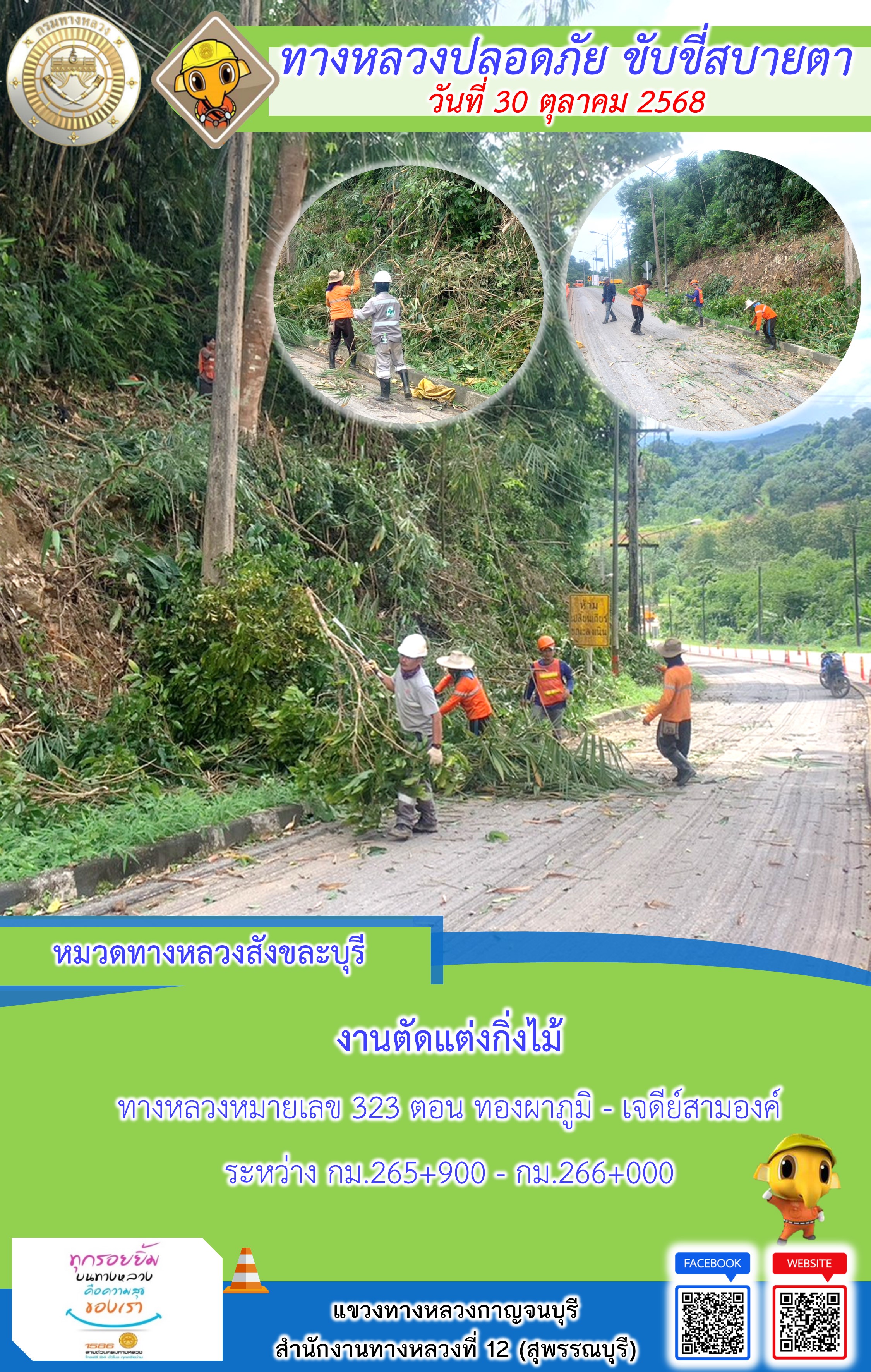 ข้อมูลภาพกิจกรรม : แขวงทางหลวงกาญจนบุรี โดยหมวดทางหลวงในสังกัด และงานอำนวยความปลอดภัยปฏิบัติงาน ประจำวันที่ 30 ต.ต. 68