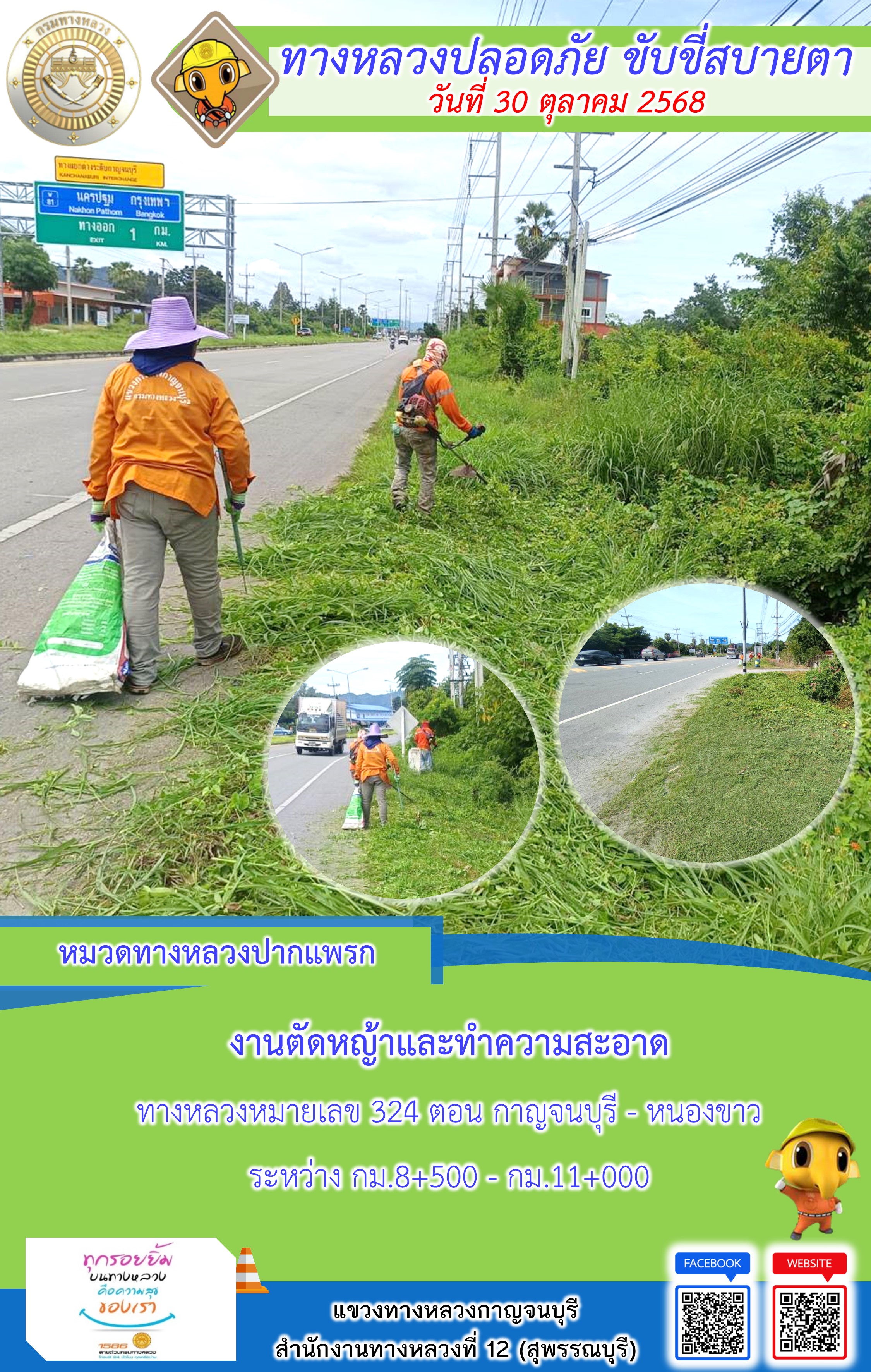 แขวงทางหลวงกาญจนบุรี โดยหมวดทางหลวงในสังกัด และงานอำนวยความปลอดภัยปฏิบัติงาน ประจำวันที่ 30 ต.ต. 68
