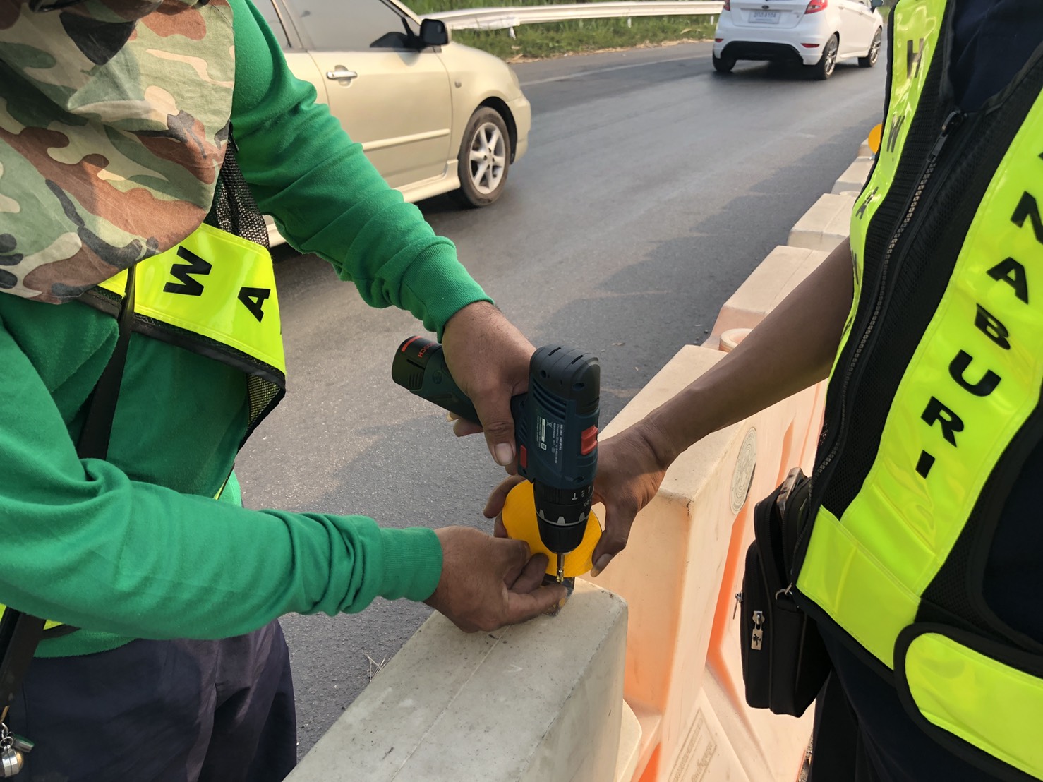 3.ติดตั้งเป้าสะท้อนแสงสีเหลืองสองหน้าบนแบริเออร์พลาสติก ทล.3548 กม.6+625 CL. (โค้งท่าสาร)