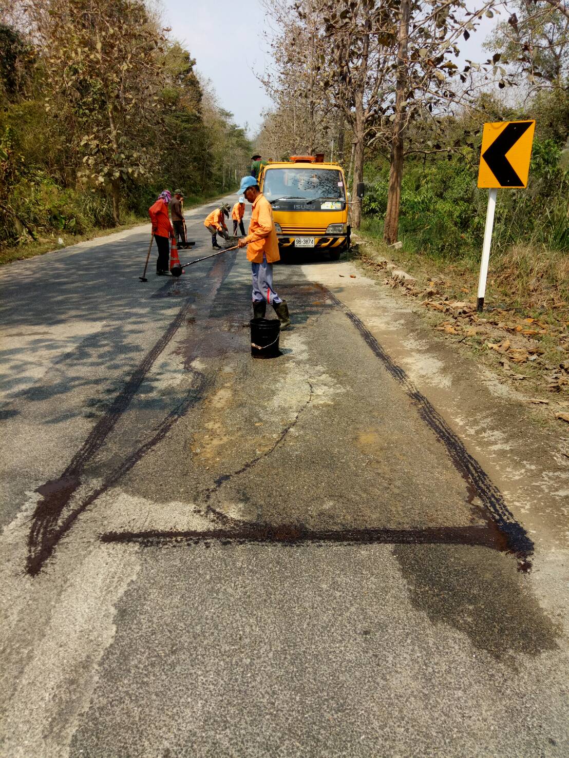 แขวงทางหลวงกาญจนบุรีโดยหมวดทางหลวงทองผาภูมิ ดำเนินการในทางหลวงหมายเลข 323,3272