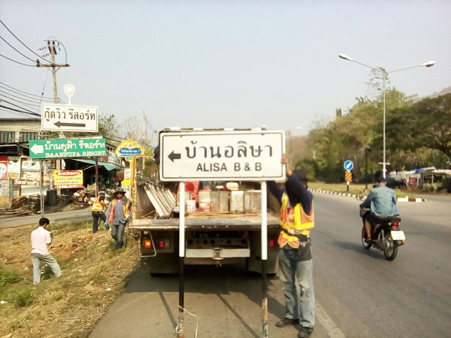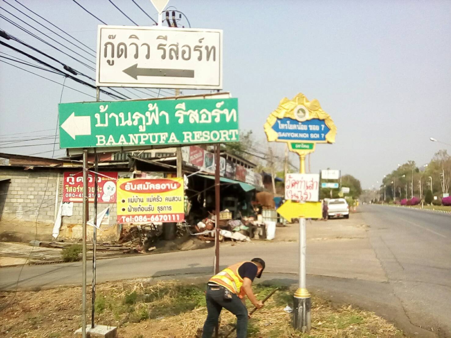 ¤ รื้อถอนป้ายที่ไม่ได้รับอนุญาต ทล.323 ตอน แยกปากกิเลน - น้ำตกไทรโยคใหญ่ กม.119+000 - กม.120+400 ด้านซ้ายและขวาทาง