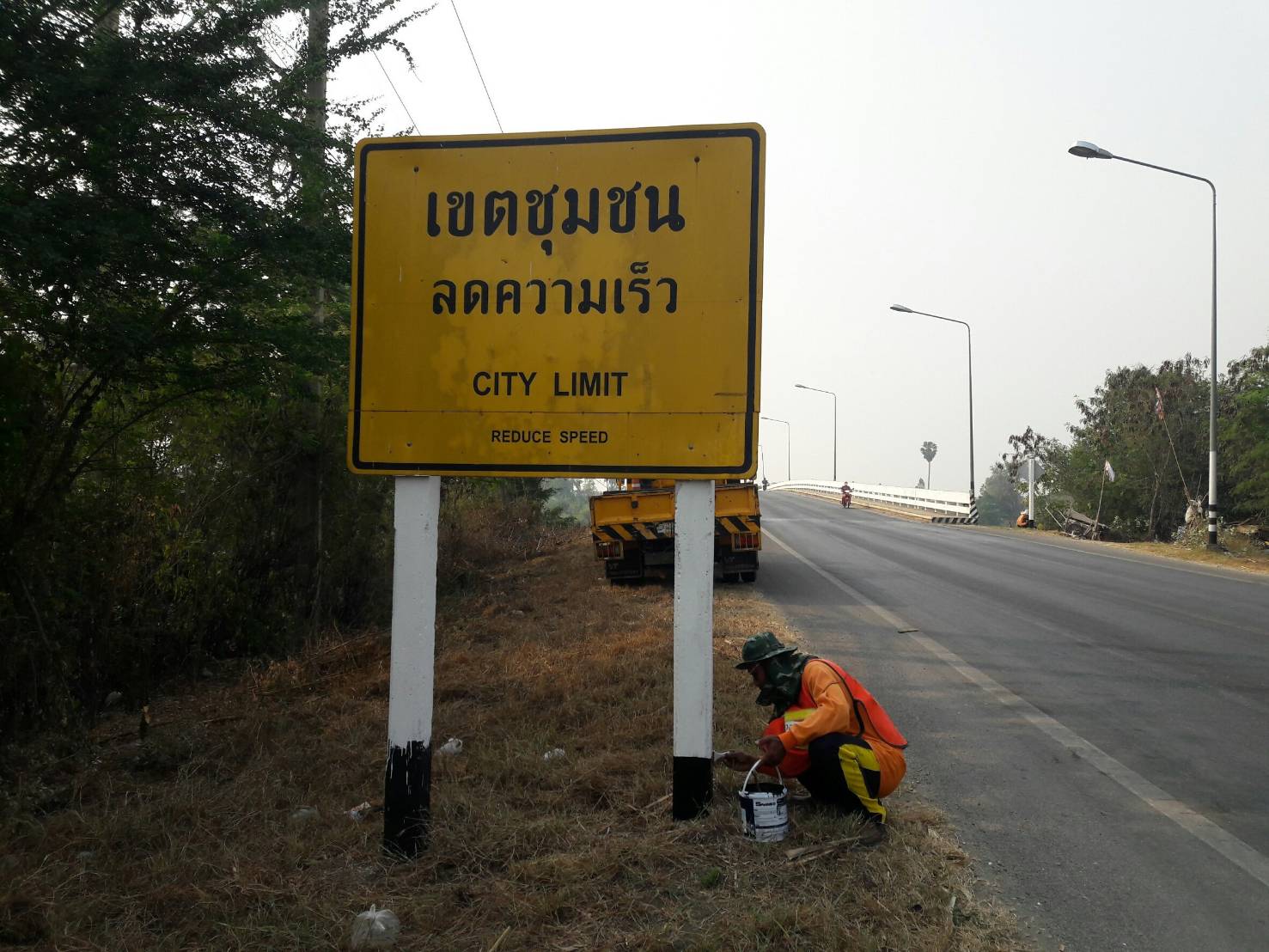 แขวงทางหลวงกาญจนบุรีโดยหมวดทางหลวงท่าม่วง ดำเนินการในทางหลวงหมายเลข 3492