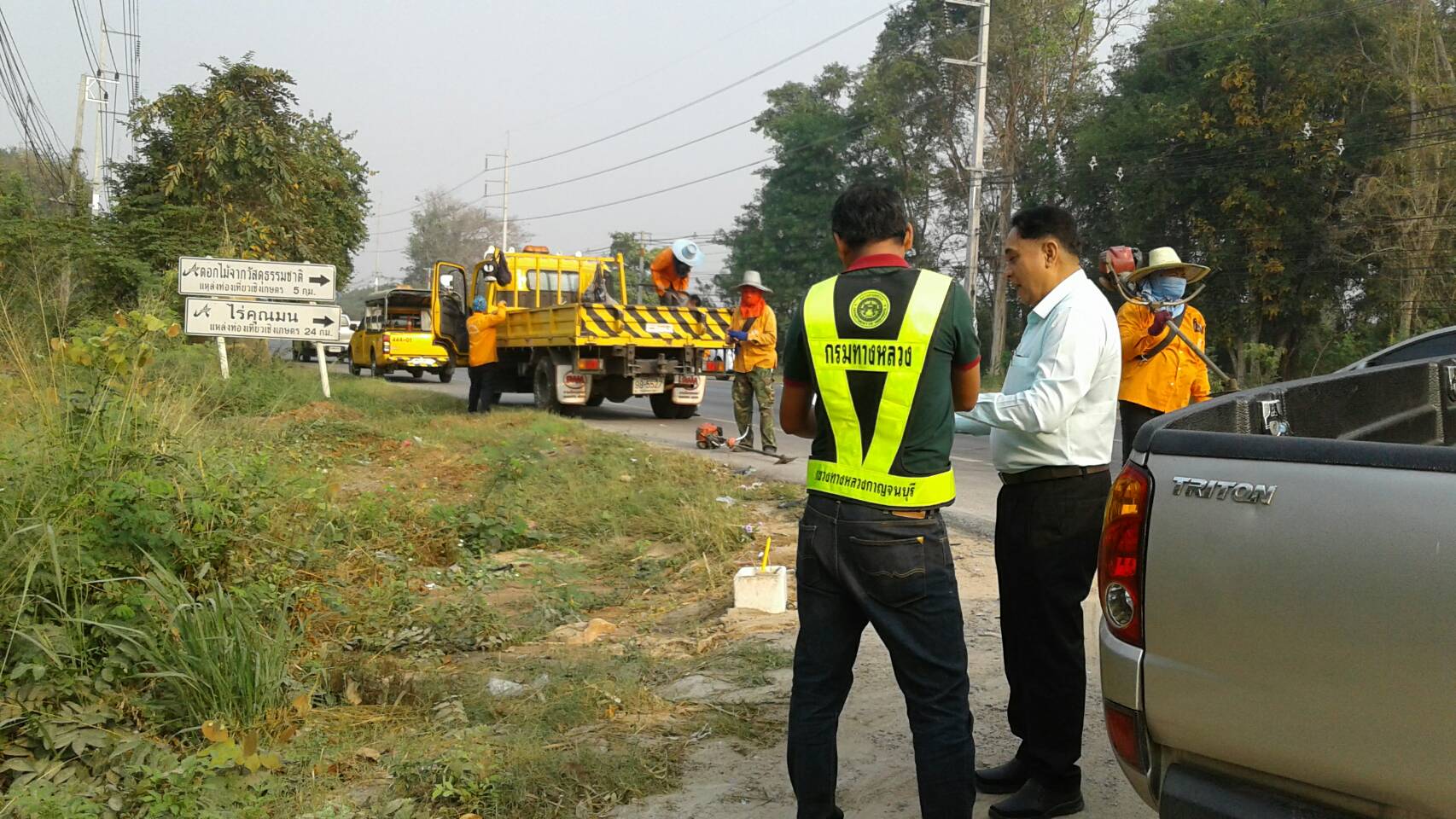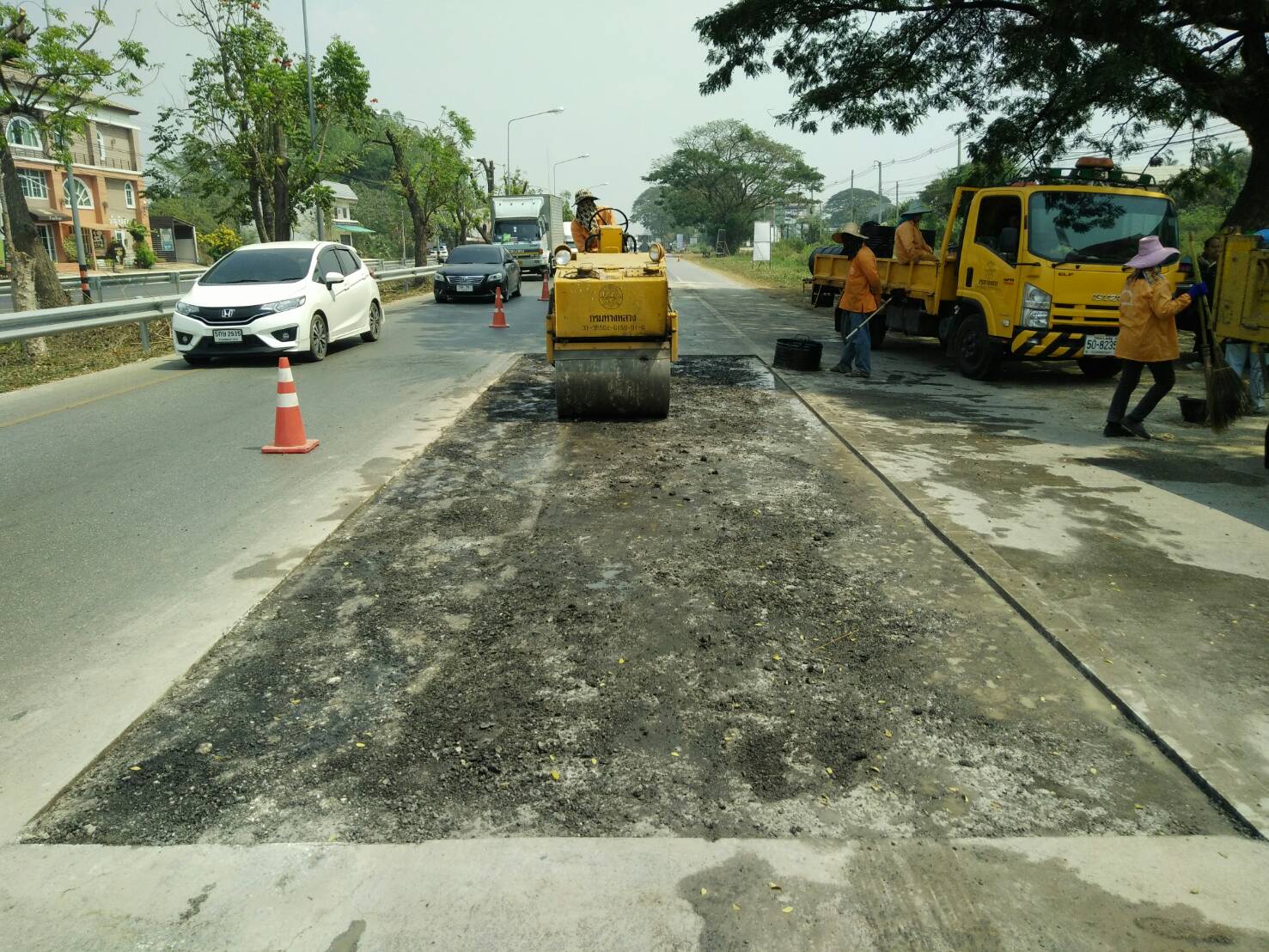 แขวงทางหลวงกาญจนบุรีโดยหมวดทางหลวงปากแพรก ดำเนินการในทางหลวงหมายเลข 3230202,31990100
