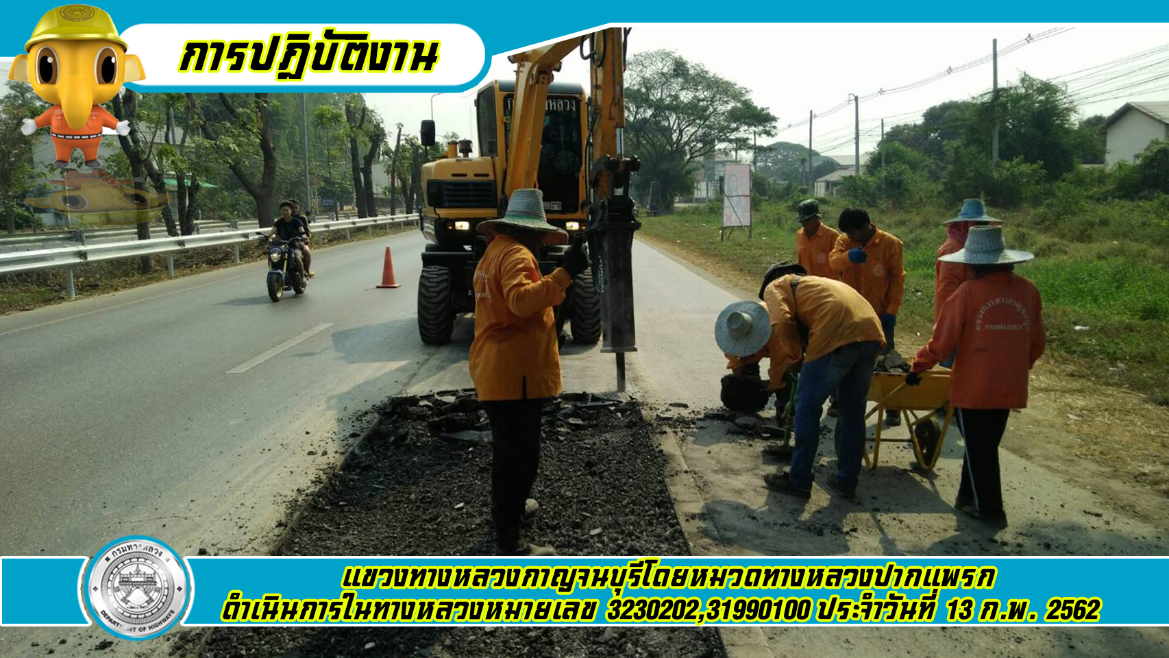 แขวงทางหลวงกาญจนบุรีโดยหมวดทางหลวงปากแพรก ดำเนินการในทางหลวงหมายเลข 3230202,31990100 13/02/62