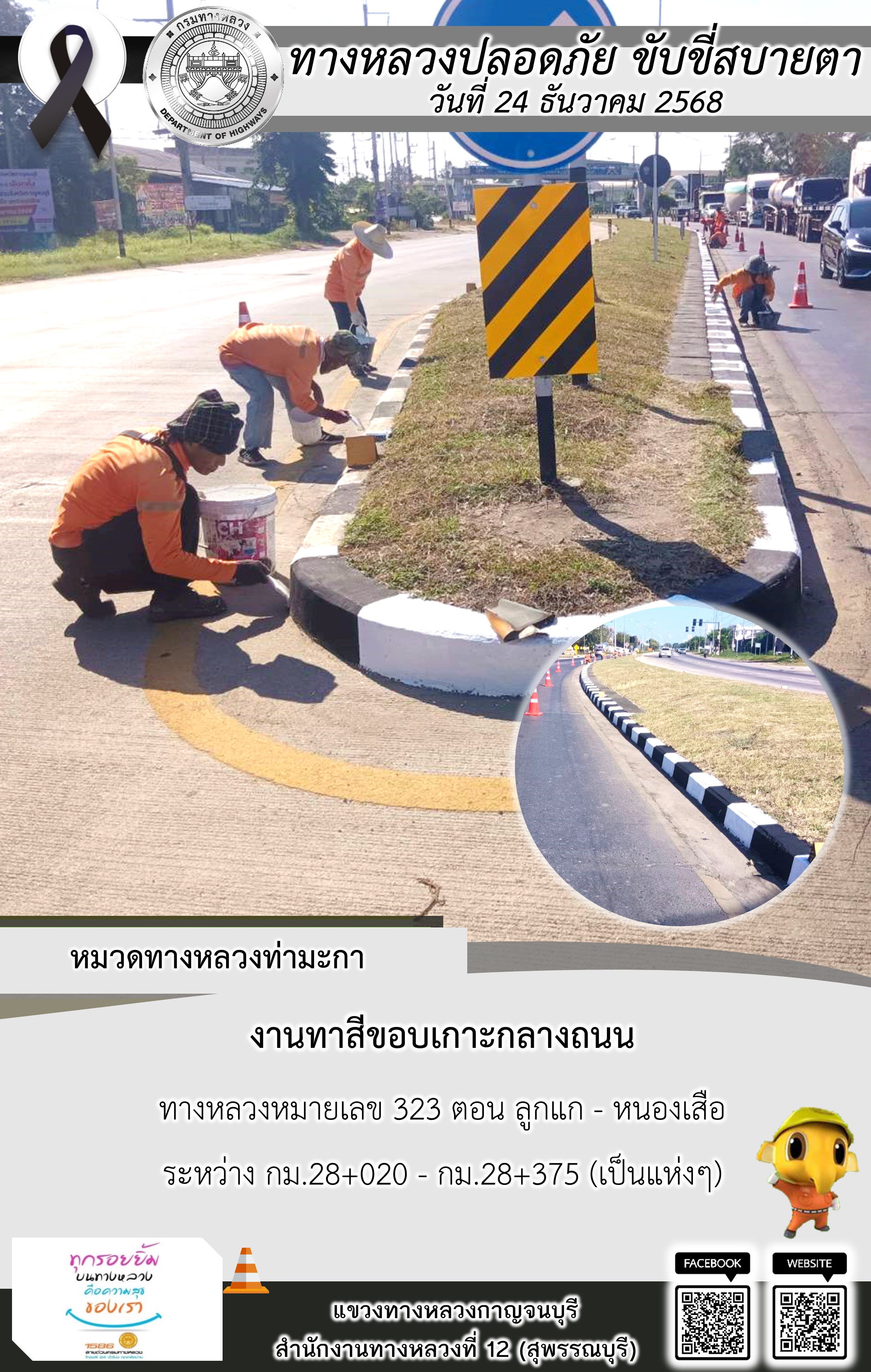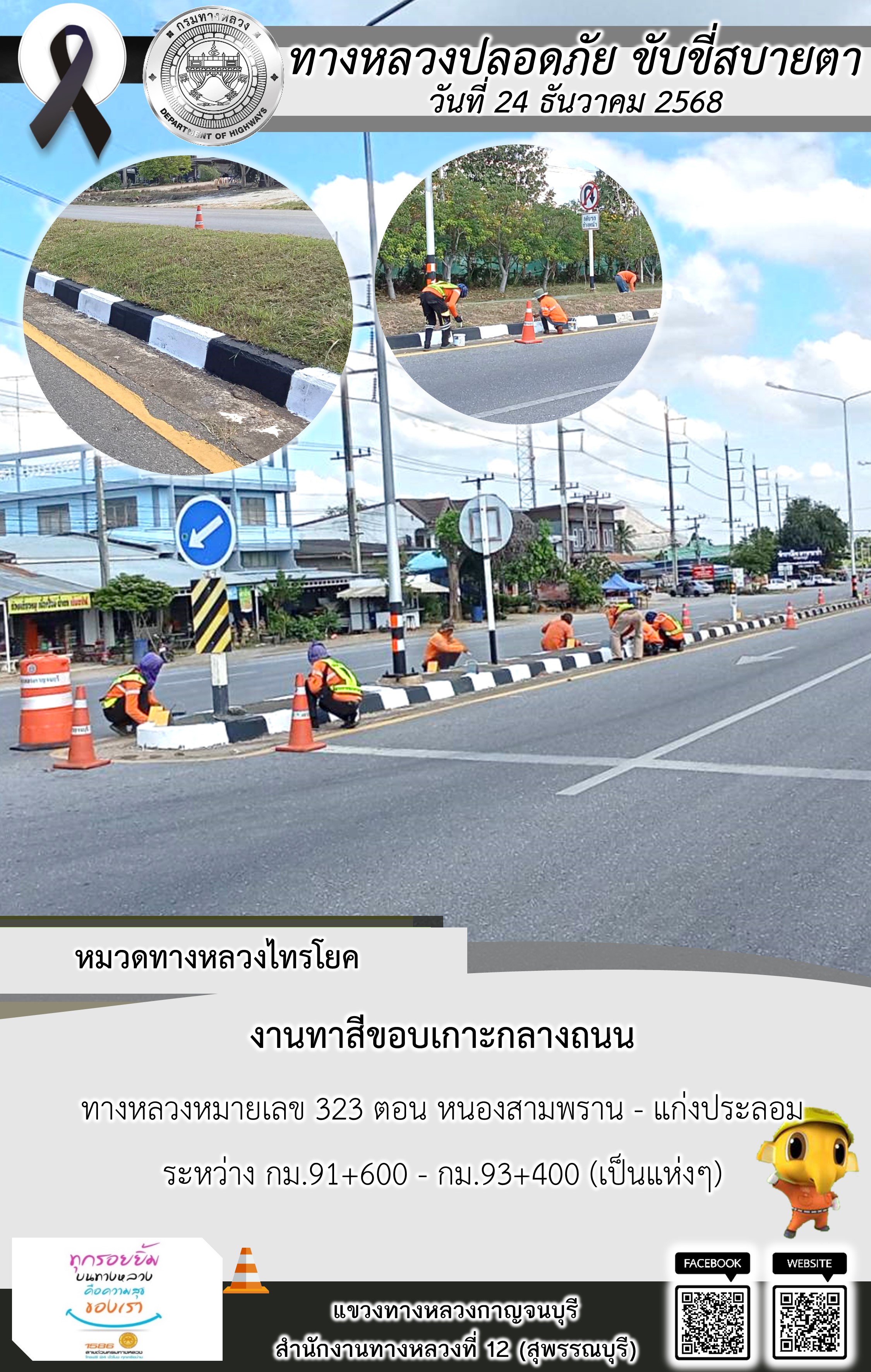 ข้อมูลภาพกิจกรรม : แขวงทางหลวงกาญจนบุรี โดยหมวดทางหลวงในสังกัด และงานอำนวยความปลอดภัยปฏิบัติงาน ประจำวันที่ 24 ธ.ค. 68