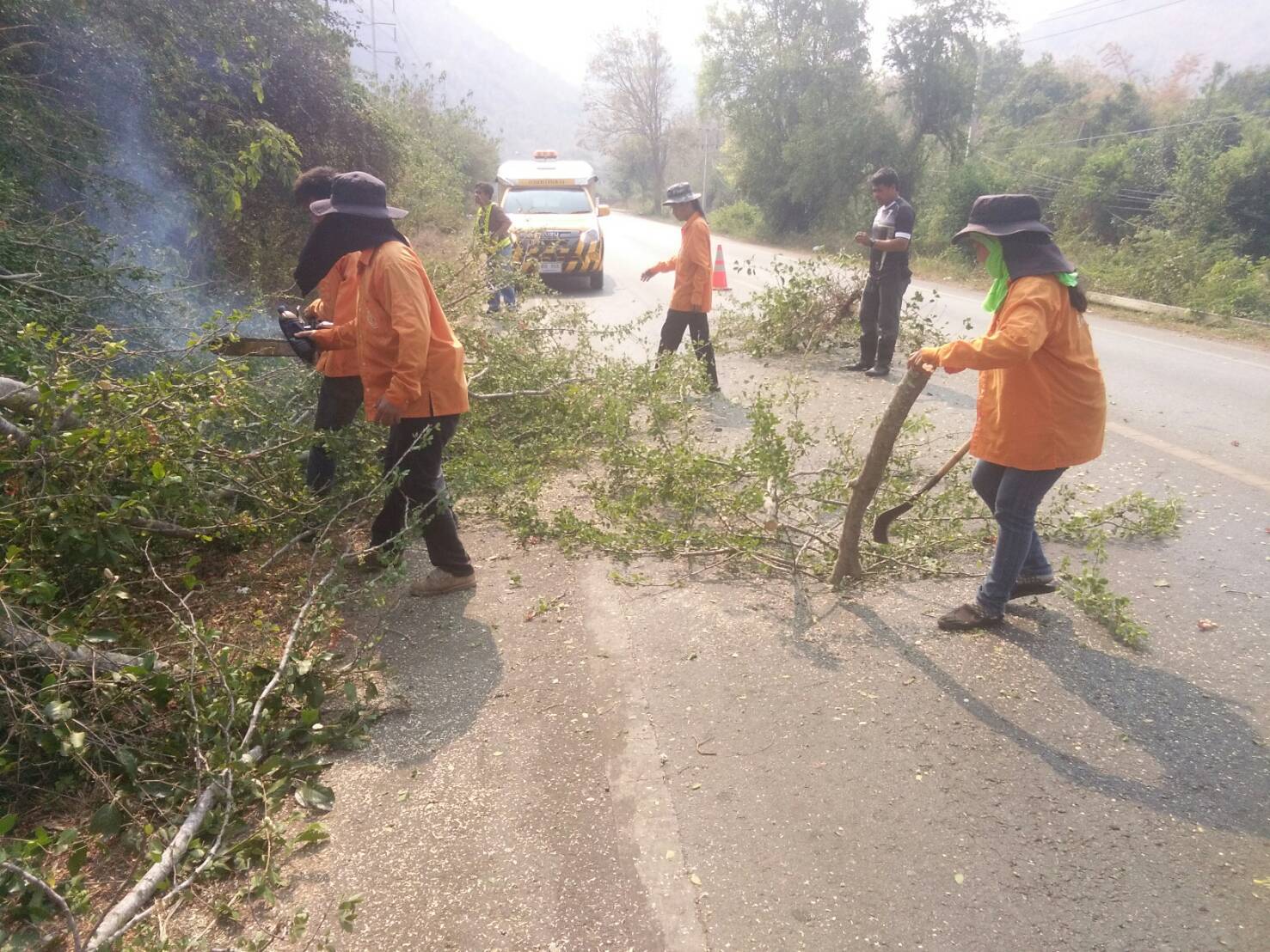 1.งานตัดแต่งริดรอนกิ่งไม้ ที่โน้มเอียงเข้าหาผิวจราจร ตัดต้นไม้ที่ยืนต้นตาย ทล.3582 ตอน วังปลาหมู-วังลาน