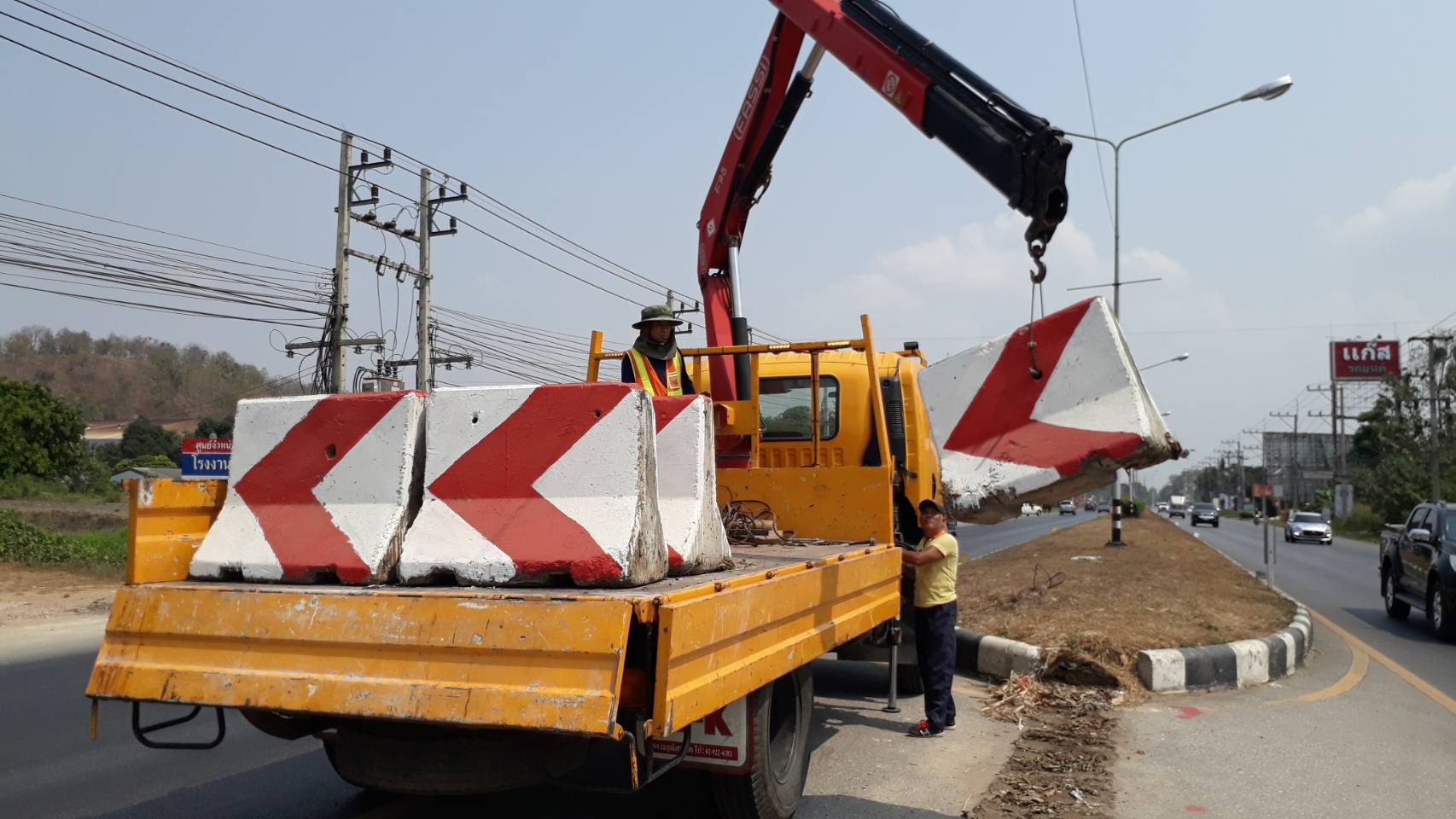 แขวงทางหลวงกาญจนบุรีโดยงานอำนวยความปลอดภัย ดำเนินการในทางหลวงหมายเลข 323