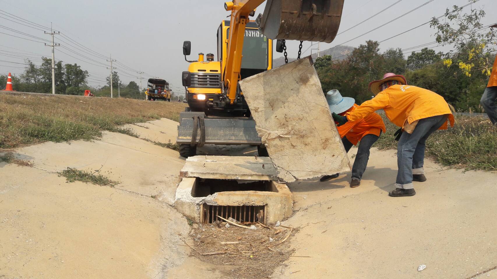 2. ขุดลอกร่องระบายน้ำข้างทางในทางหลวงหมายเลข 367 ตอนทางเลี่ยงเมืองกาญจนบุรี บริเวณ กม.4+900 (บริเวณแยกวังสารภี)