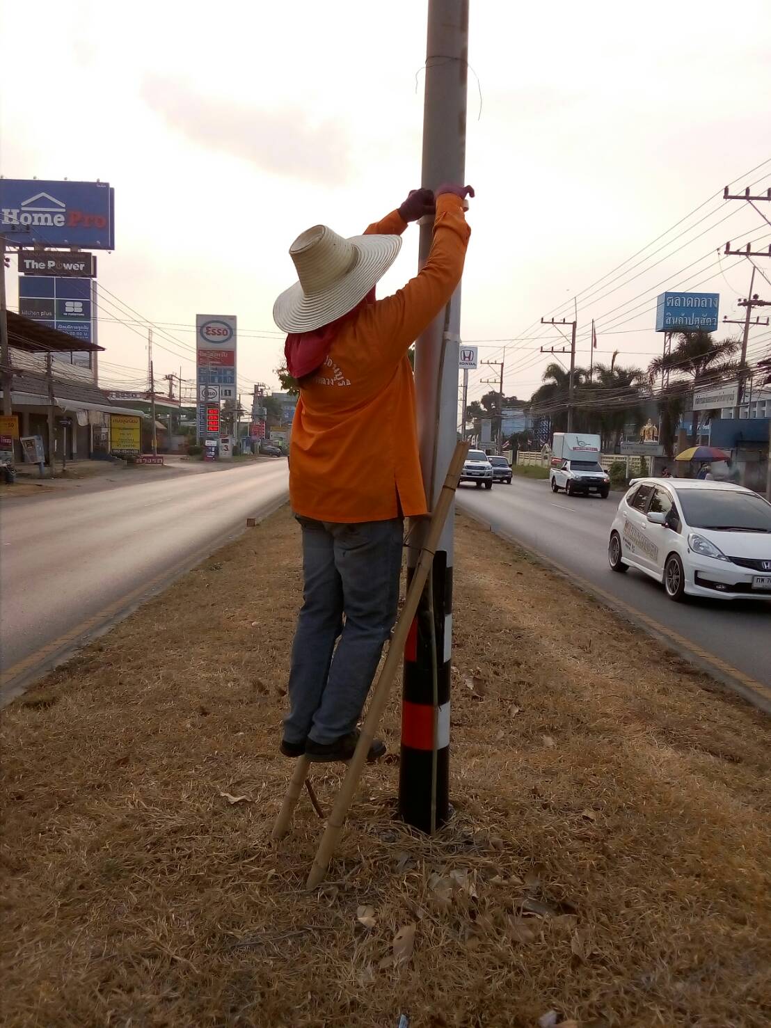 1. ทาสีเสาไฟฟ้าแสงสว่าง ทล.3230202 เริ่ม กม.48+200-กม.54+200 (เป็นแห่งๆ)
