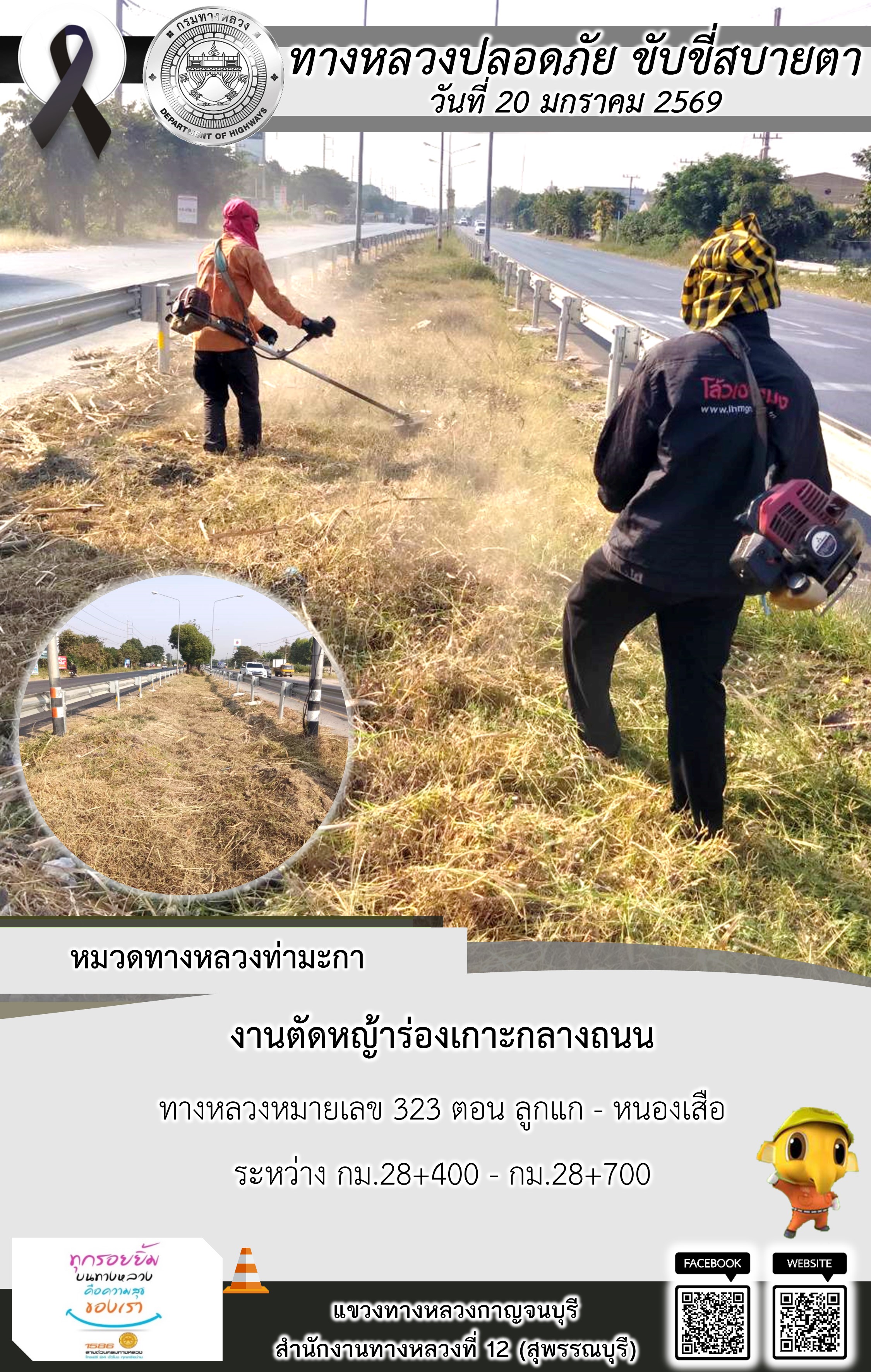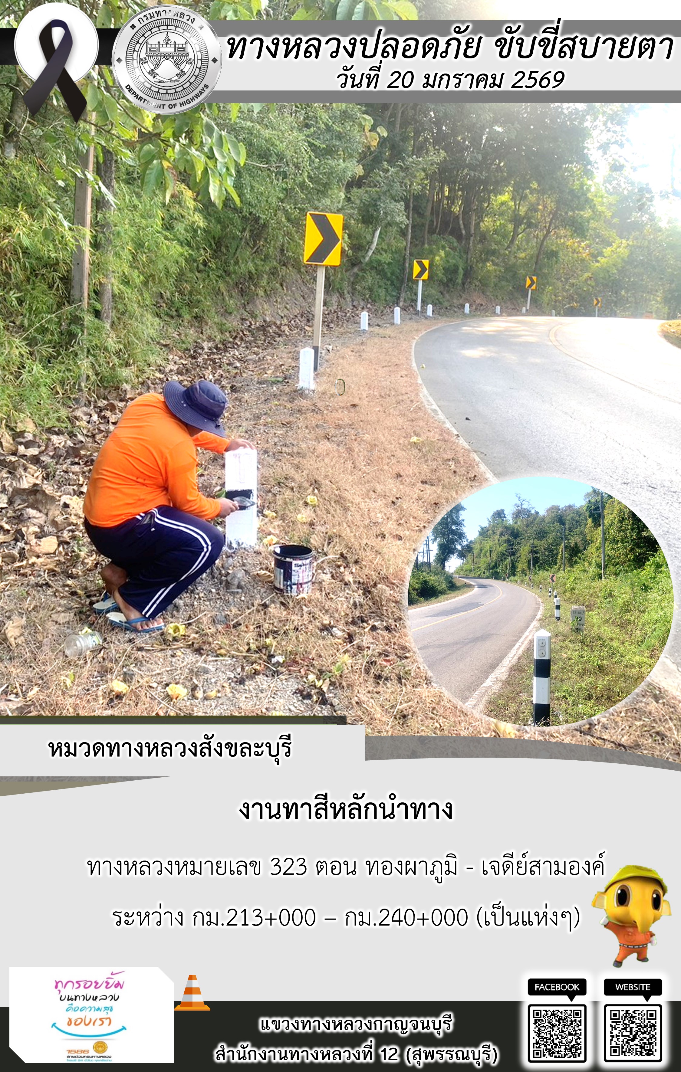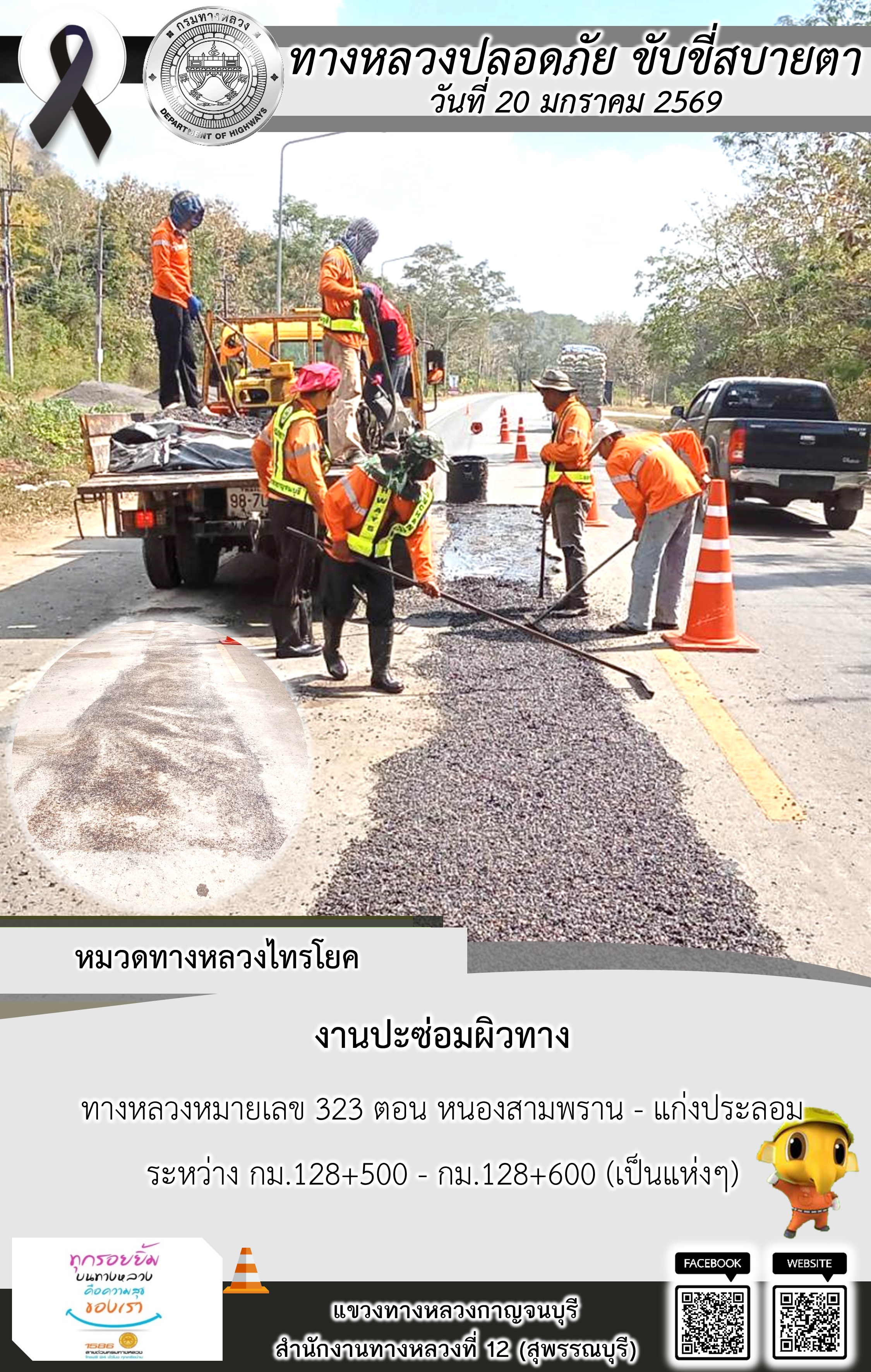 ข้อมูลภาพกิจกรรม : แขวงทางหลวงกาญจนบุรี โดยหมวดทางหลวงในสังกัด และงานอำนวยความปลอดภัยปฏิบัติงาน ประจำวันที่ 20 ม.ค. 69
