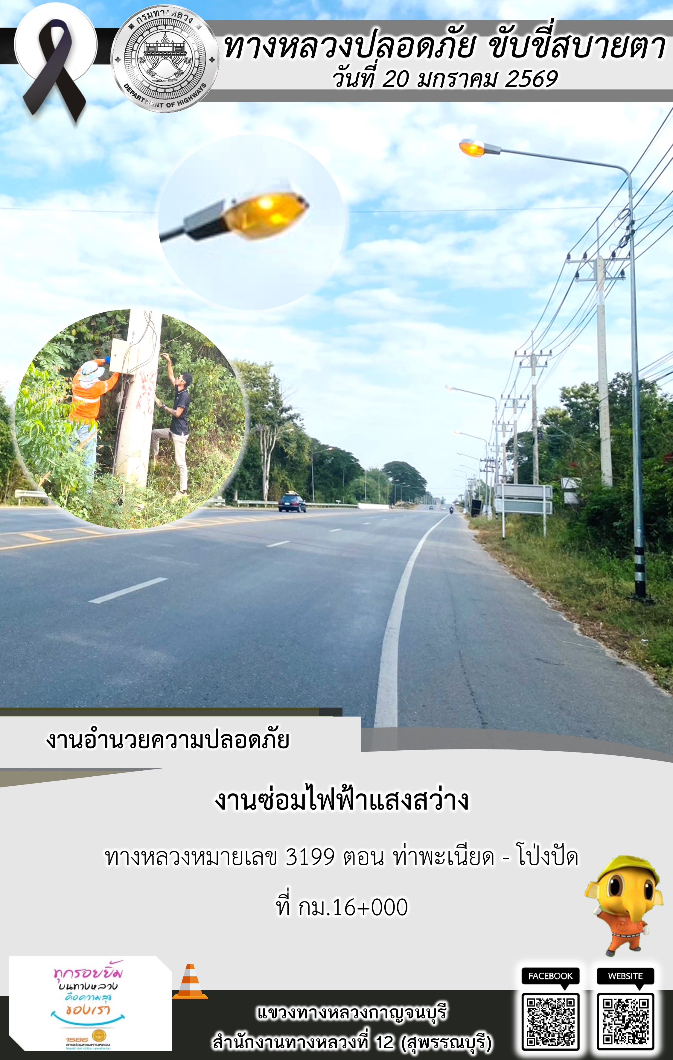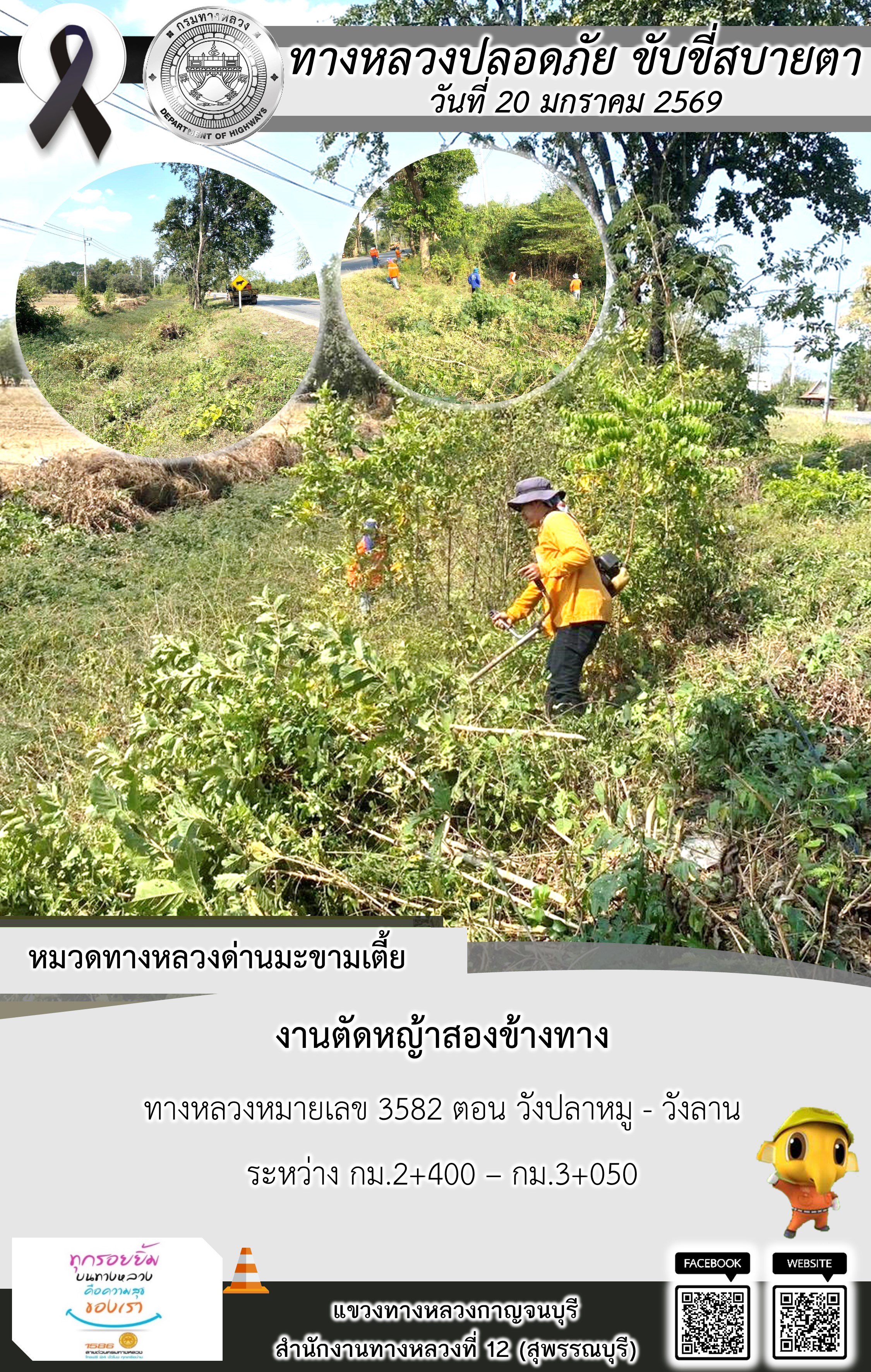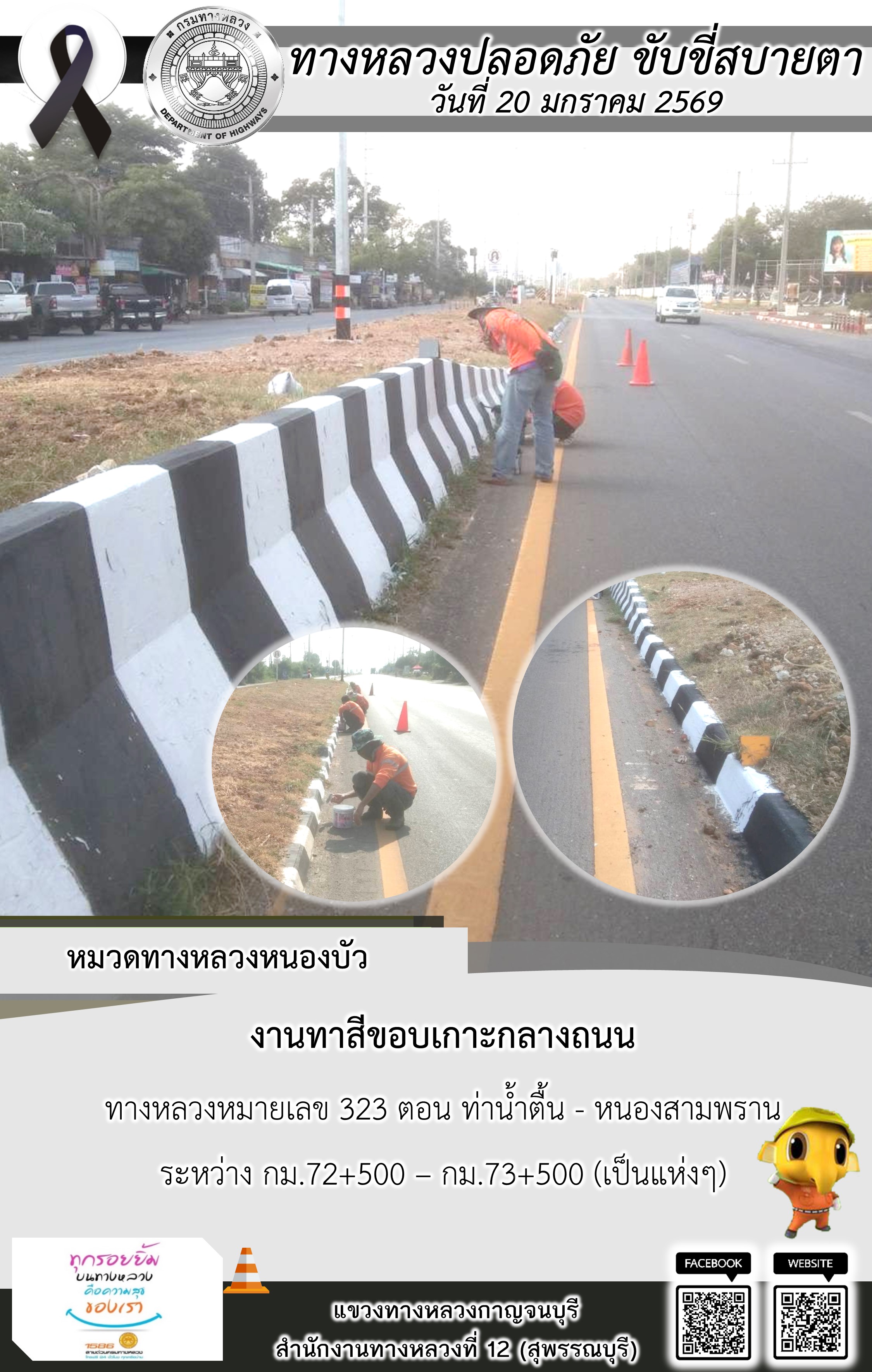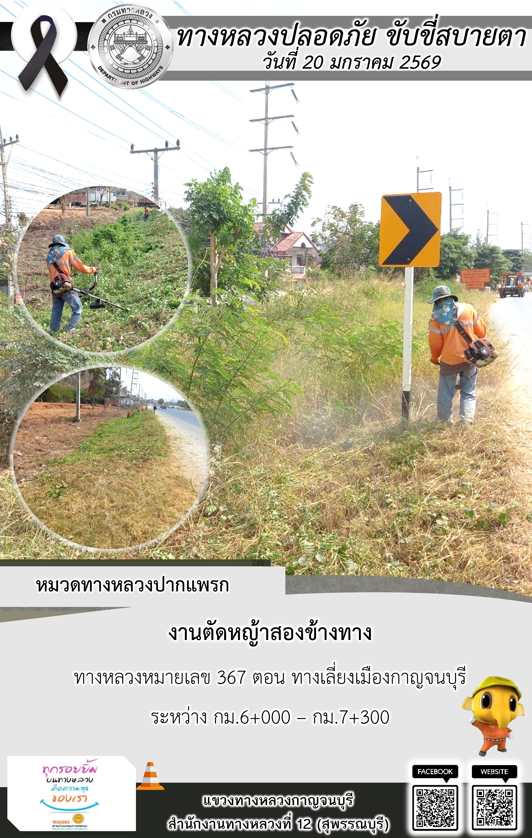 ข้อมูลภาพกิจกรรม : แขวงทางหลวงกาญจนบุรี โดยหมวดทางหลวงในสังกัด และงานอำนวยความปลอดภัยปฏิบัติงาน ประจำวันที่ 20 ม.ค. 69