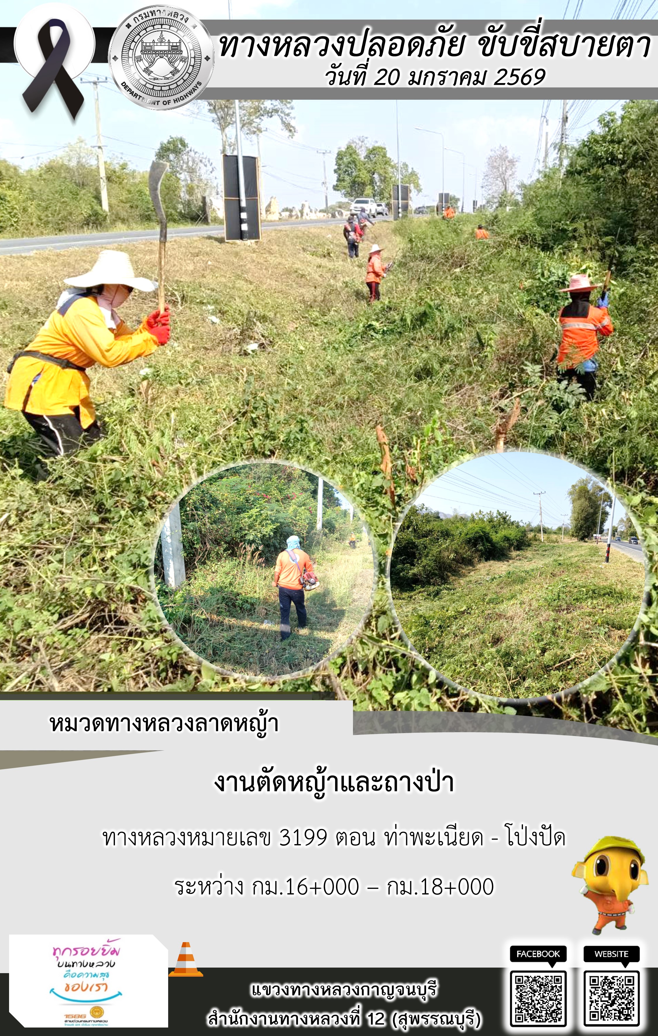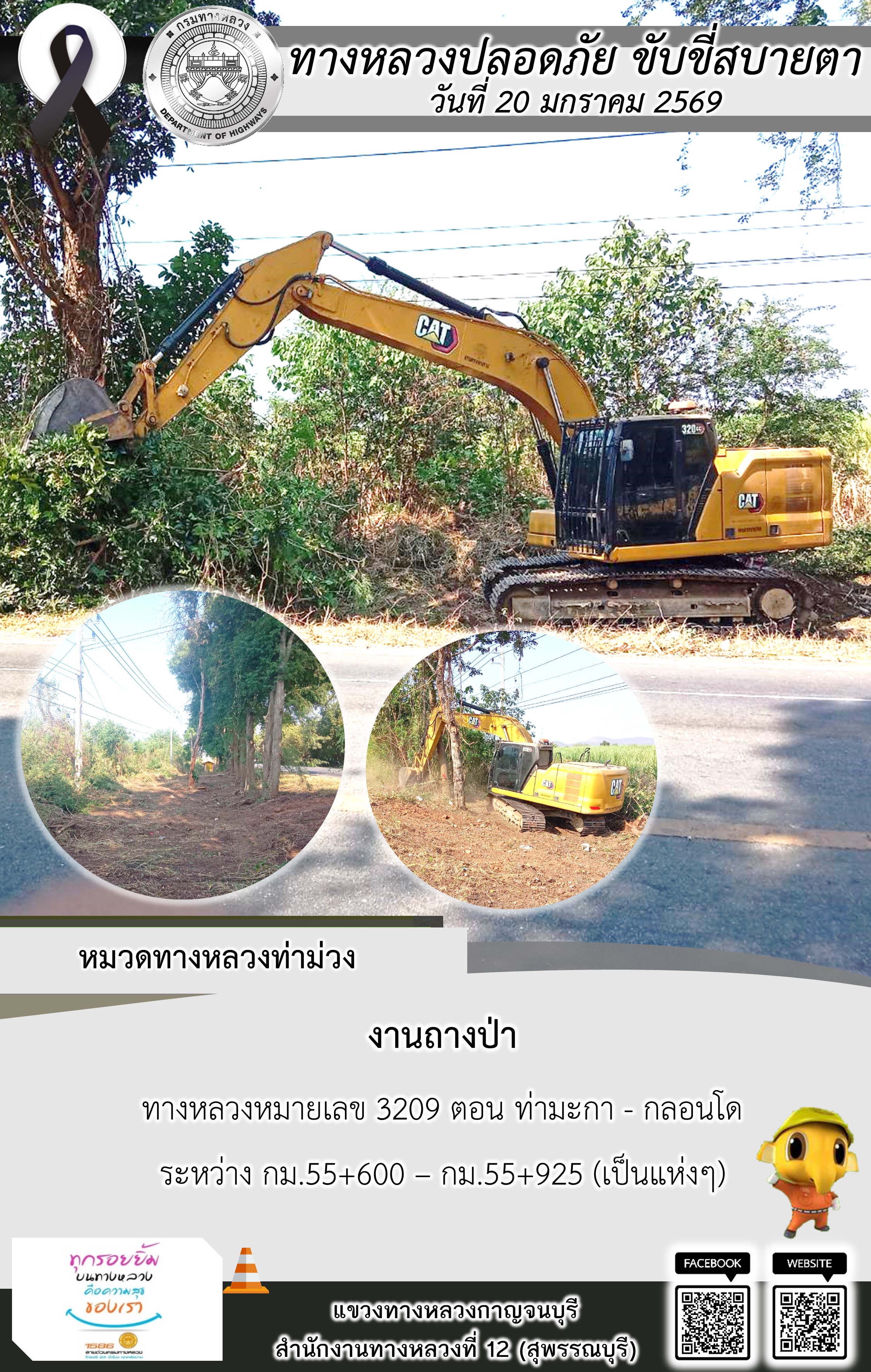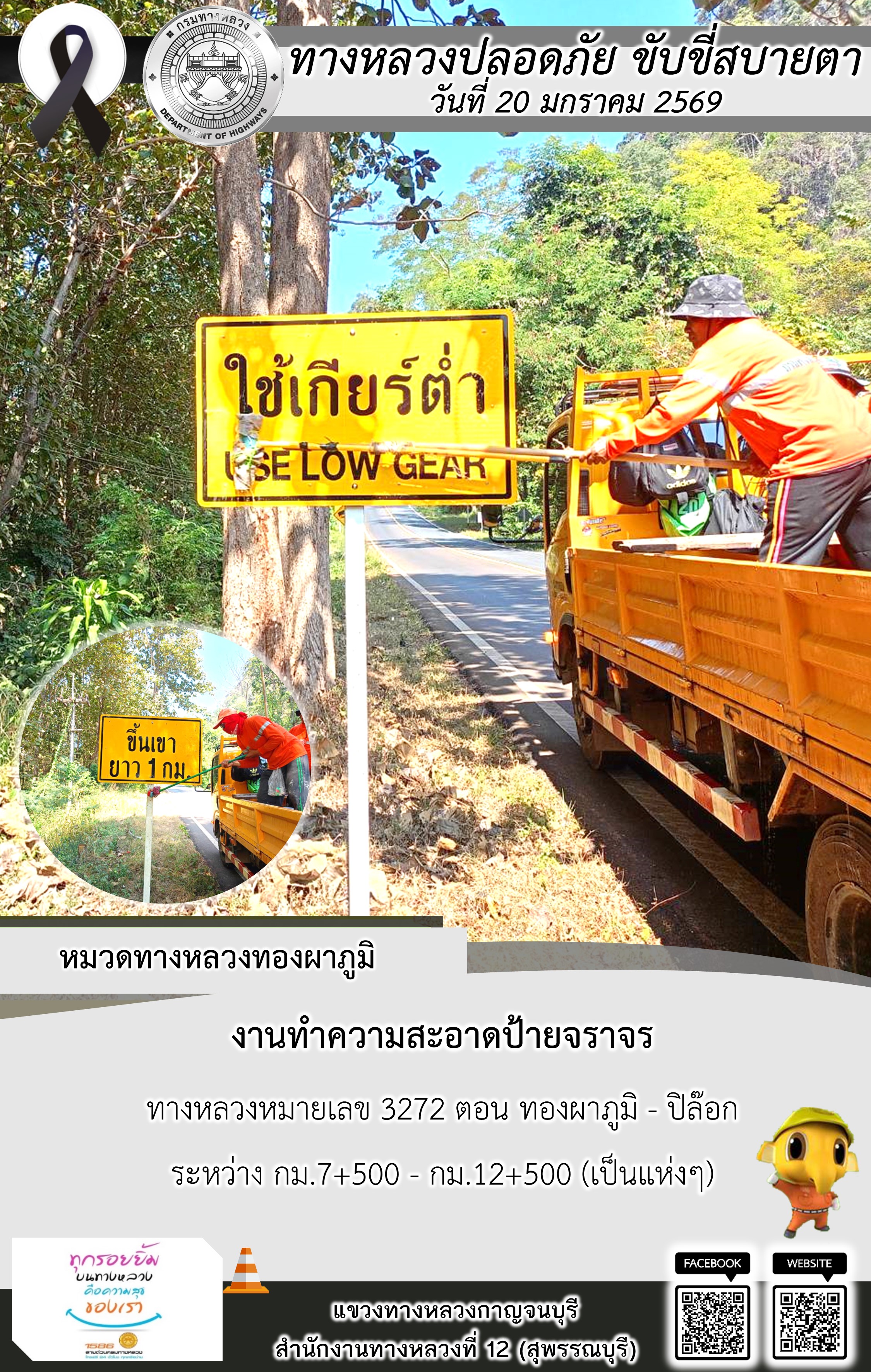 แขวงทางหลวงกาญจนบุรี โดยหมวดทางหลวงในสังกัด และงานอำนวยความปลอดภัยปฏิบัติงาน ประจำวันที่ 20 ม.ค. 69