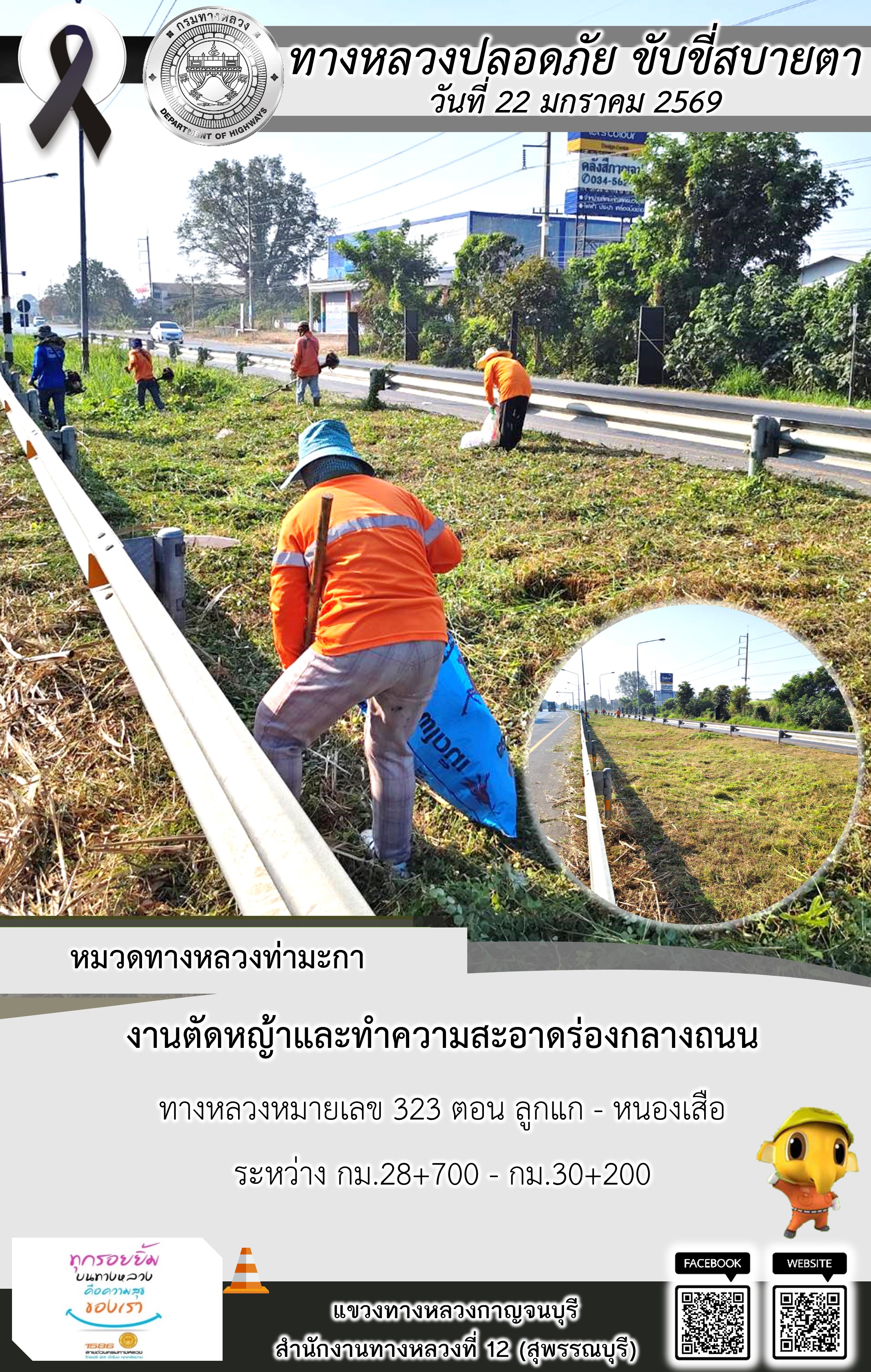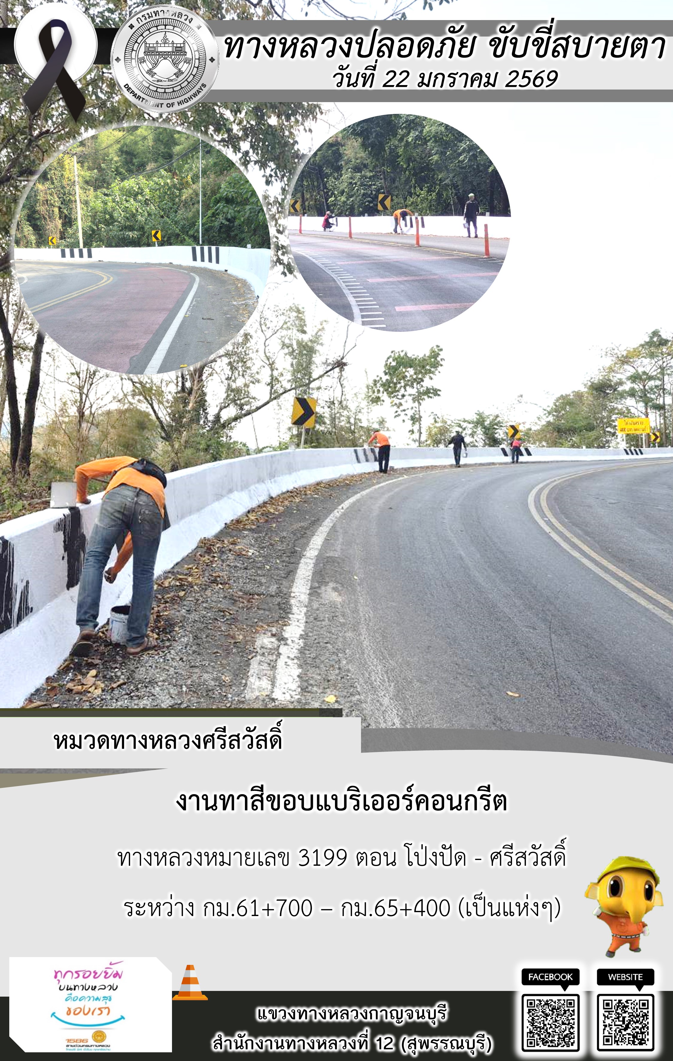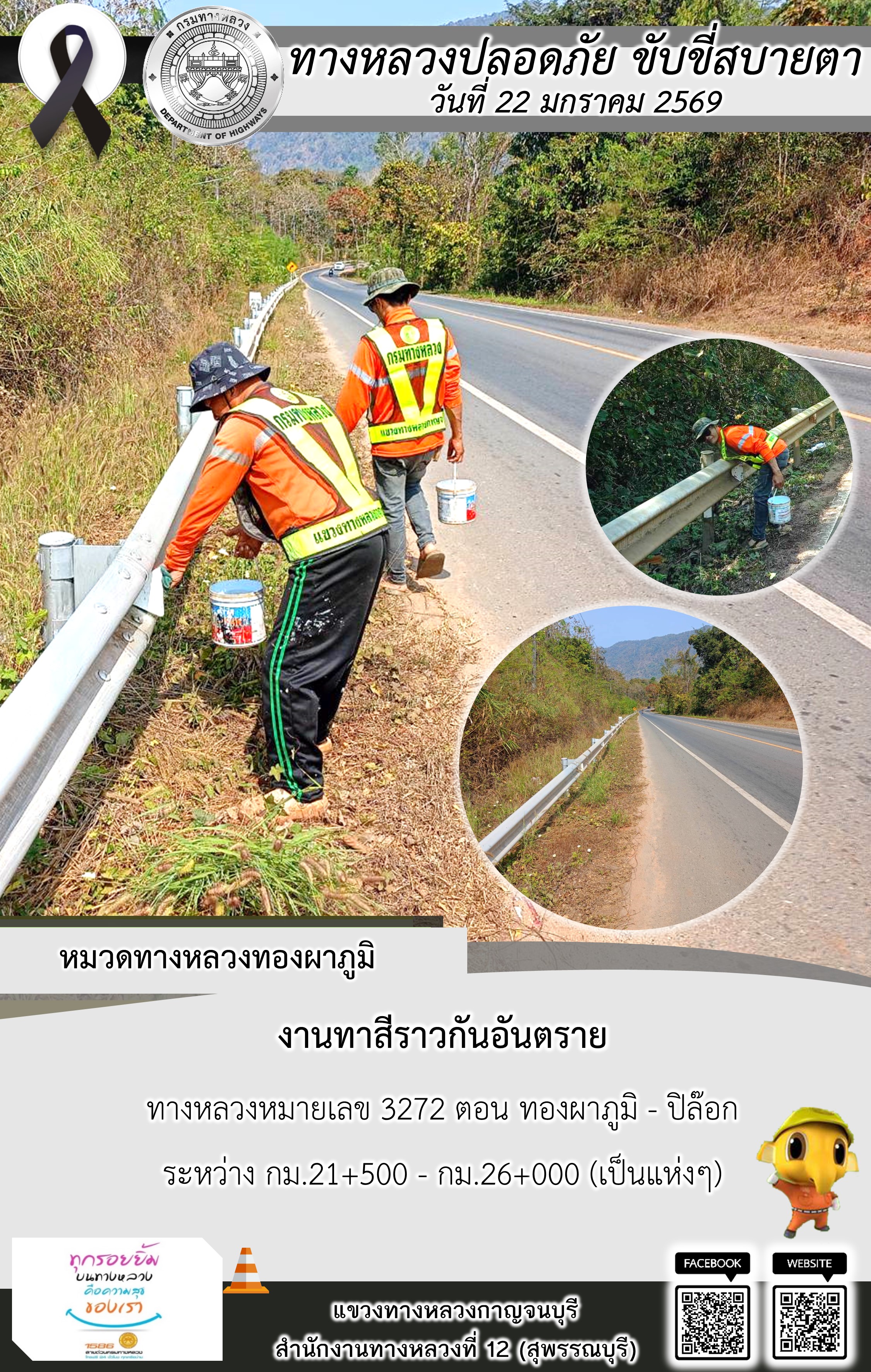 แขวงทางหลวงกาญจนบุรี โดยหมวดทางหลวงในสังกัด และงานอำนวยความปลอดภัยปฏิบัติงาน ประจำวันที่ 22 ม.ค. 69