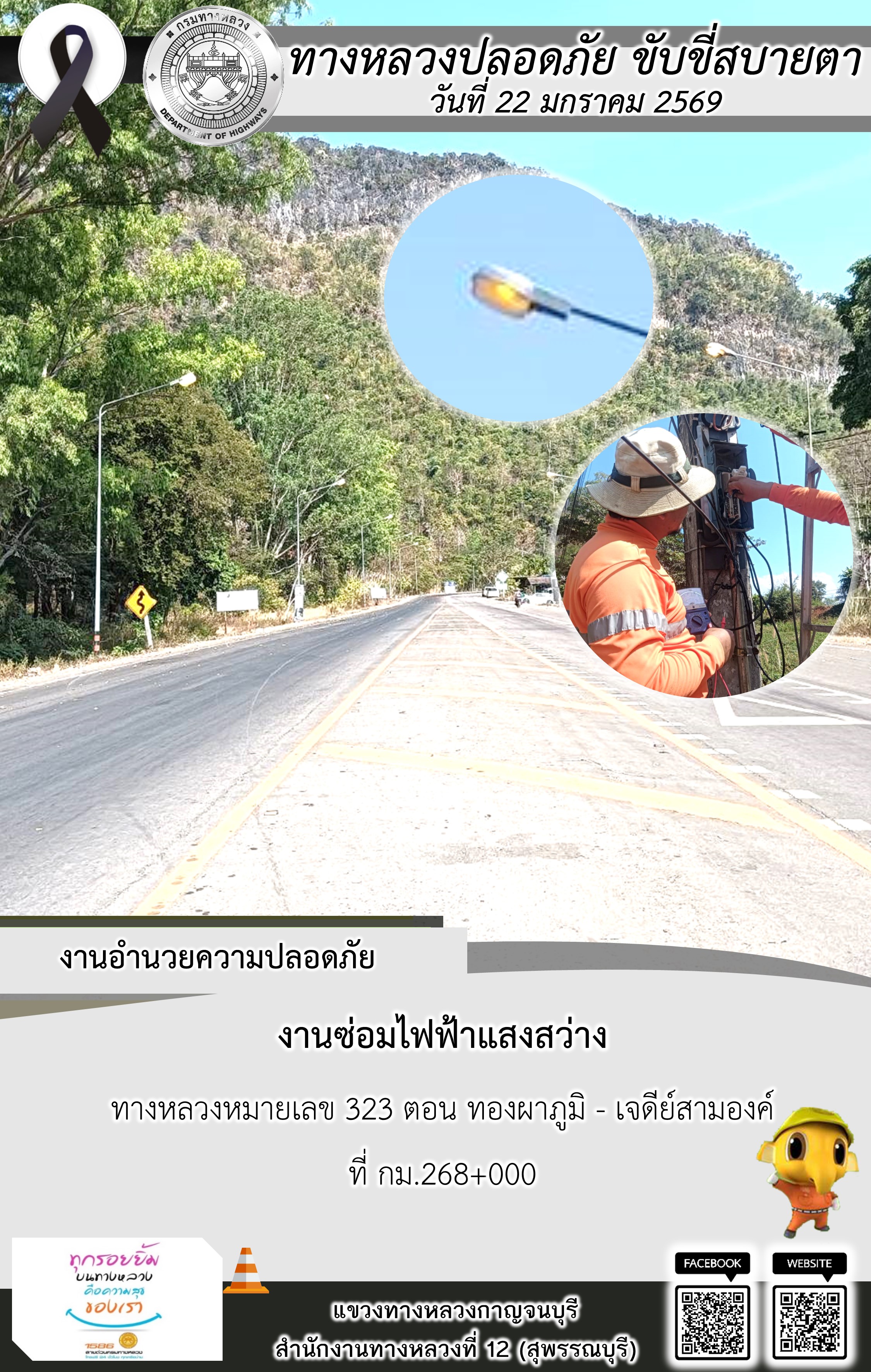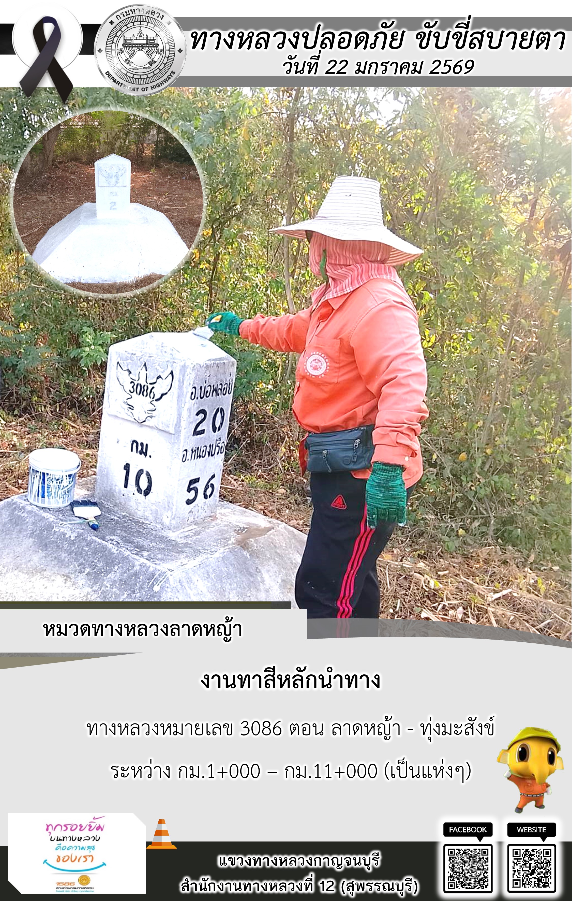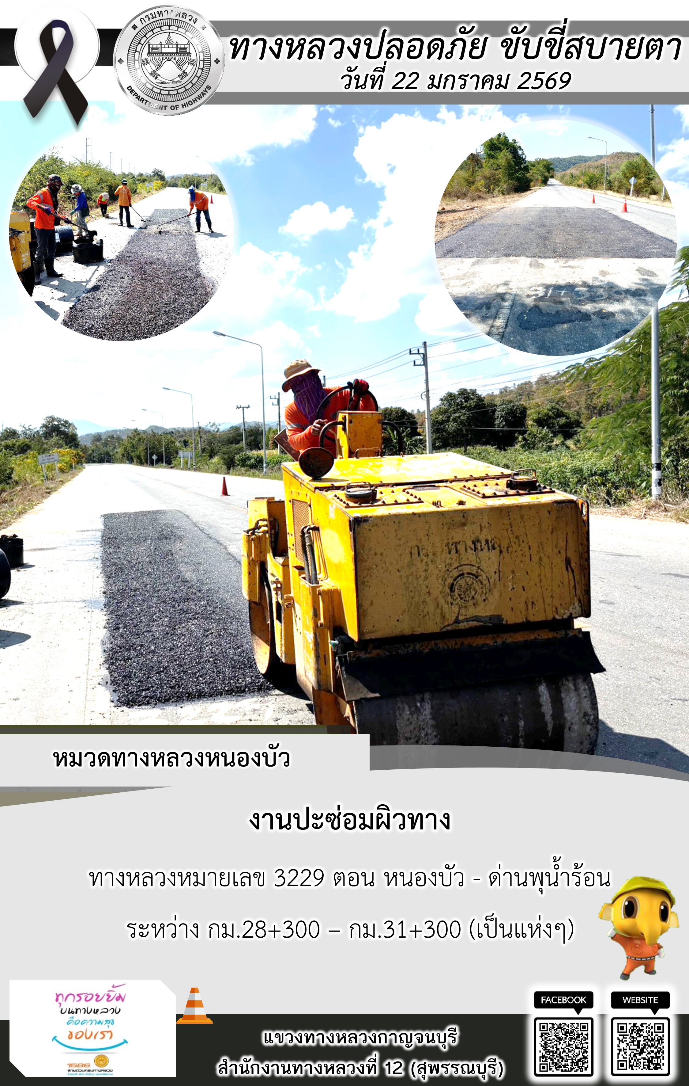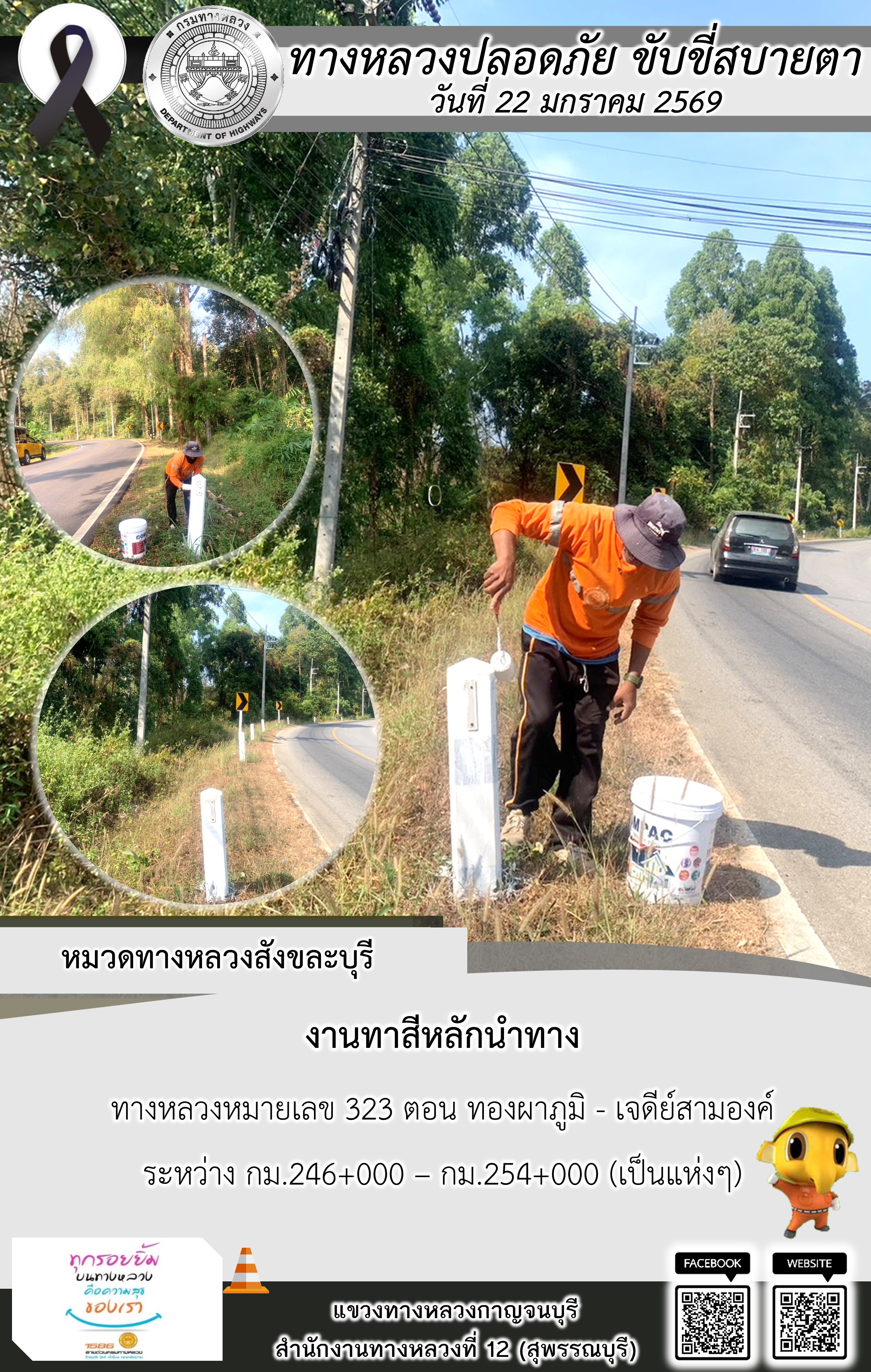 แขวงทางหลวงกาญจนบุรี โดยหมวดทางหลวงในสังกัด และงานอำนวยความปลอดภัยปฏิบัติงาน ประจำวันที่ 22 ม.ค. 69
