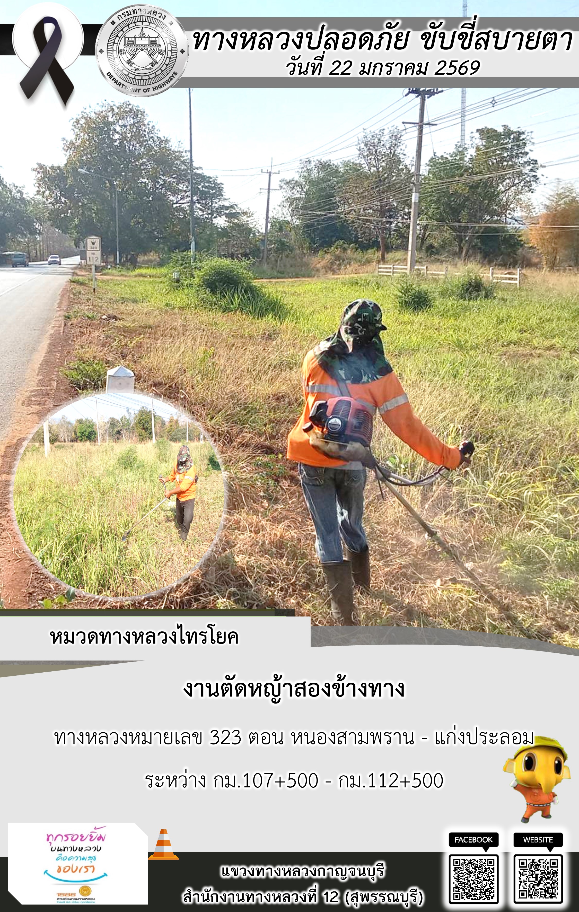 ข้อมูลภาพกิจกรรม : แขวงทางหลวงกาญจนบุรี โดยหมวดทางหลวงในสังกัด และงานอำนวยความปลอดภัยปฏิบัติงาน ประจำวันที่ 22 ม.ค. 69