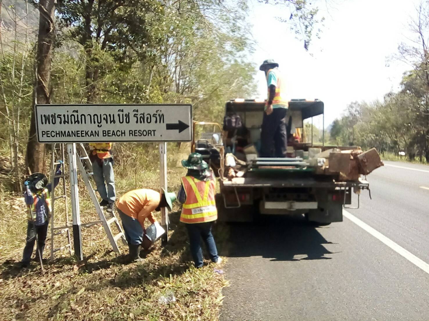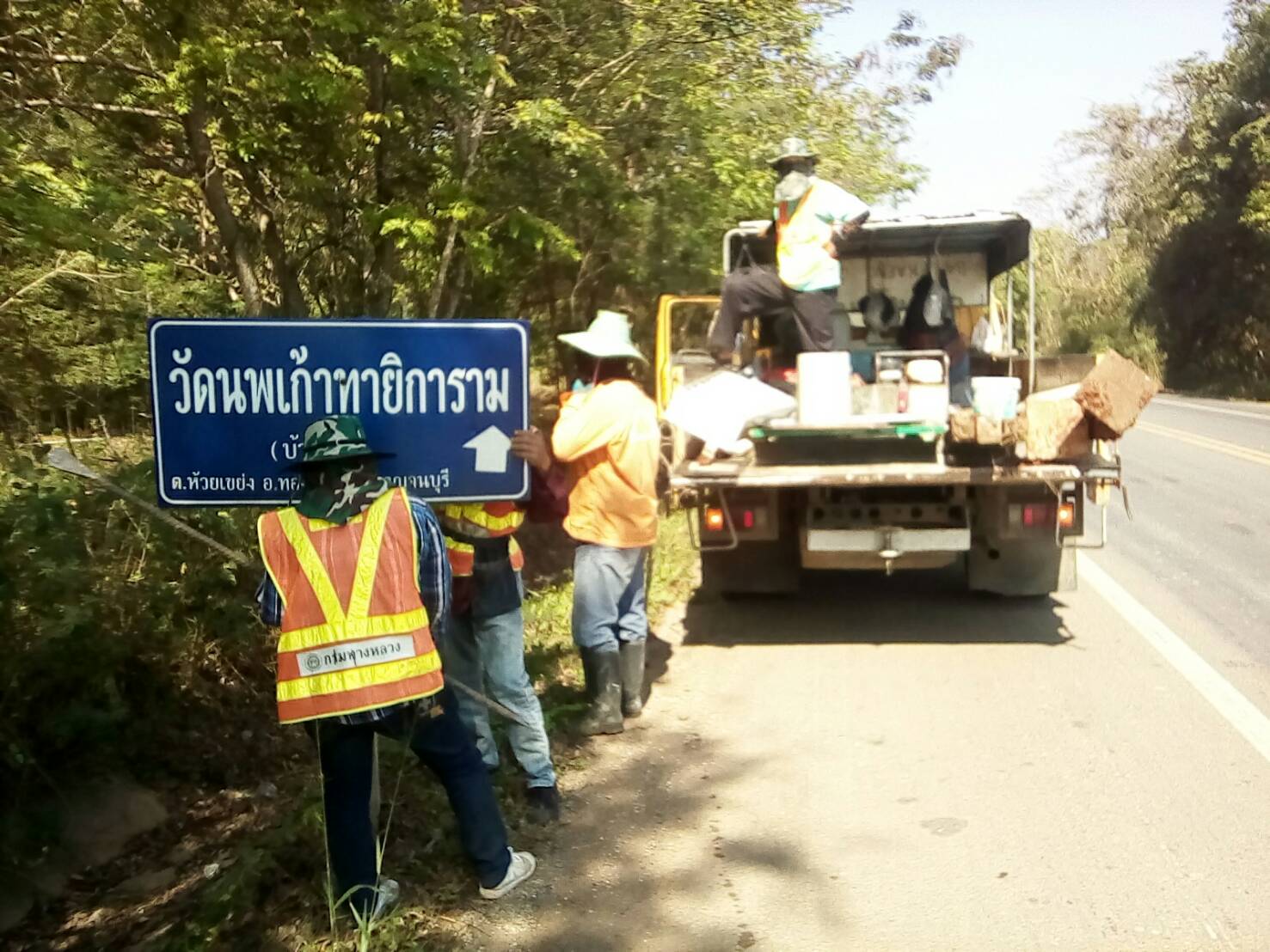 แขวงทางหลวงกาญจนบุรีโดยงานอำนวยความปลอดภัย ดำเนินการในทางหลวงหมายเลข 323