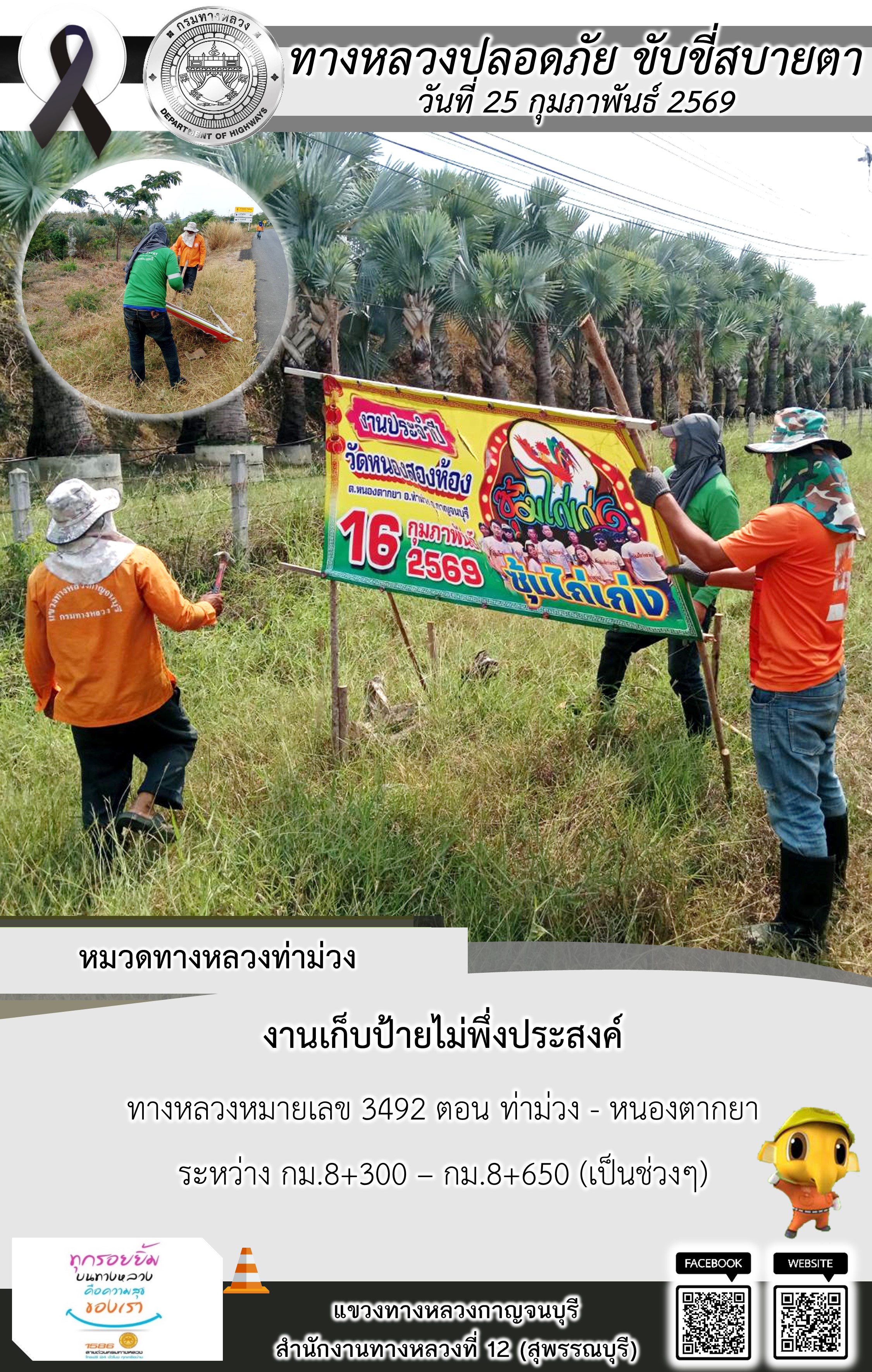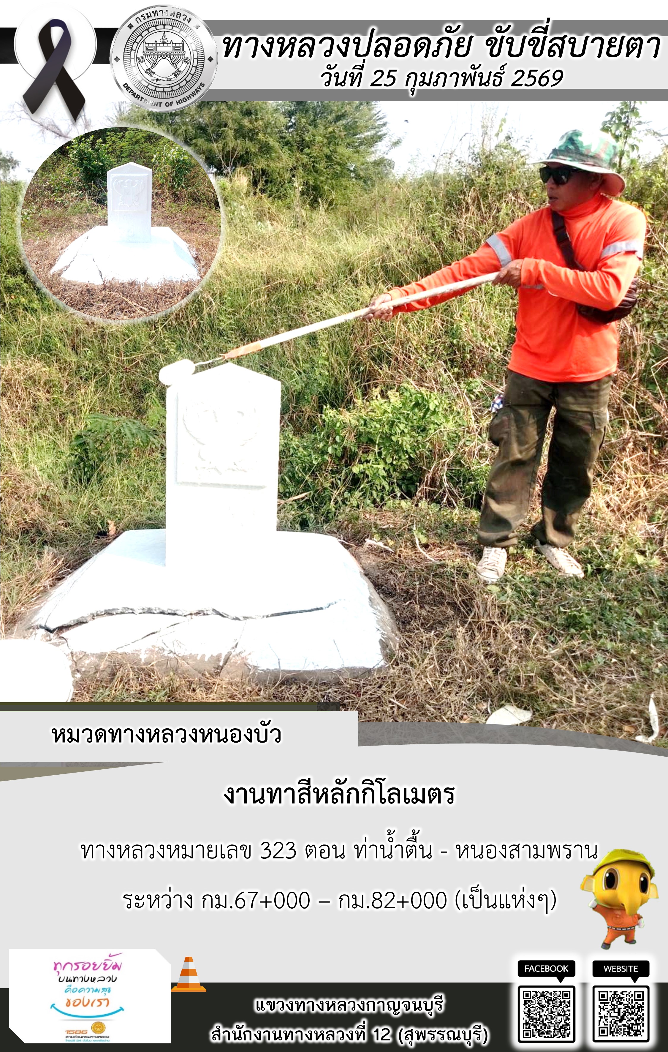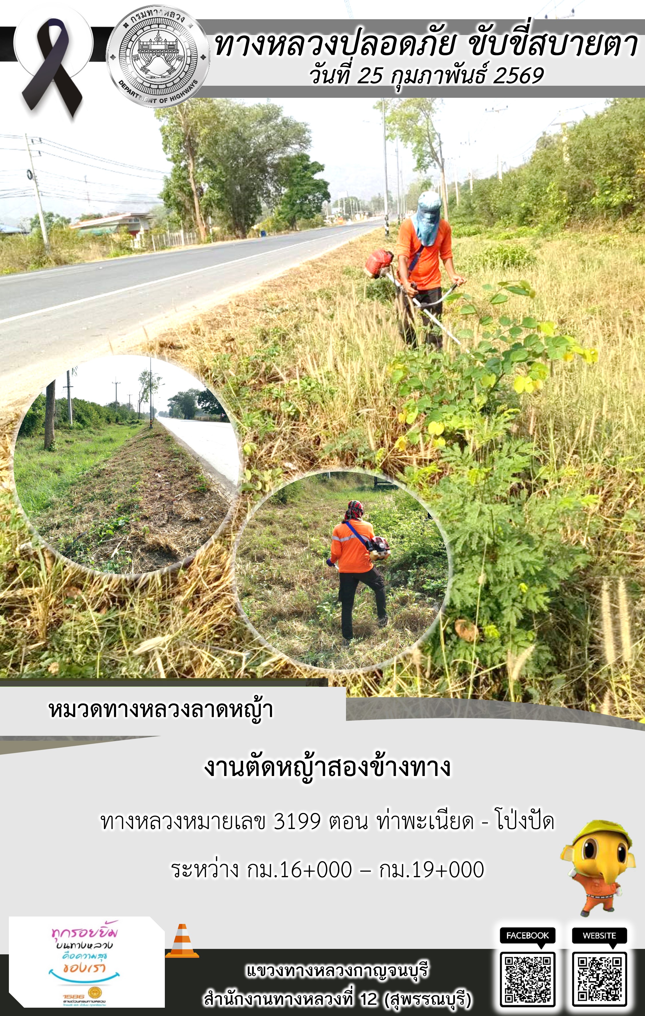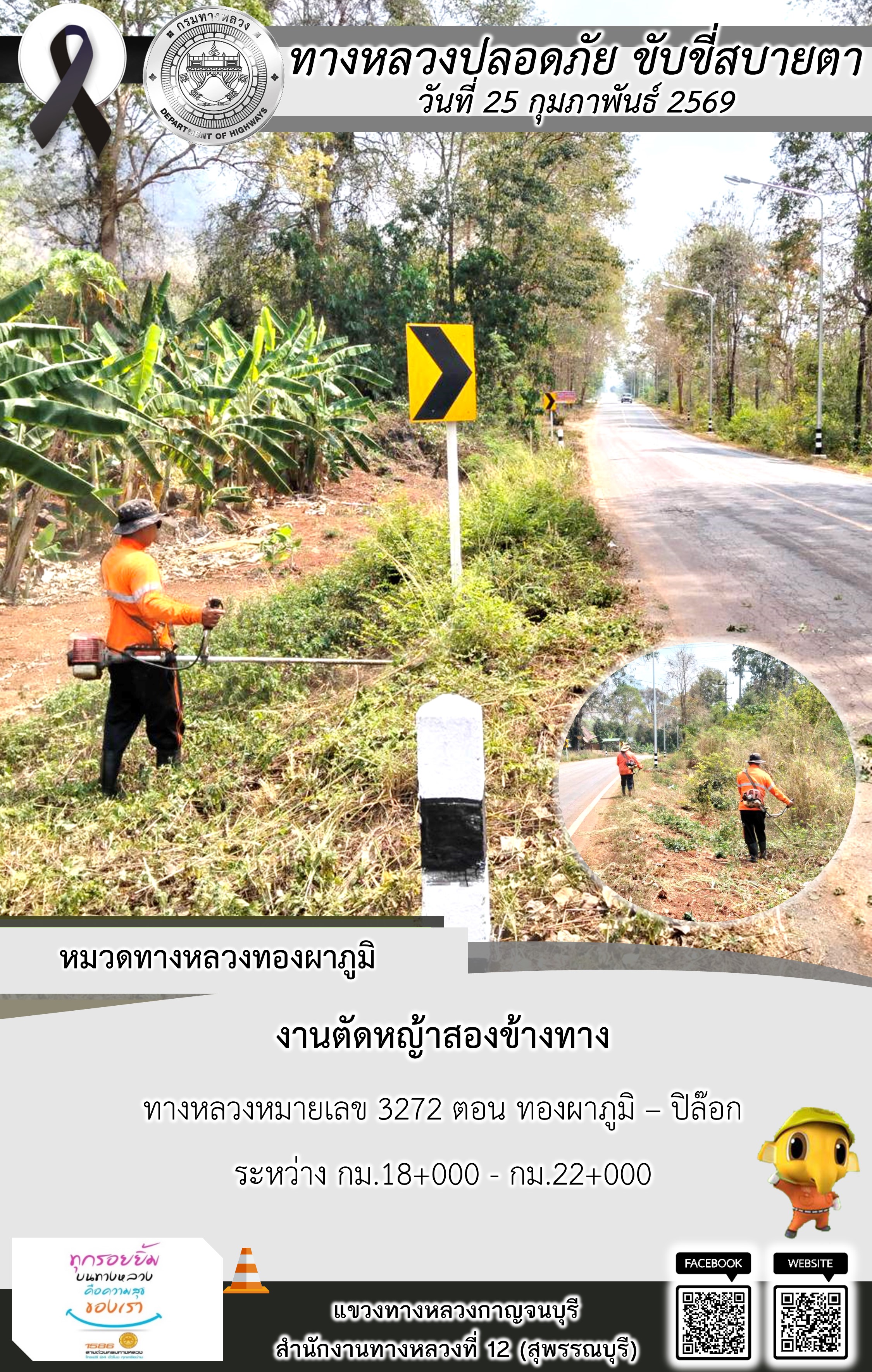 แขวงทางหลวงกาญจนบุรี โดยหมวดทางหลวงในสังกัด และงานอำนวยความปลอดภัยปฏิบัติงาน ประจำวันที่ 25 ก.พ. 69
