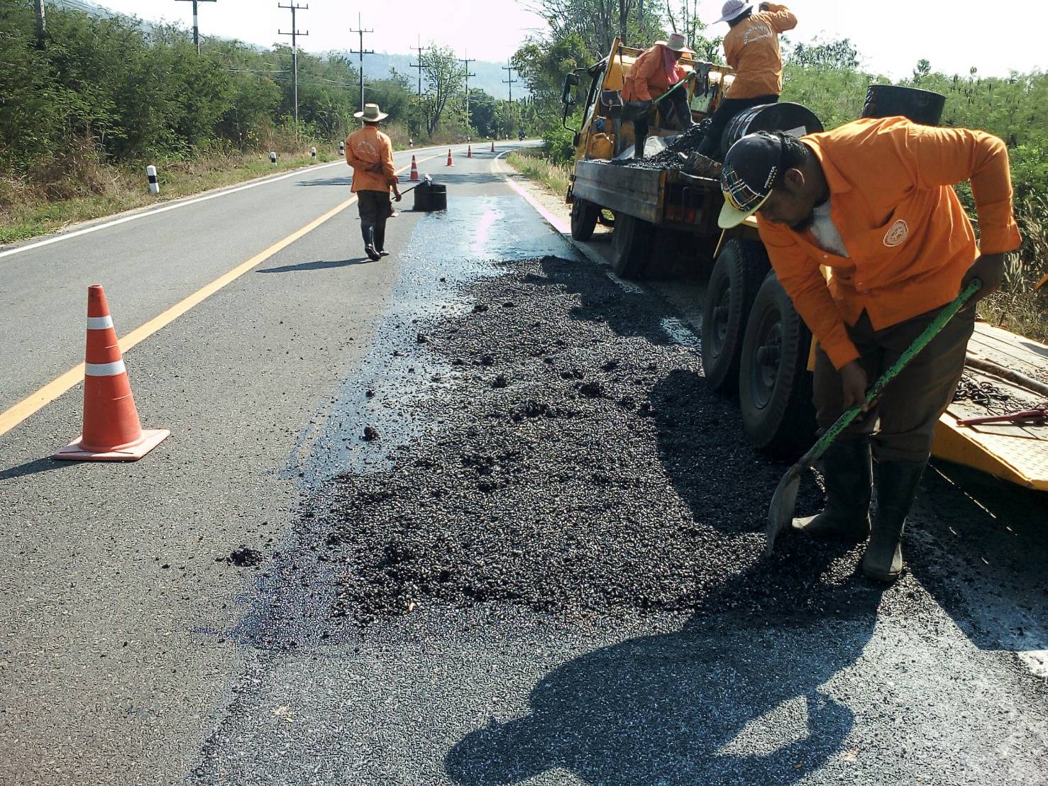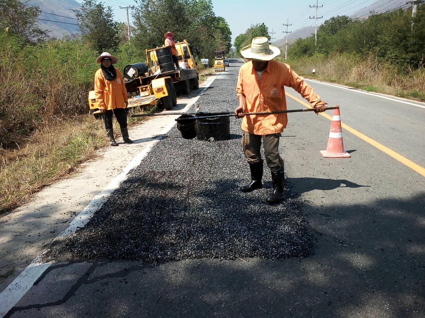 แขวงทางหลวงกาญจนบุรีโดยหมวดทางหลวงไทรโยค ดำเนินการในทางหลวงหมายเลข 323,3457