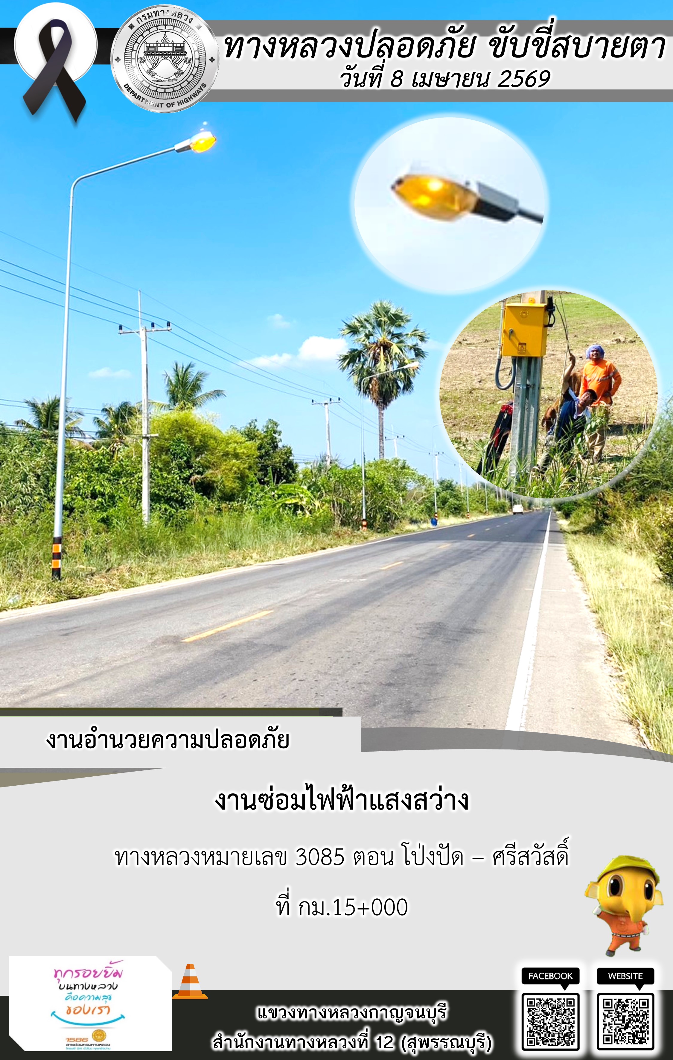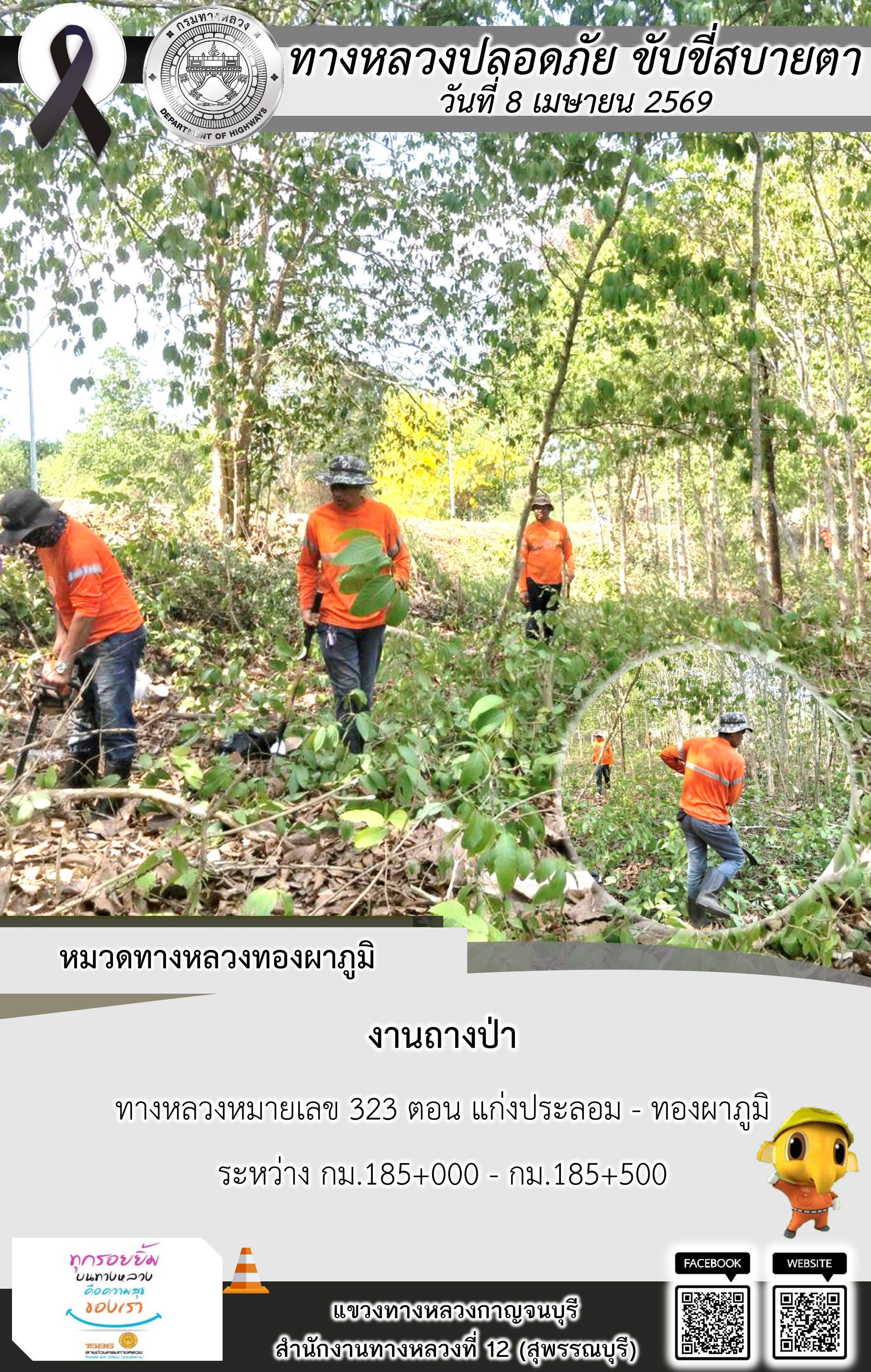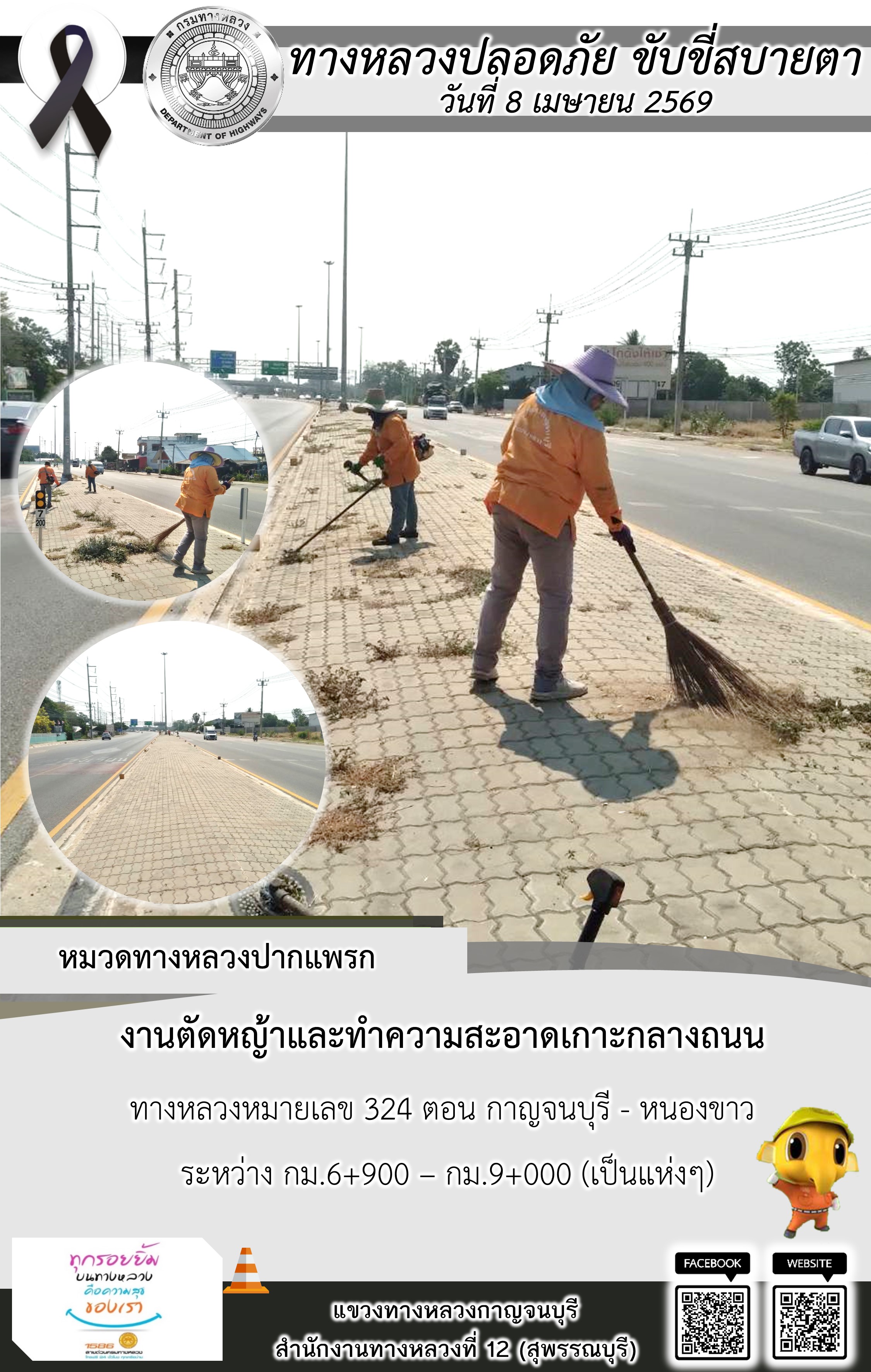 แขวงทางหลวงกาญจนบุรี โดยหมวดทางหลวงในสังกัด และงานอำนวยความปลอดภัยปฏิบัติงาน ประจำวันที่ 8 เม.ย. 69