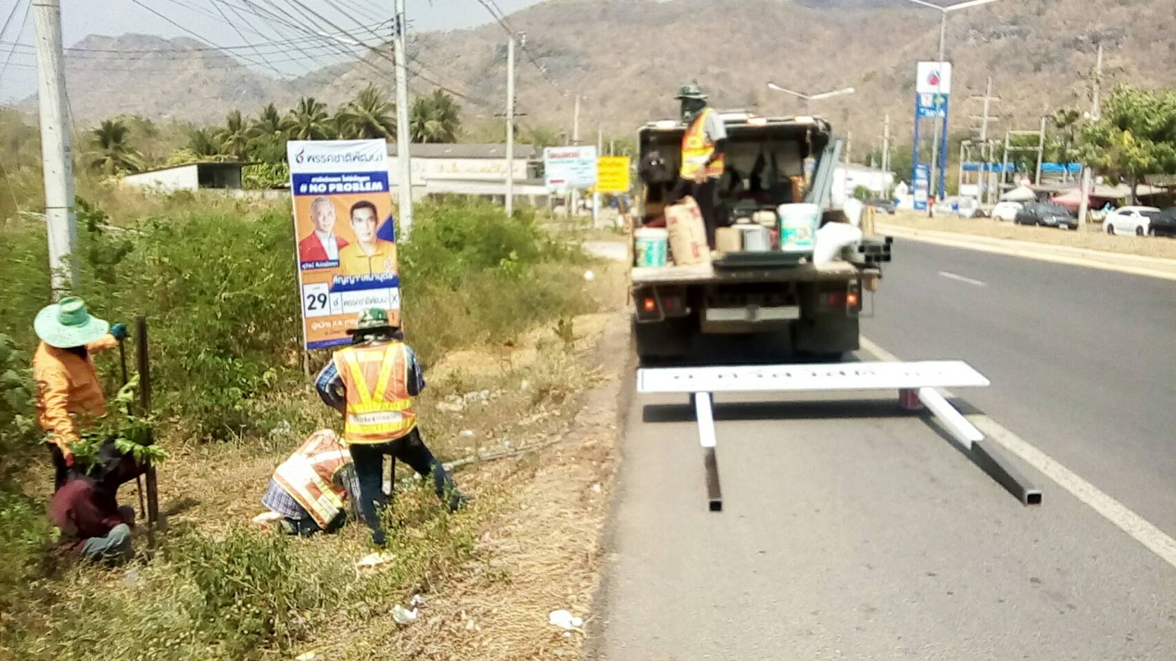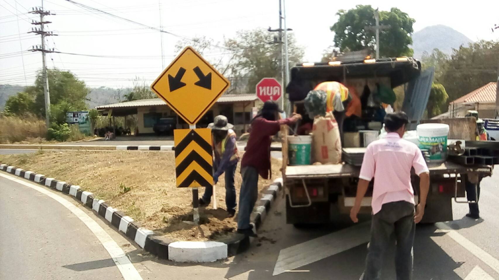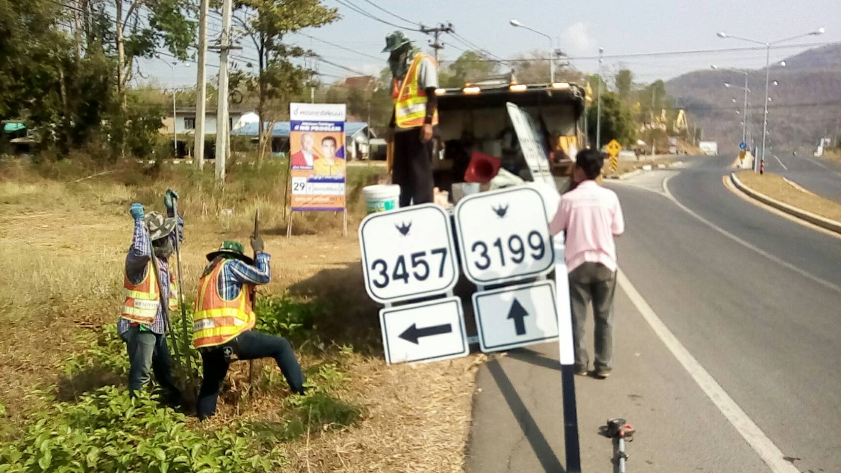 แขวงทางหลวงกาญจนบุรีโดยงานอำนวยความปลอดภัย ดำเนินการในทางหลวงหมายเลข 3199