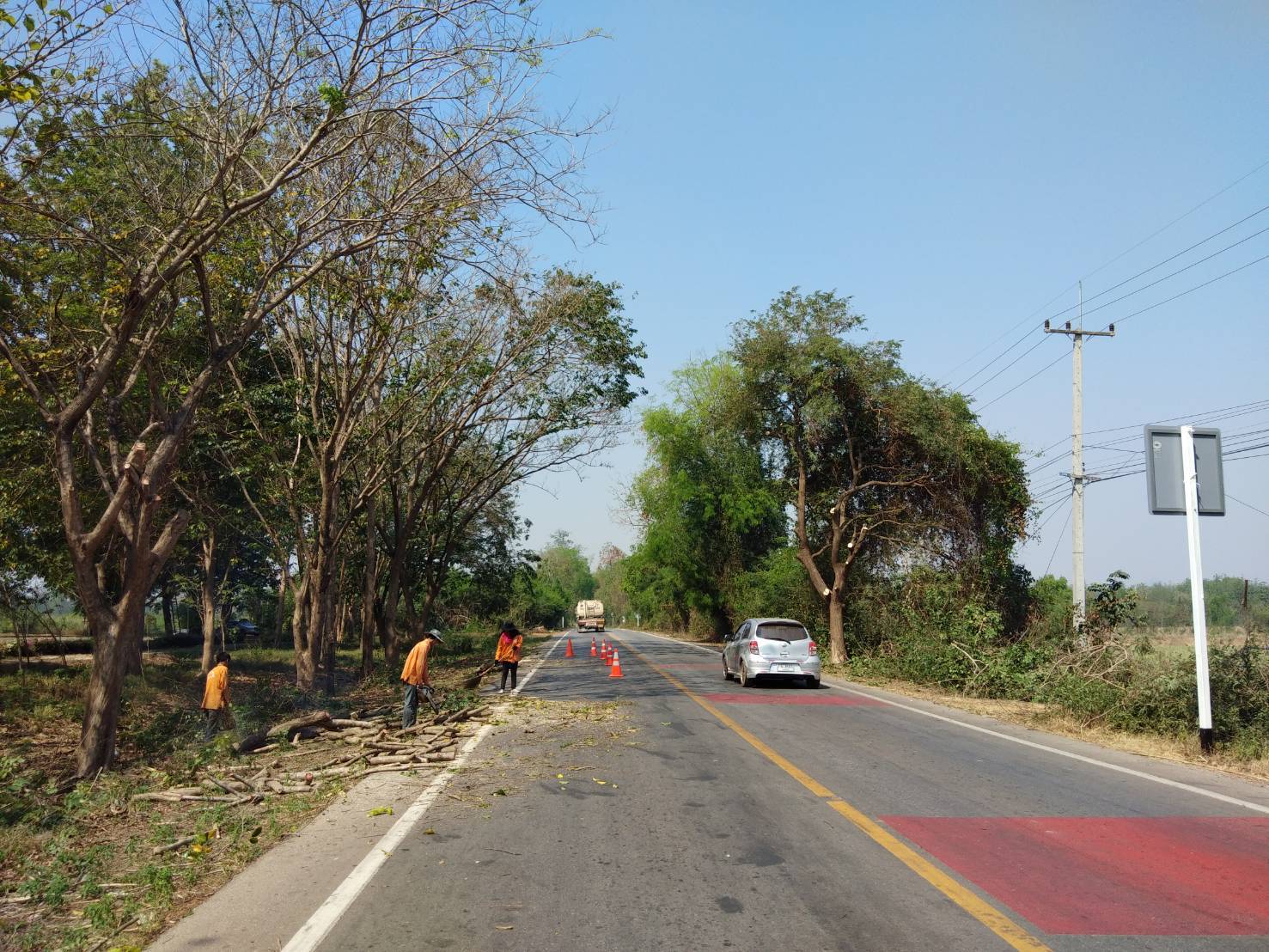 1.ดำเนินการตัดแต่งกิ่งไม้และยืนต้นตาย ทล.3085