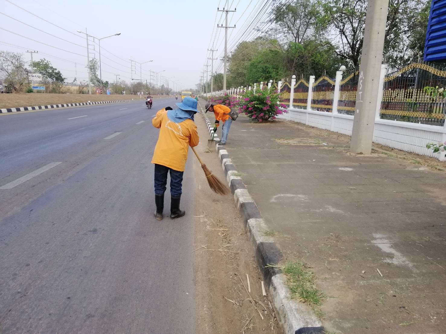 1.ดำเนินการทำความสะอาดทางเท้าและขอบทางเท้า ทล.323 กม.72+500 - 74+000(บริเวณหน้าราชภัฏ)
