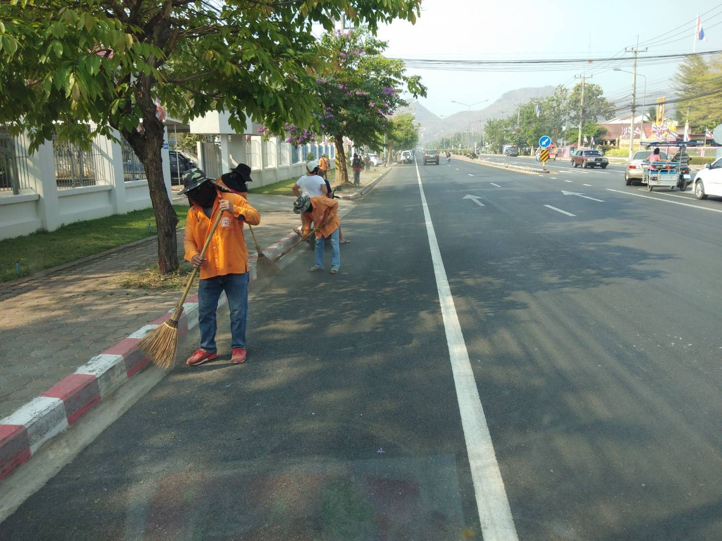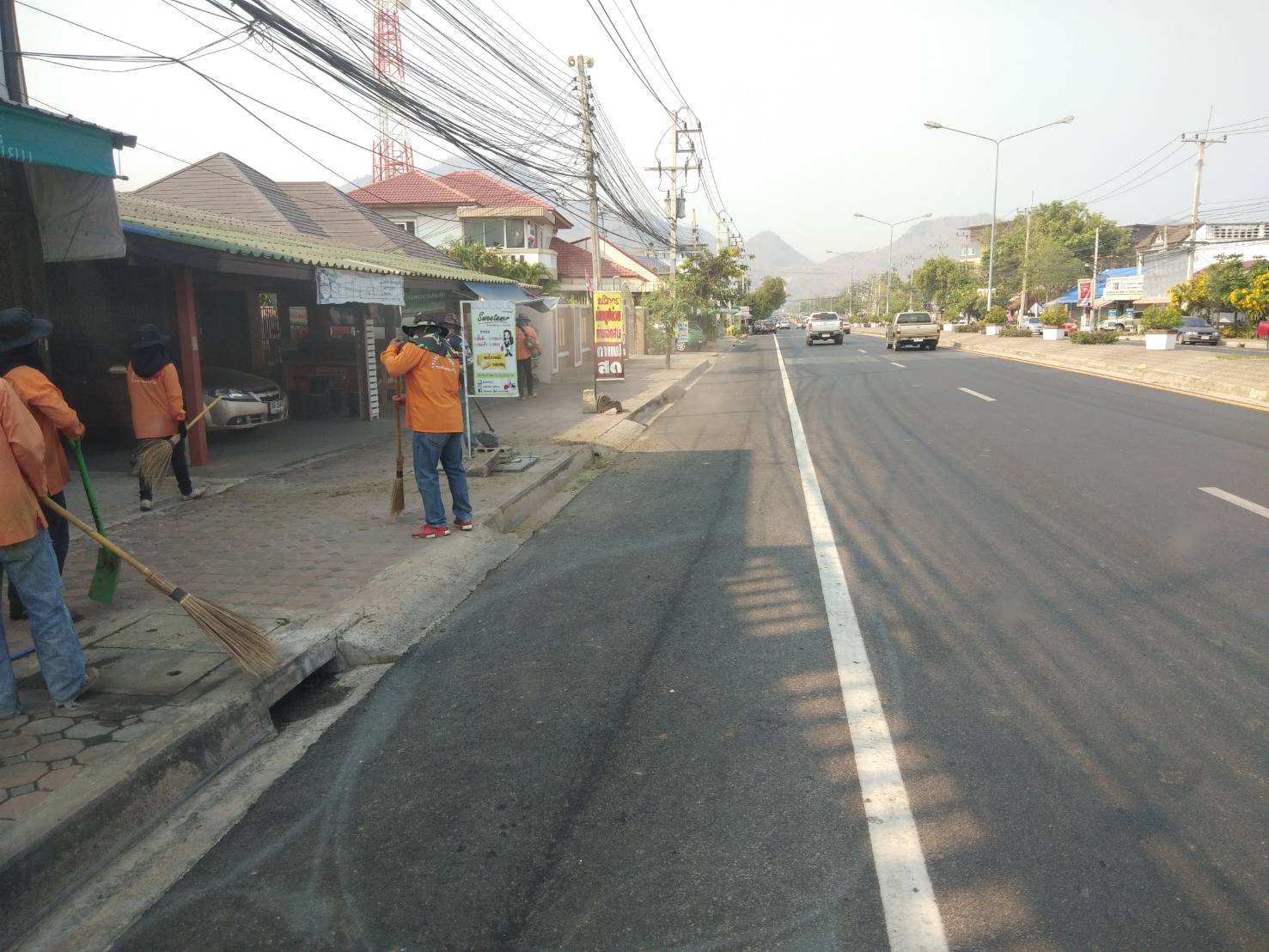 1.ดำเนินการทำความสะอาดทางเท้า ทล.3209 (บริเวณหน้าศูนย์ราชการ)